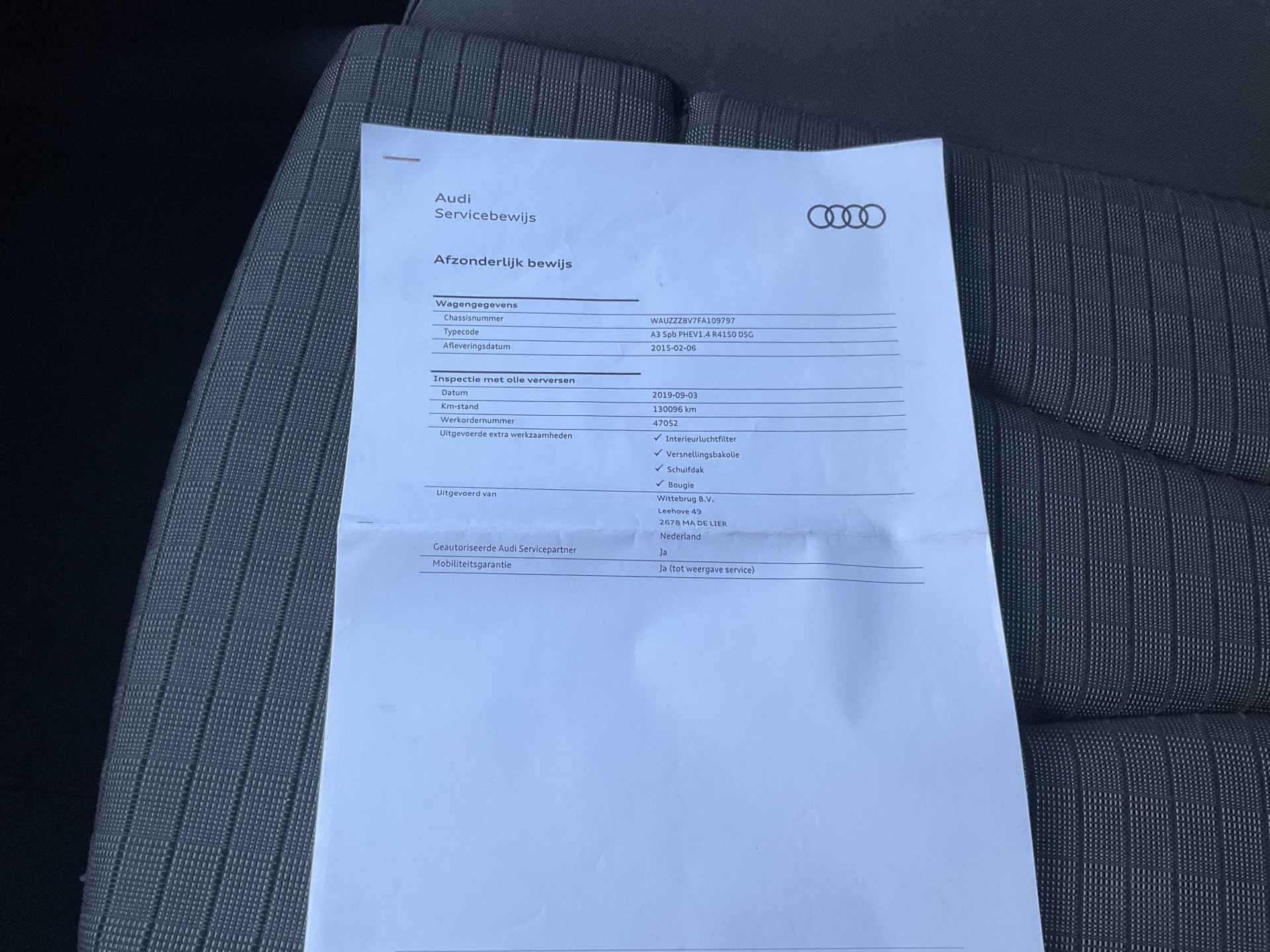 Tevens wordt deze auto geleverd met het tellerrapport van Nationale Autopas. Als u wilt, kunt u een proefrit maken met deze Audi A3 Sportback. Bel of mail ons nu voor een afspraak.