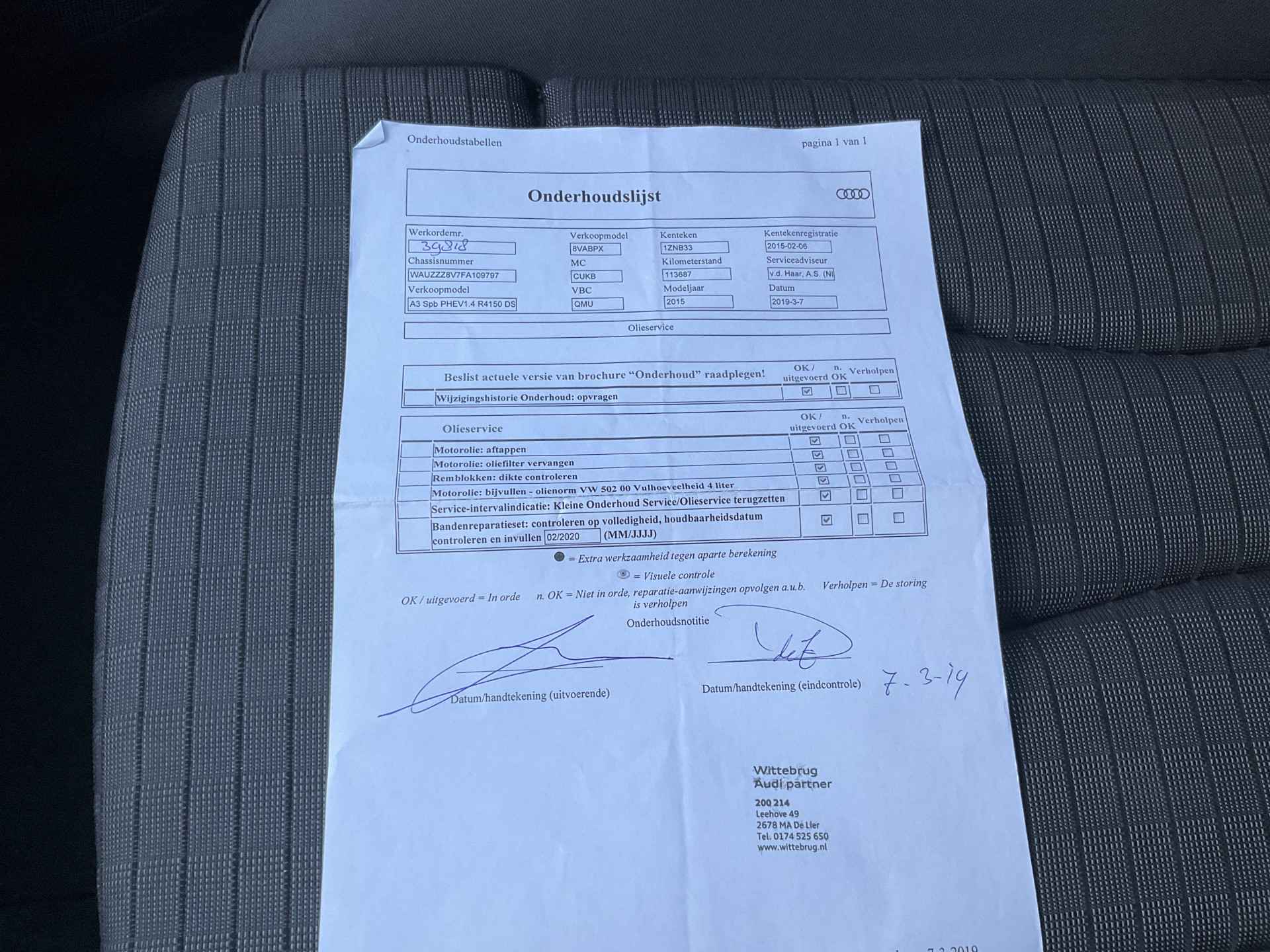 Volledig onderhouden t/m 287.416km.