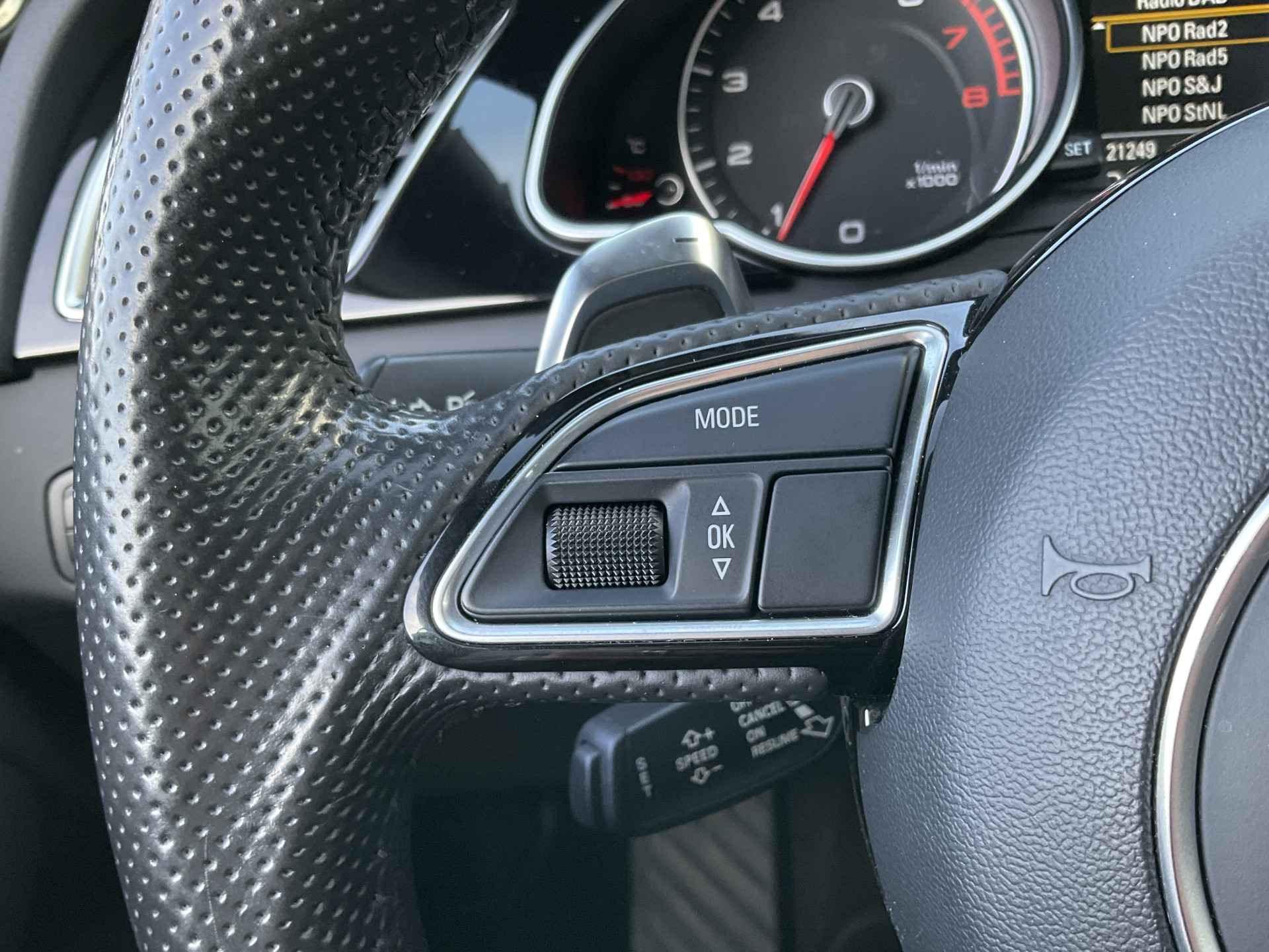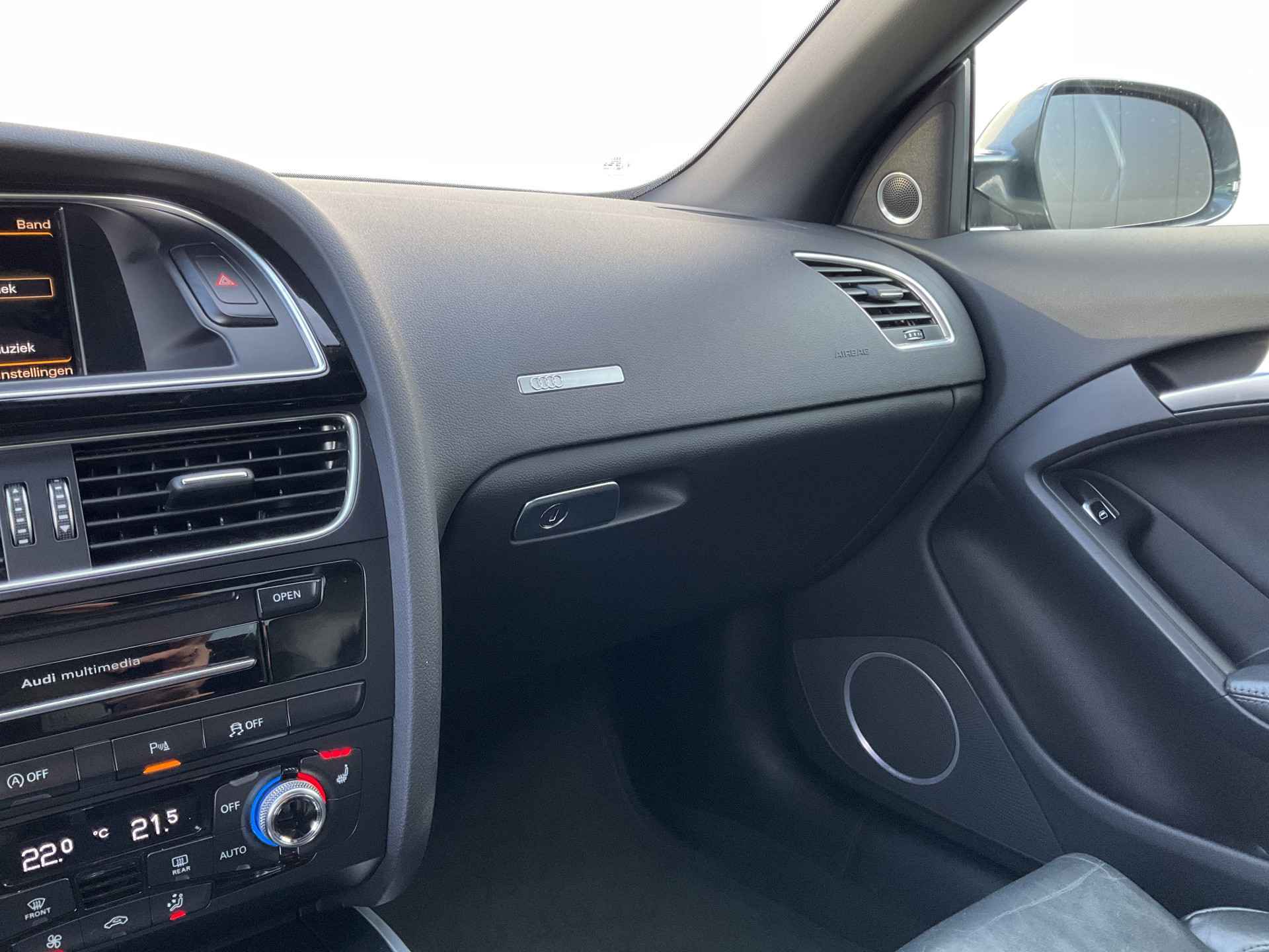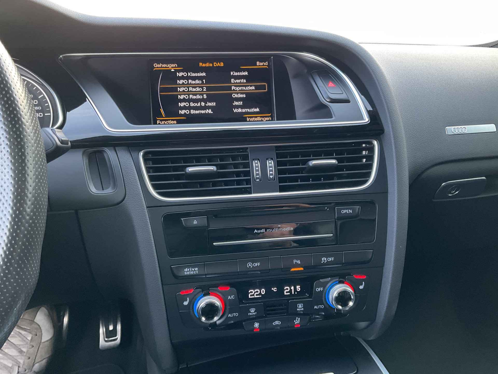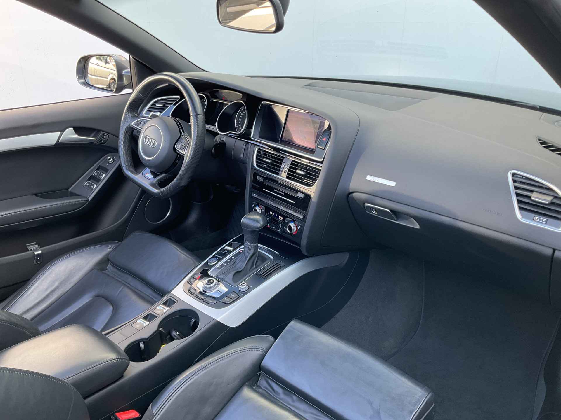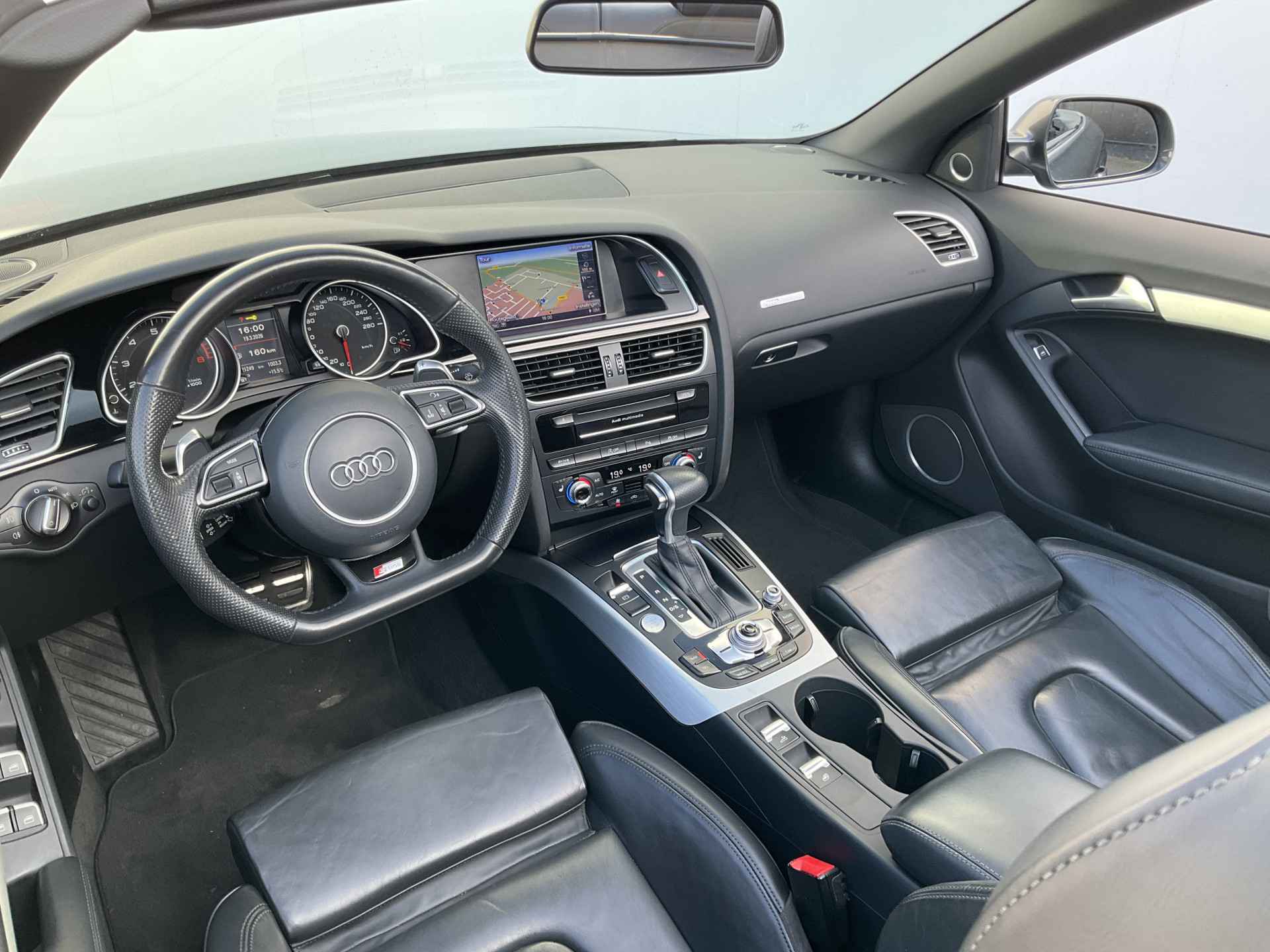 Wat wilt u onderweg horen? Er is volop keus, dankzij bluetooth. Het navigatiesysteem is met het audio-installatiesysteem gecombineerd. Automatische airconditioning regelt volautomatisch de temperatuur. U kiest de gewenste temperatuur en het systeem doet de rest. U kunt bij het inparkeren natuurlijk niet aan alle kanten ogen hebben. Daarom is deze Audi A5 Cabriolet voorzien van parkeersensoren! Om de veiligheid onderweg te verhogen, heeft deze Audi zowel een automatisch inschakelbare verlichting als een regensensor aan boord, zodat hij zelf de verlichting en de ruitenwissers kan inschakelen. Met de cruise control komt u bijna nog fitter aan dan u vertrekt. Extra opties op deze auto zijn: lederen stuur, centrale deurvergrendeling met afstandsbediening en boordcomputer.
