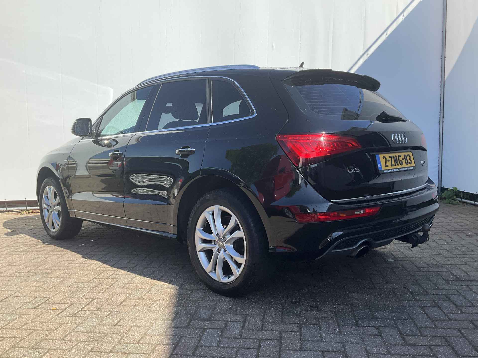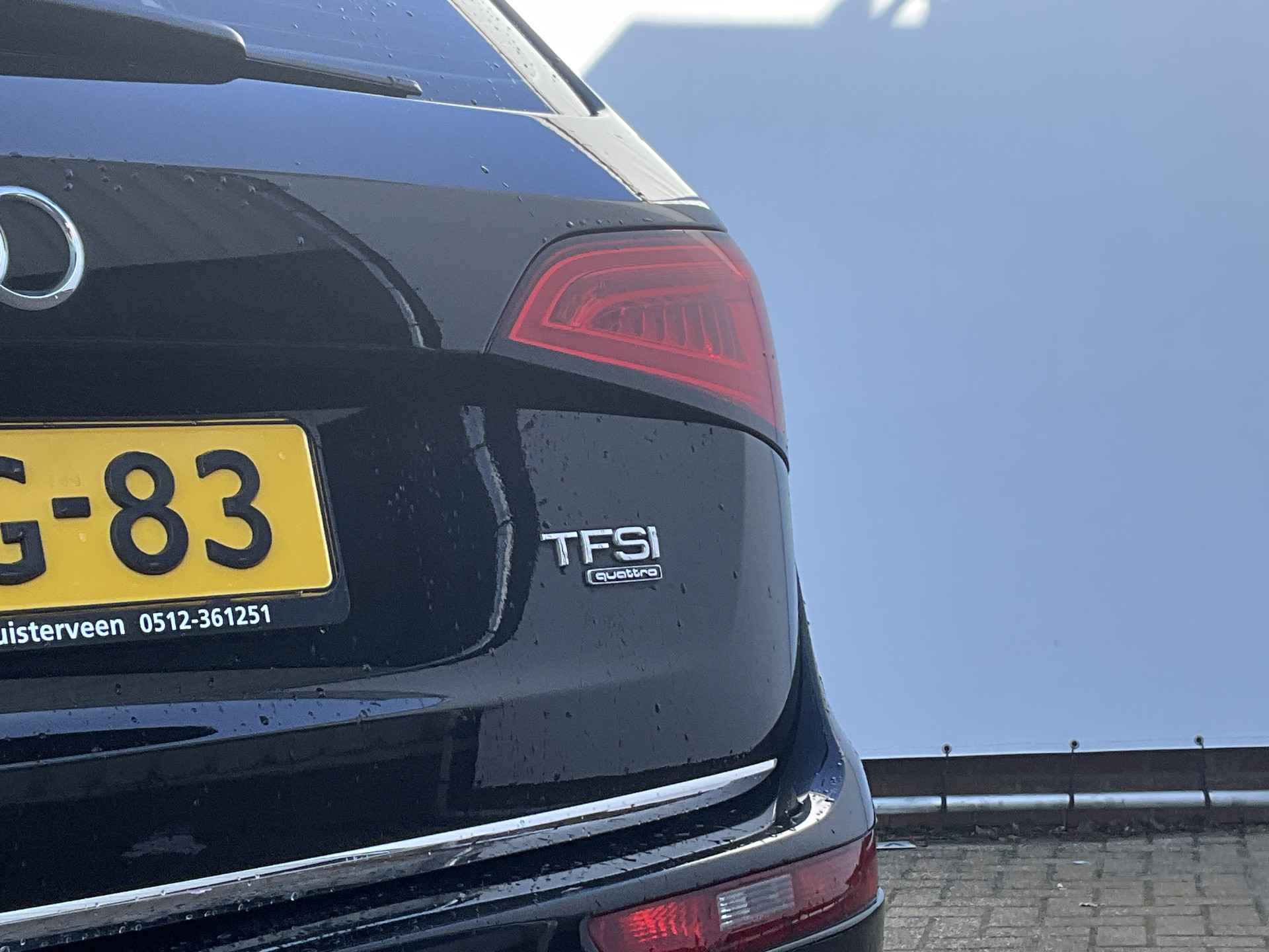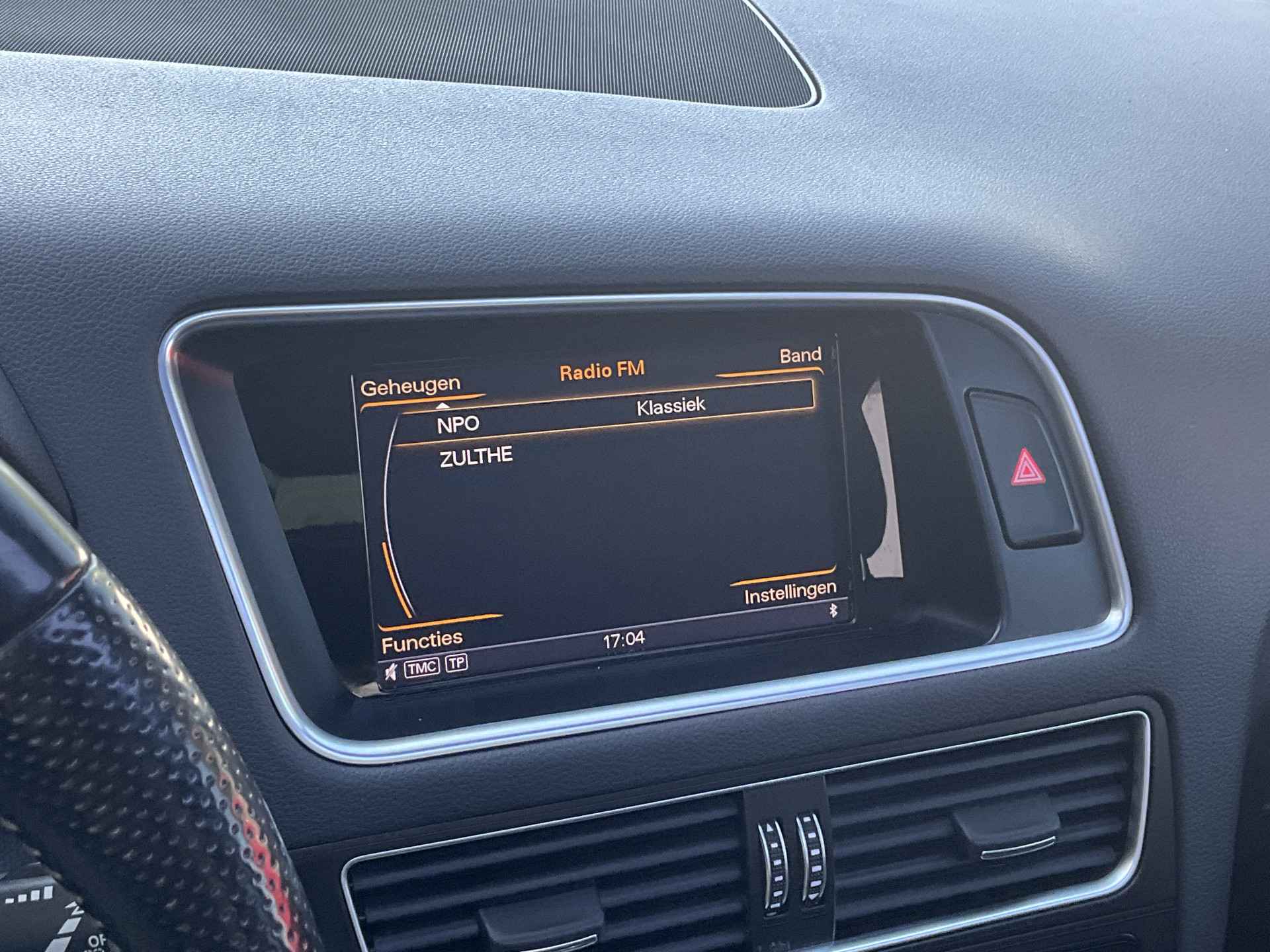 Ontspannen en zorgeloos autorijden, dat doet u met deze Audi Q5. Deze auto komt uit het bouwjaar 2015. Geniet van de sportieve uitstraling en de fraaie details die de S-Line styling deze auto geeft. Hij heeft een benzinemotor en een automatische transmissie. Een woon-werkritje wordt een minivakantie in deze auto met z'n elektrisch bediende glazen panorama dak en het heerlijk zachte lederen interieur. In deze sportstoelen voel je je één met je auto. Met de krachtige xenonverlichting heeft u optimaal zicht in het donker. Bij de uitrusting van deze auto horen onder meer 19 inch lichtmetalen velgen, sportonderstel, halflederen bekleding, warmtewerend glas, dakspoiler en in delen neerklapbare achterbank.