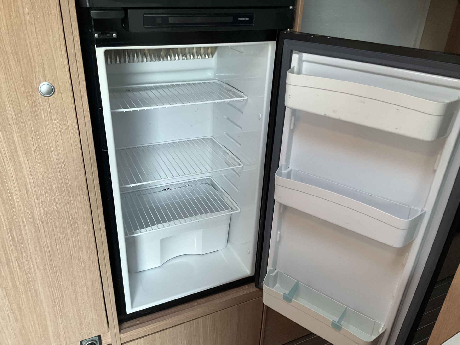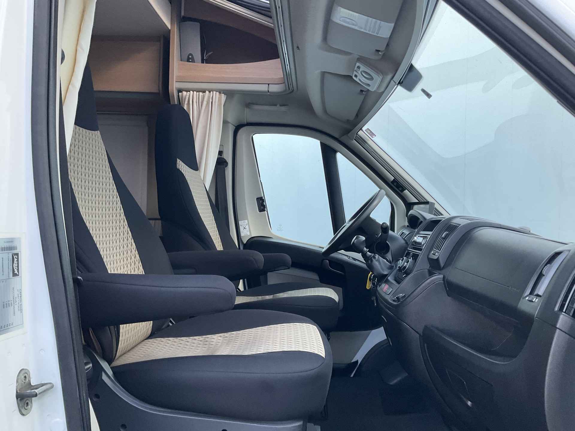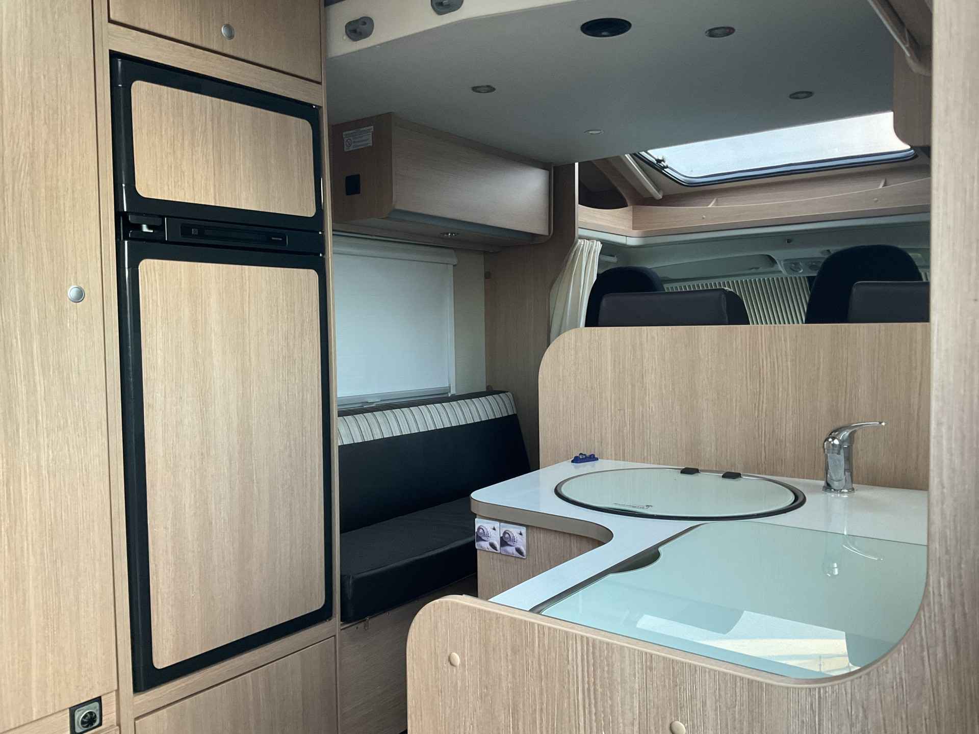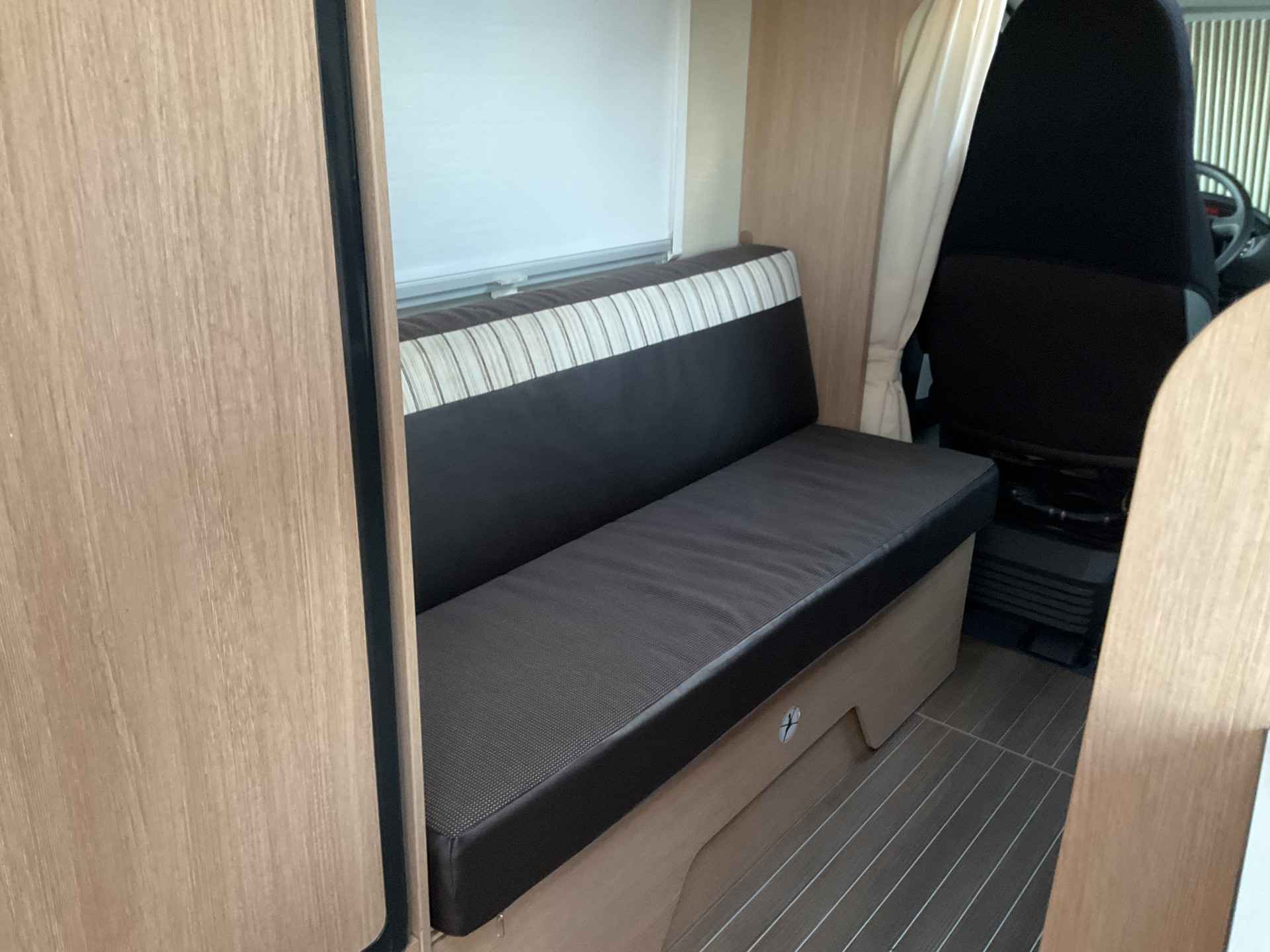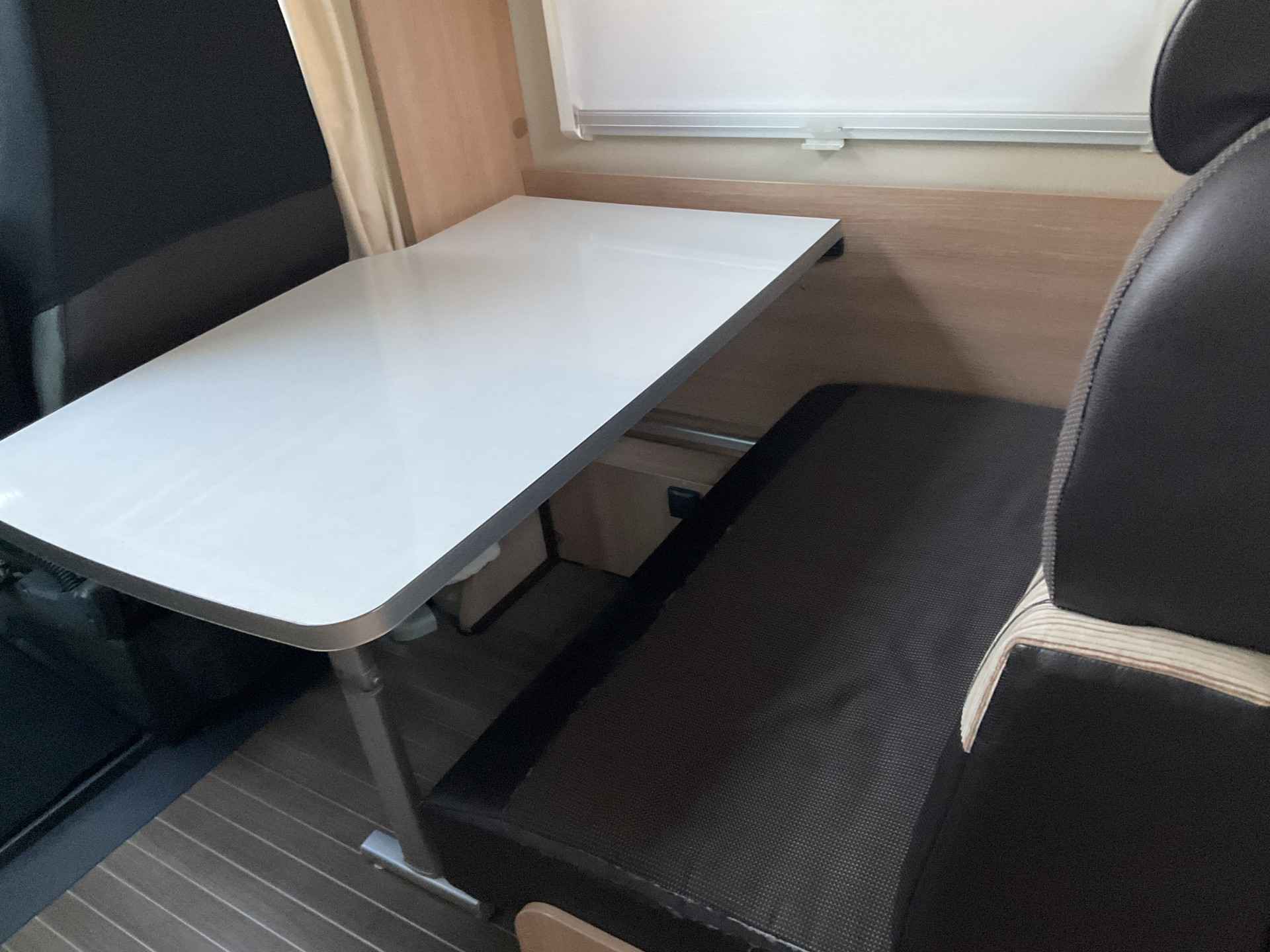 Bij binnenkomst door de schuifdeur treft u een leuke salon met daarbij de draaibare cabine zetels te gebruiken. De tafel is te plaatsen in gewenste positie.