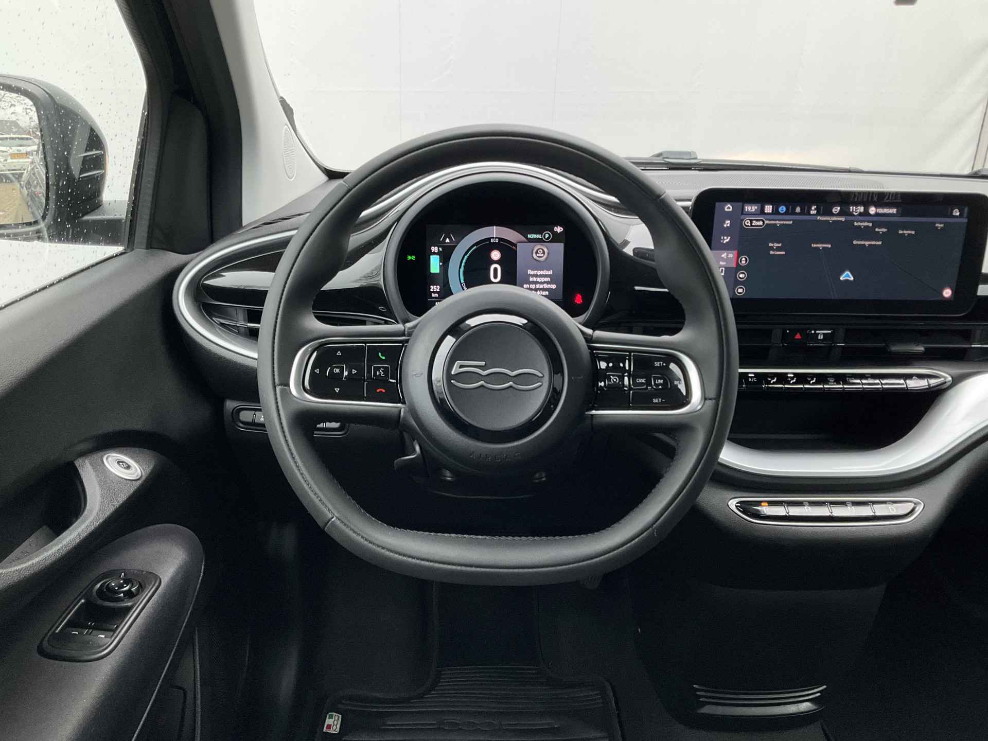 Het systeem controleert alle belangrijke functies en geeft die perfect weer via het digitale dashboard. Met Connected Services wordt iedere rit nóg veiliger. Met automatische airconditioning hoeft u alleen de gewenste temperatuur in te stellen. Het systeem doet de rest. De elektronische systemen in deze Fiat helpen u actief om comfortabeler te rijden. Een automatisch inschakelbare verlichting en een regensensor houden de omstandigheden onderweg in de gaten. Met ingeschakelde cruise control zit u ontspannen achter het stuur. De Fiat is standaard voorzien van: full map navigatiesysteem, DAB ontvangst, lederen stuur, centrale deurvergrendeling met afstandsbediening en boordcomputer.