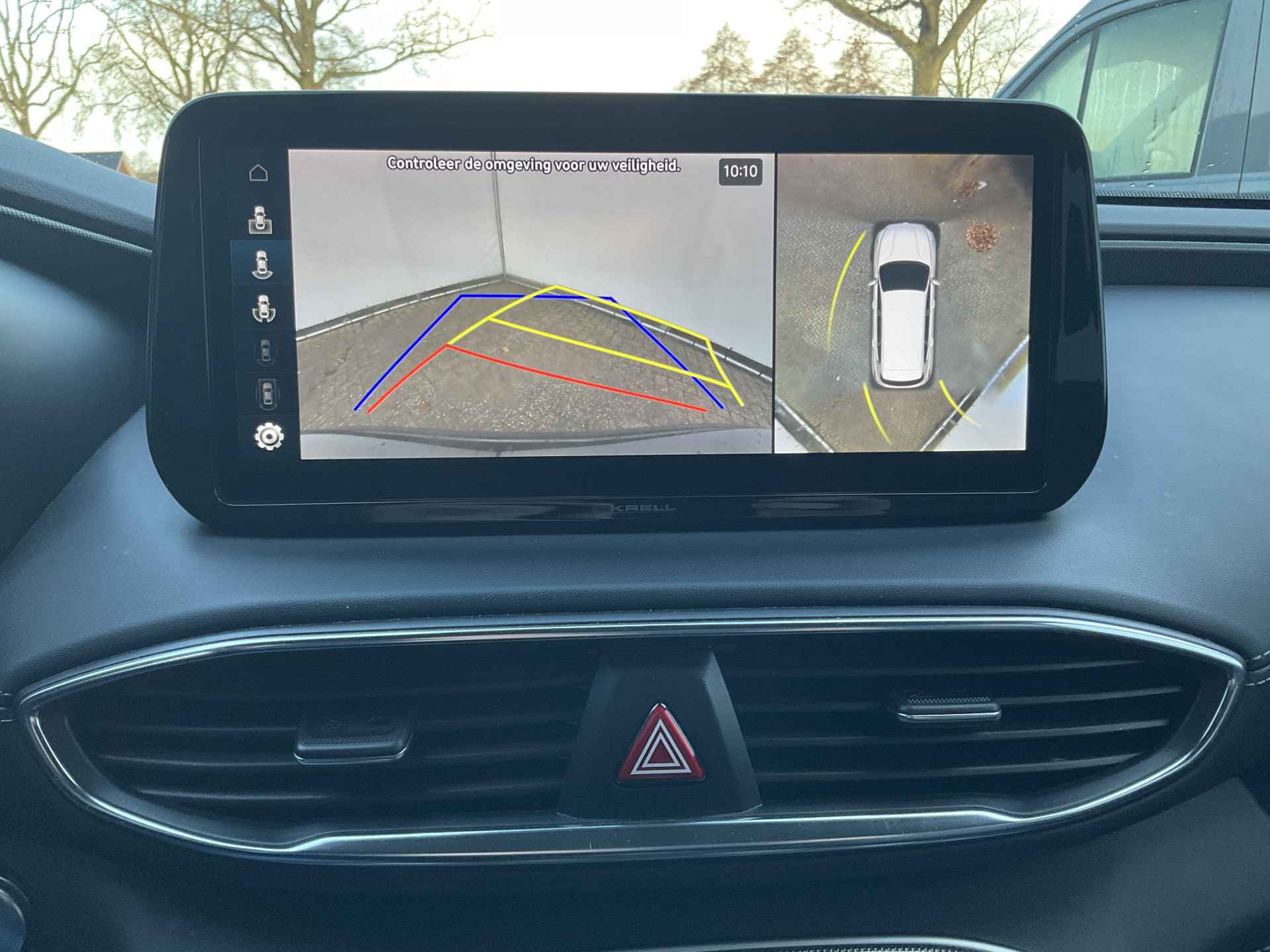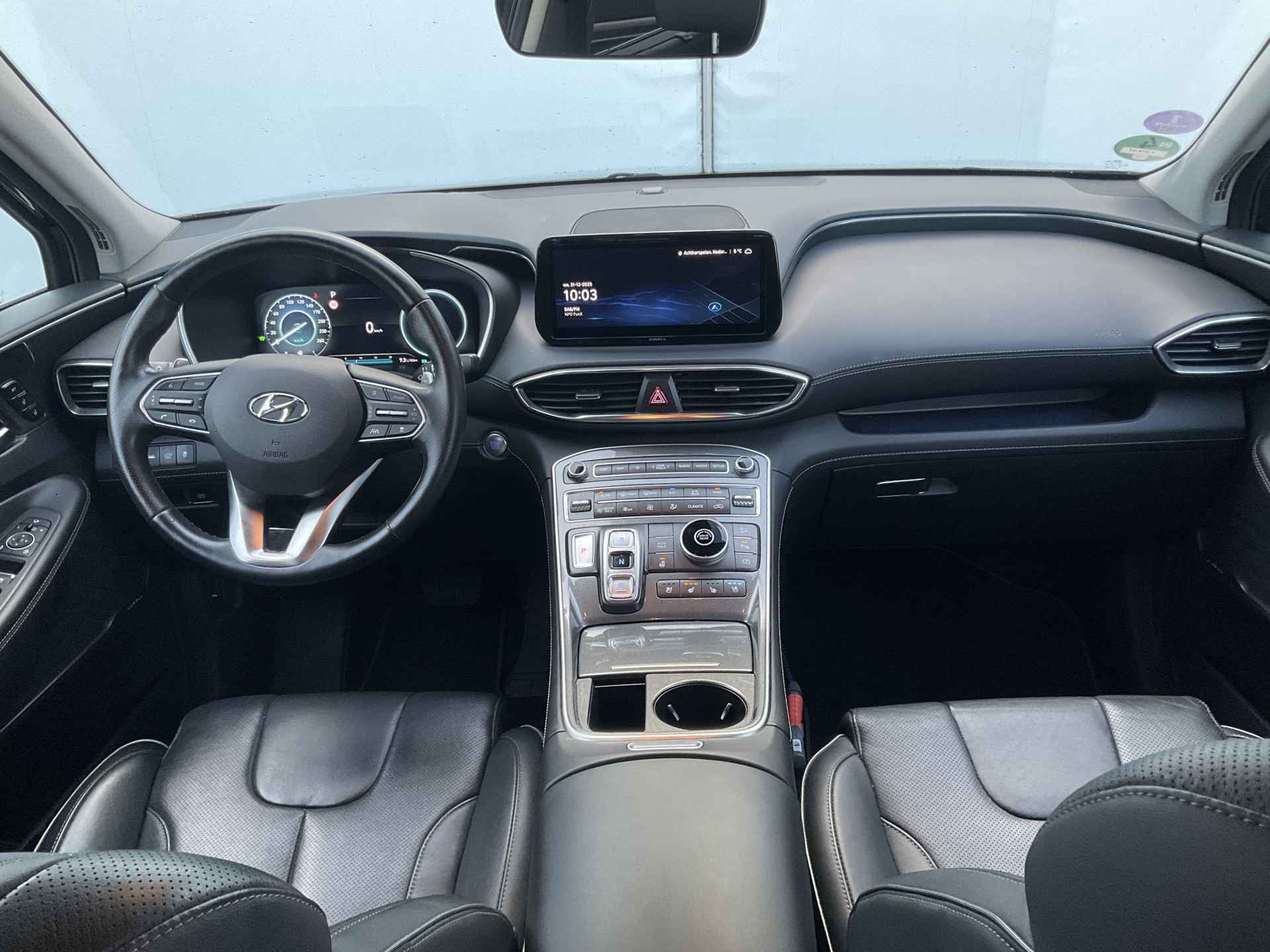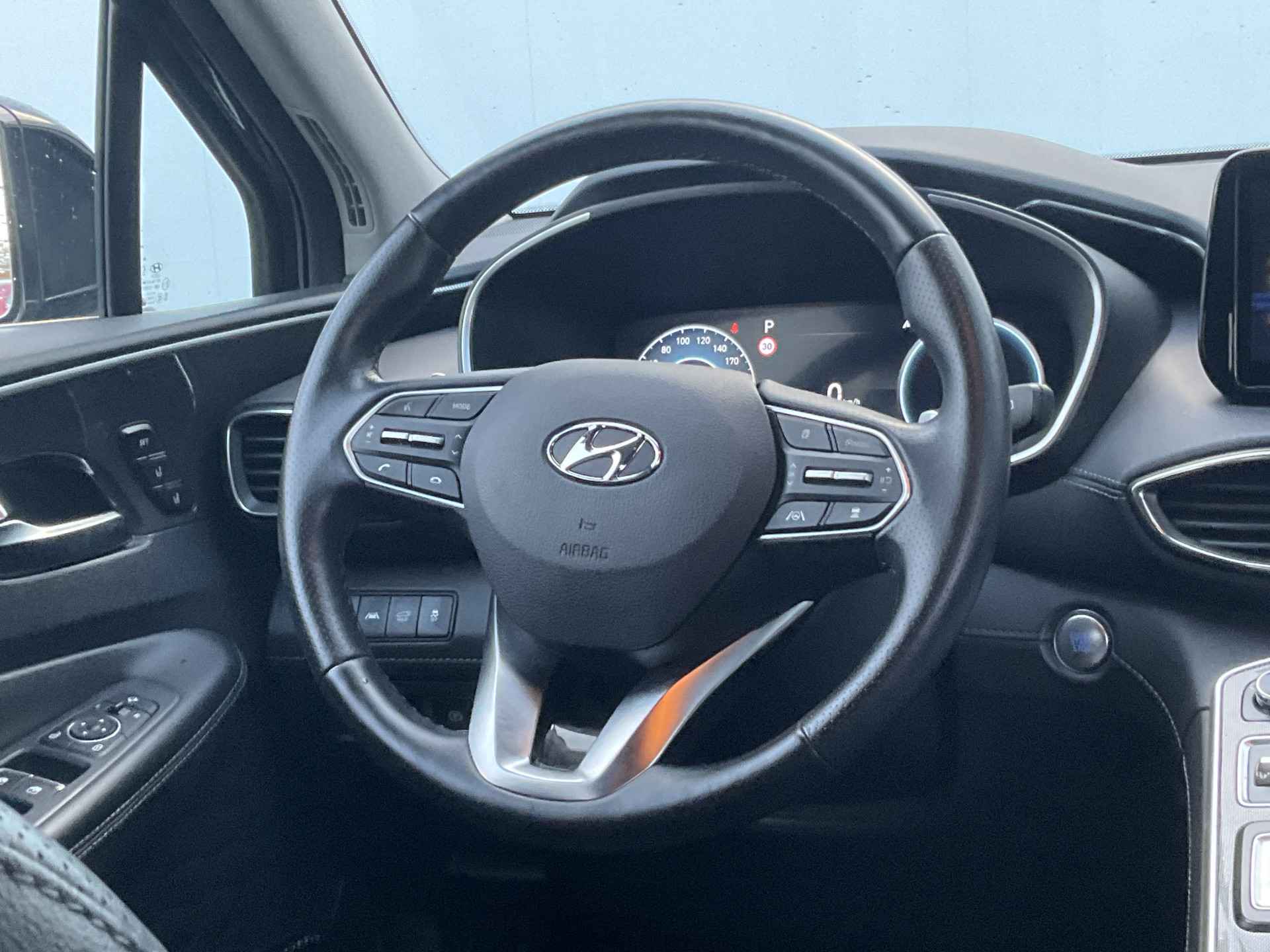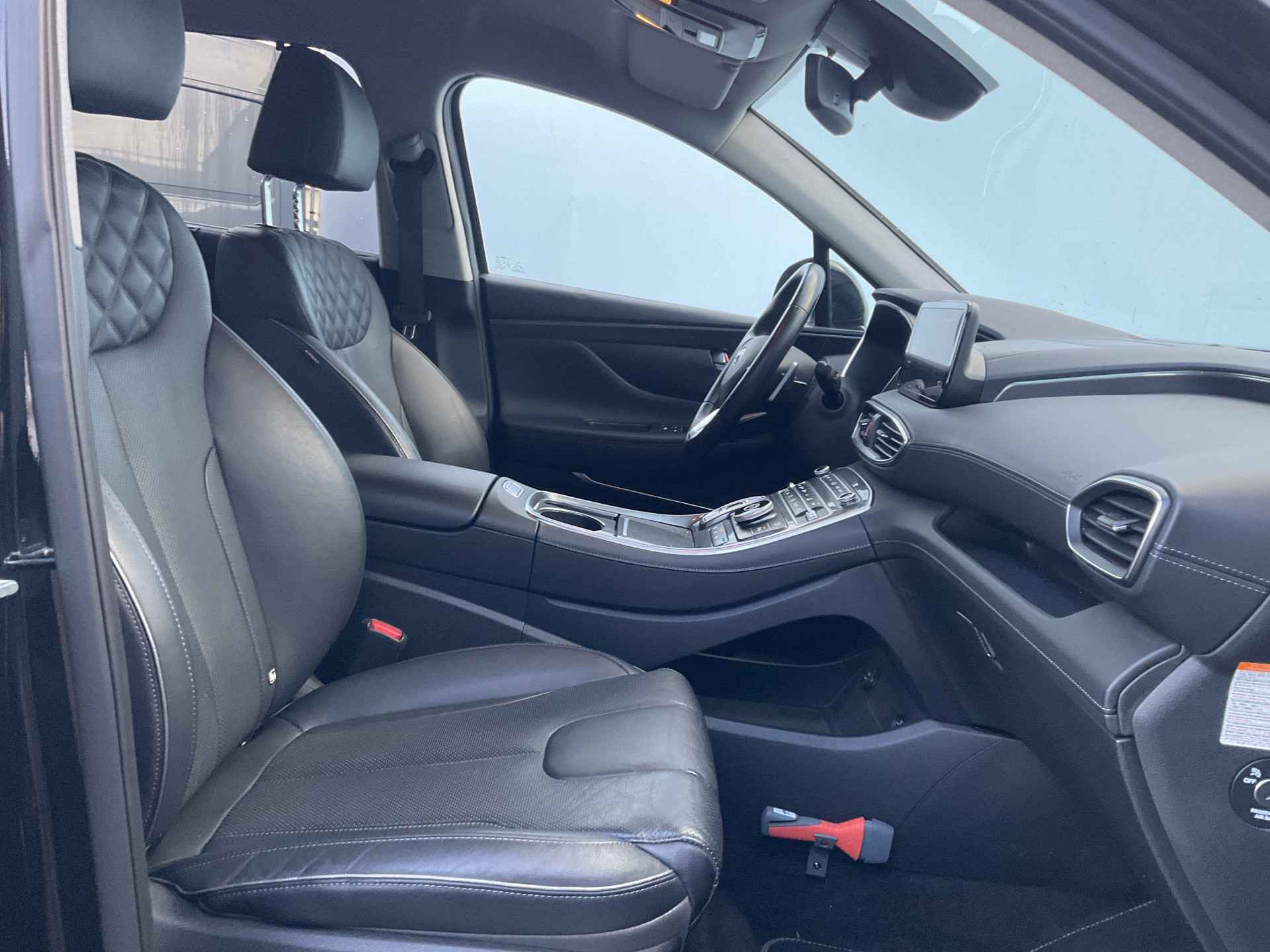 Zoals u mag verwachten van deze Hyundai Santa Fe is hij uitgerust met een reeks aan actieve veiligheidssystemen. U hoeft onderweg uw hoofd nooit te draaien of uw blik te verplaatsen om dashboard-info af te lezen. De head-up display projecteert alles op de voorruit. U kunt rijden als een jachtpiloot. De actuele snelheidslimiet, een inhaalverbod en andere verkeersborden; de verkeersborddetectie ondersteunt u tijdens elke rit. Deze Hyundai Santa Fe is ook behulpzaam als het gaat om een rechte koers. Het Lane-keeping systeem signaleert en corrigeert als u onbedoeld de rijstrooklijnen dreigt te overschrijden. Verder is deze auto uitgerust met dodehoekdetector detectiesysteem, forward collision warning system, hill hold functie, vermoeidheidsherkenning, autonoom remsysteem en bandenspanningcontrolesysteem.