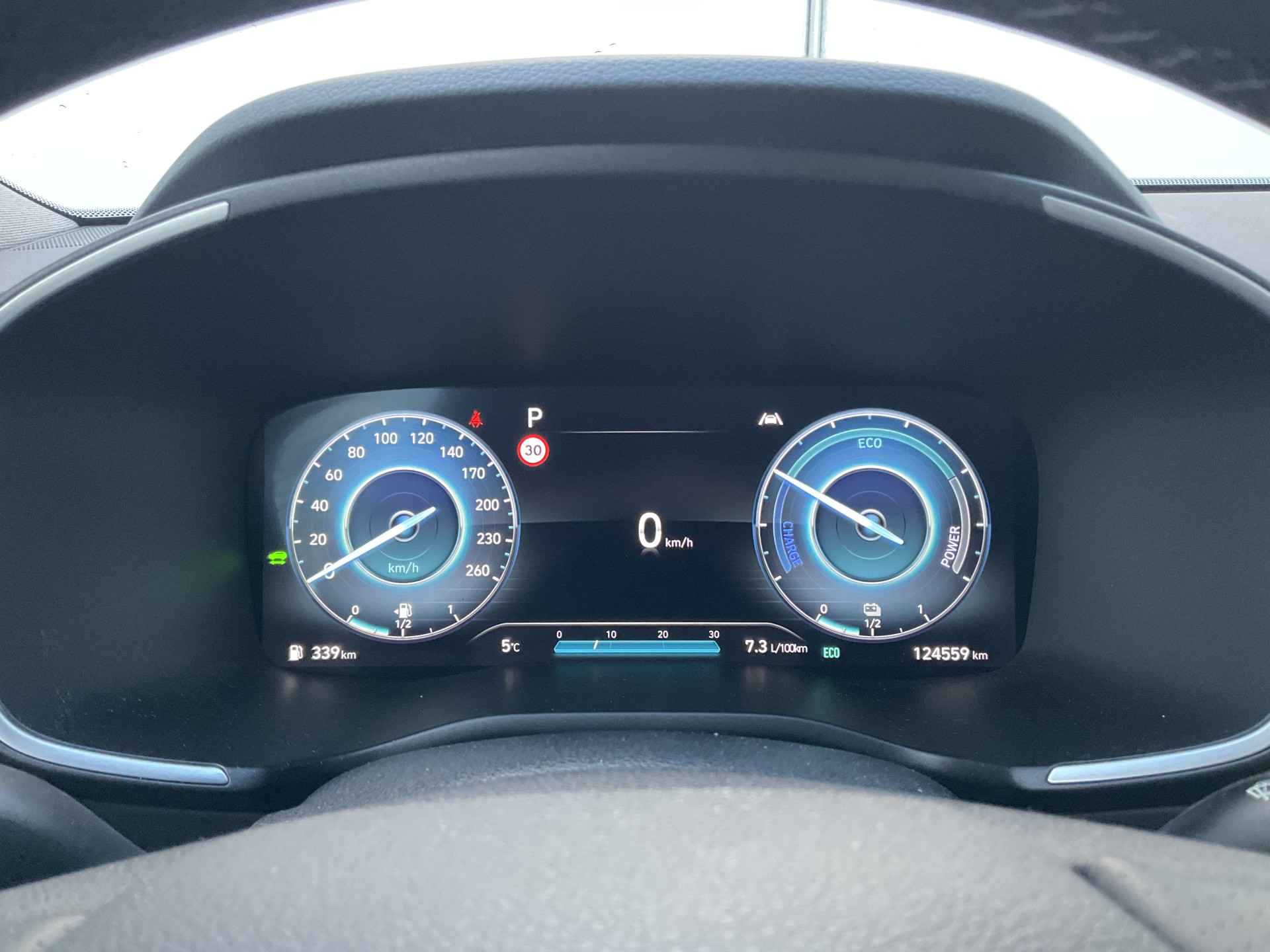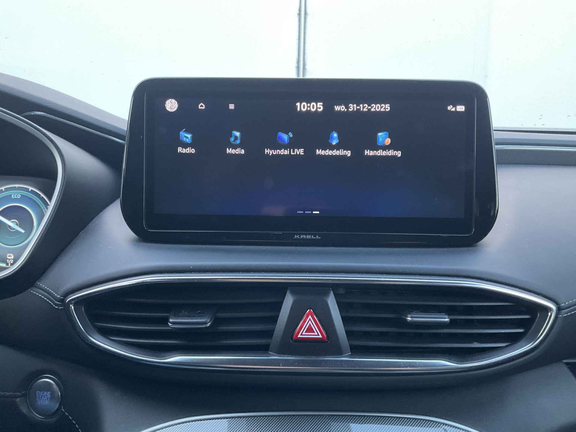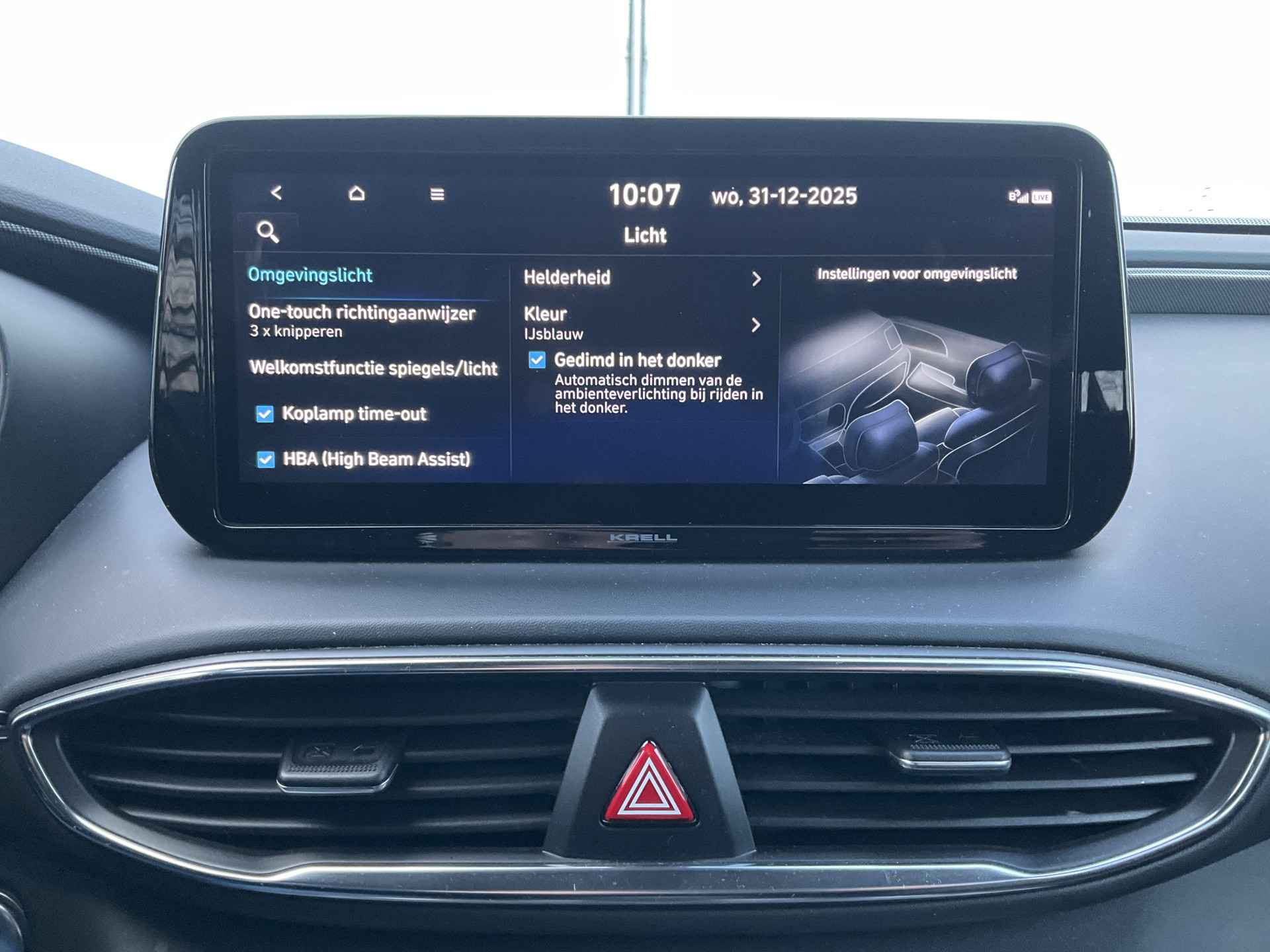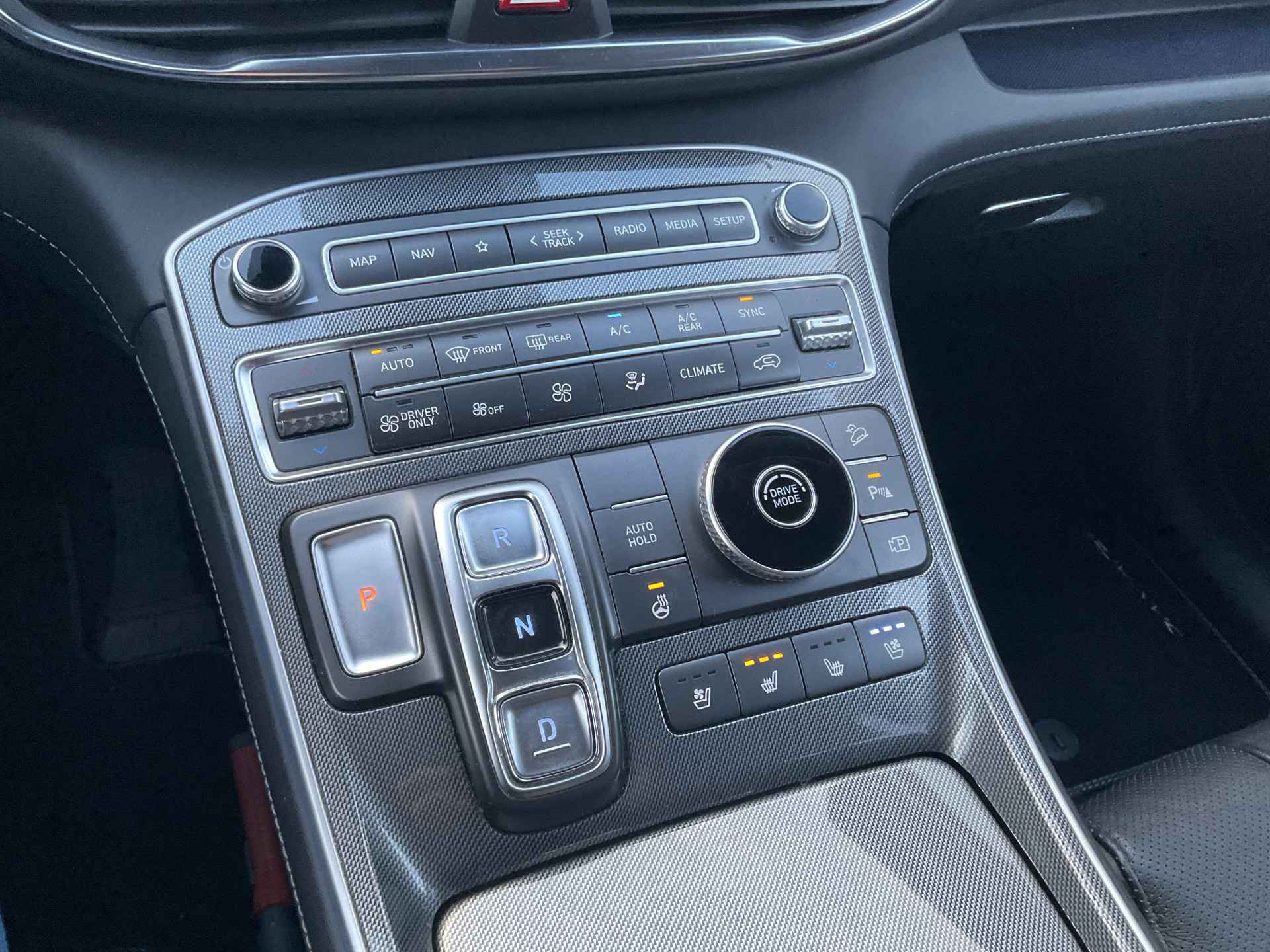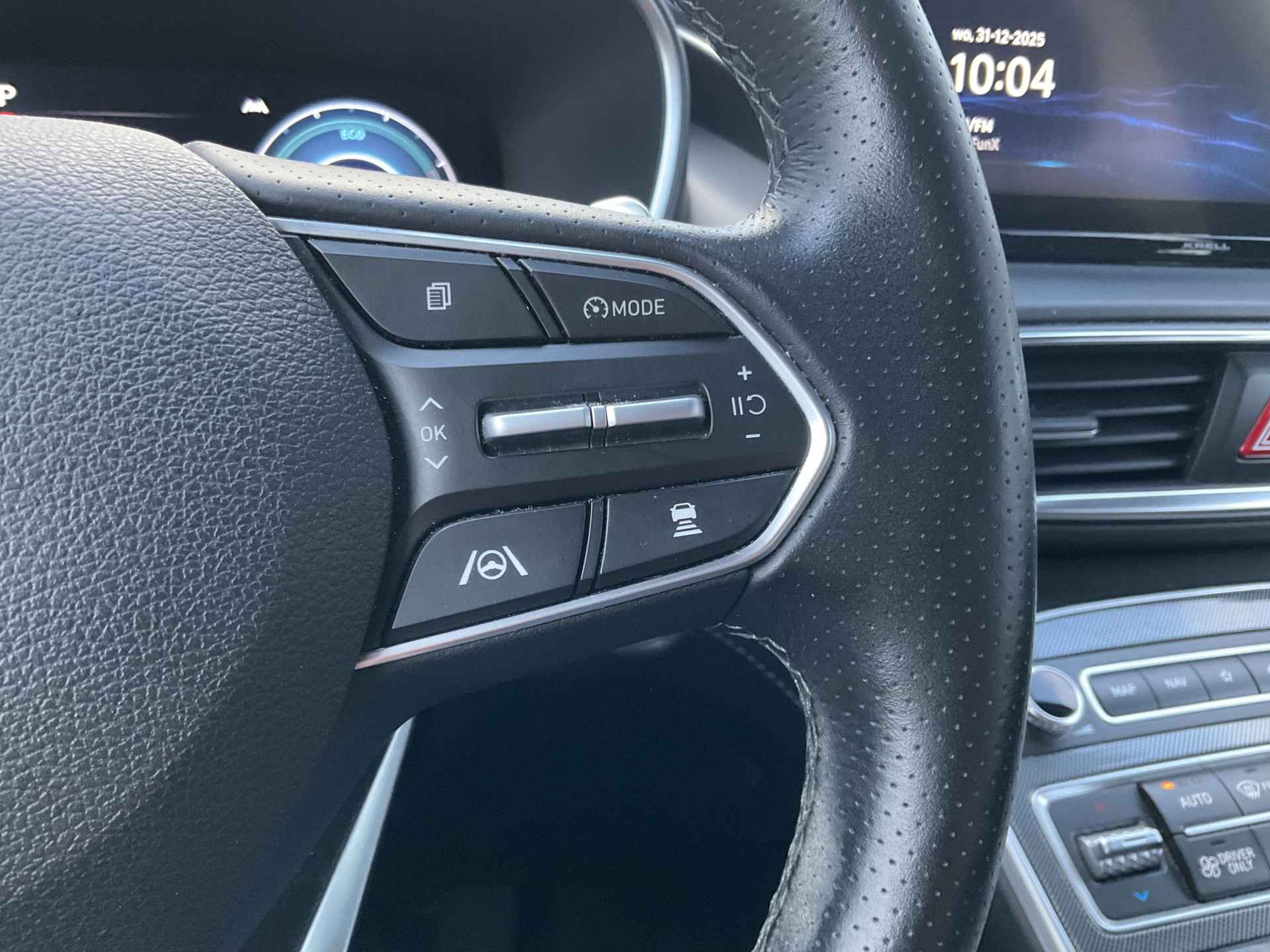 Zoals u mag verwachten van deze Hyundai Santa Fe is hij uitgerust met een reeks aan actieve veiligheidssystemen. U hoeft onderweg uw hoofd nooit te draaien of uw blik te verplaatsen om dashboard-info af te lezen. De head-up display projecteert alles op de voorruit. U kunt rijden als een jachtpiloot. De actuele snelheidslimiet, een inhaalverbod en andere verkeersborden; de verkeersborddetectie ondersteunt u tijdens elke rit. Deze Hyundai Santa Fe is ook behulpzaam als het gaat om een rechte koers. Het Lane-keeping systeem signaleert en corrigeert als u onbedoeld de rijstrooklijnen dreigt te overschrijden. Verder is deze auto uitgerust met dodehoekdetector detectiesysteem, forward collision warning system, hill hold functie, vermoeidheidsherkenning, autonoom remsysteem en bandenspanningcontrolesysteem.