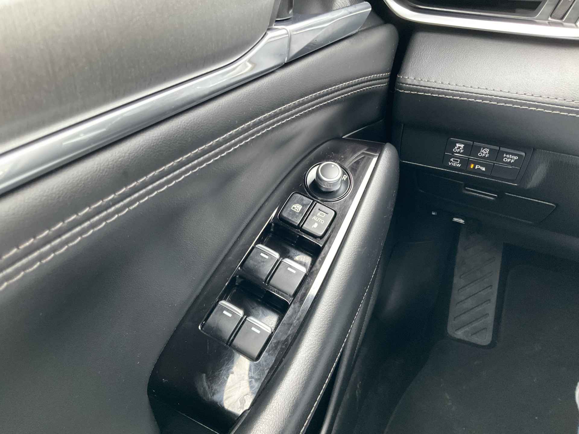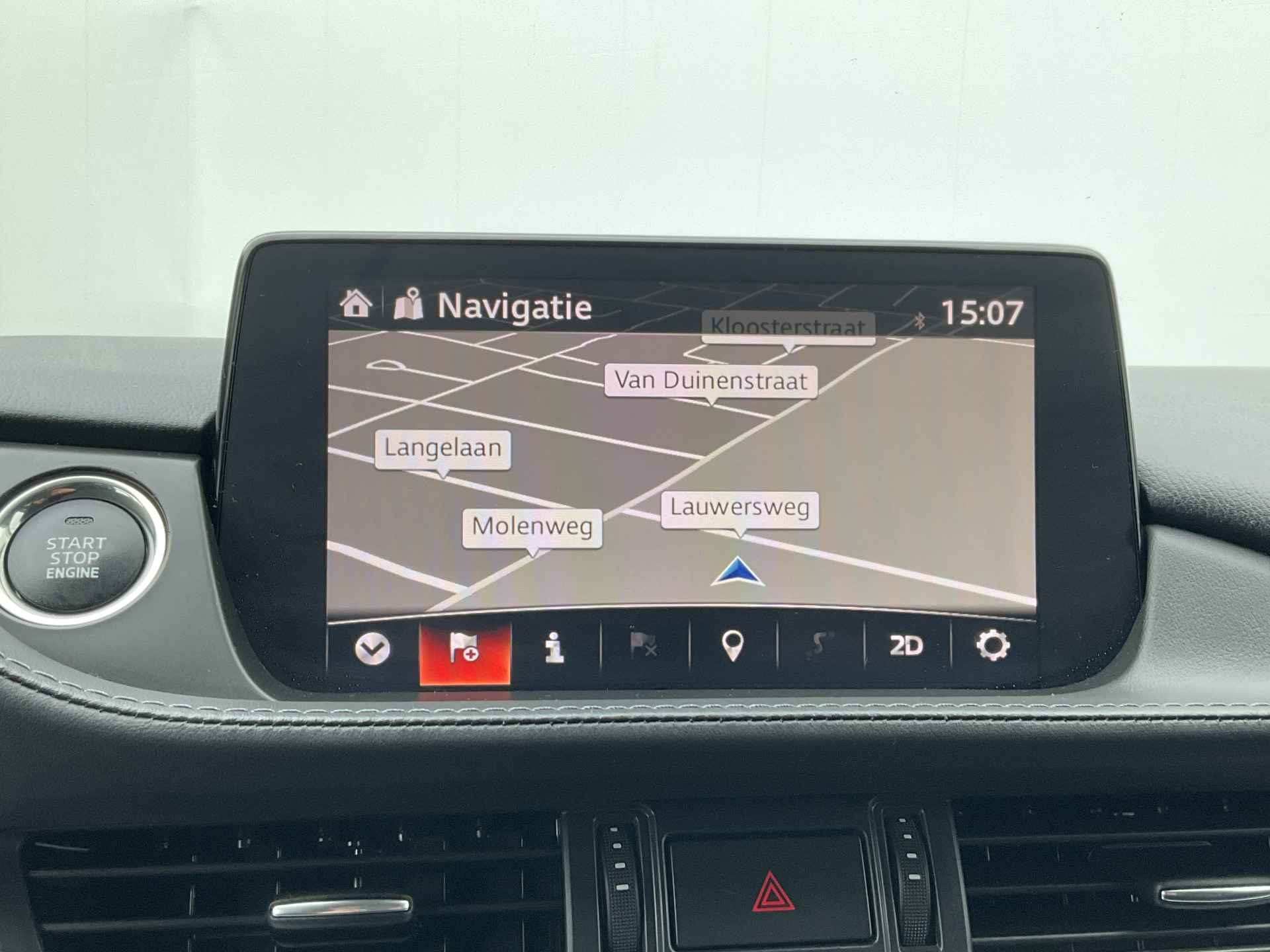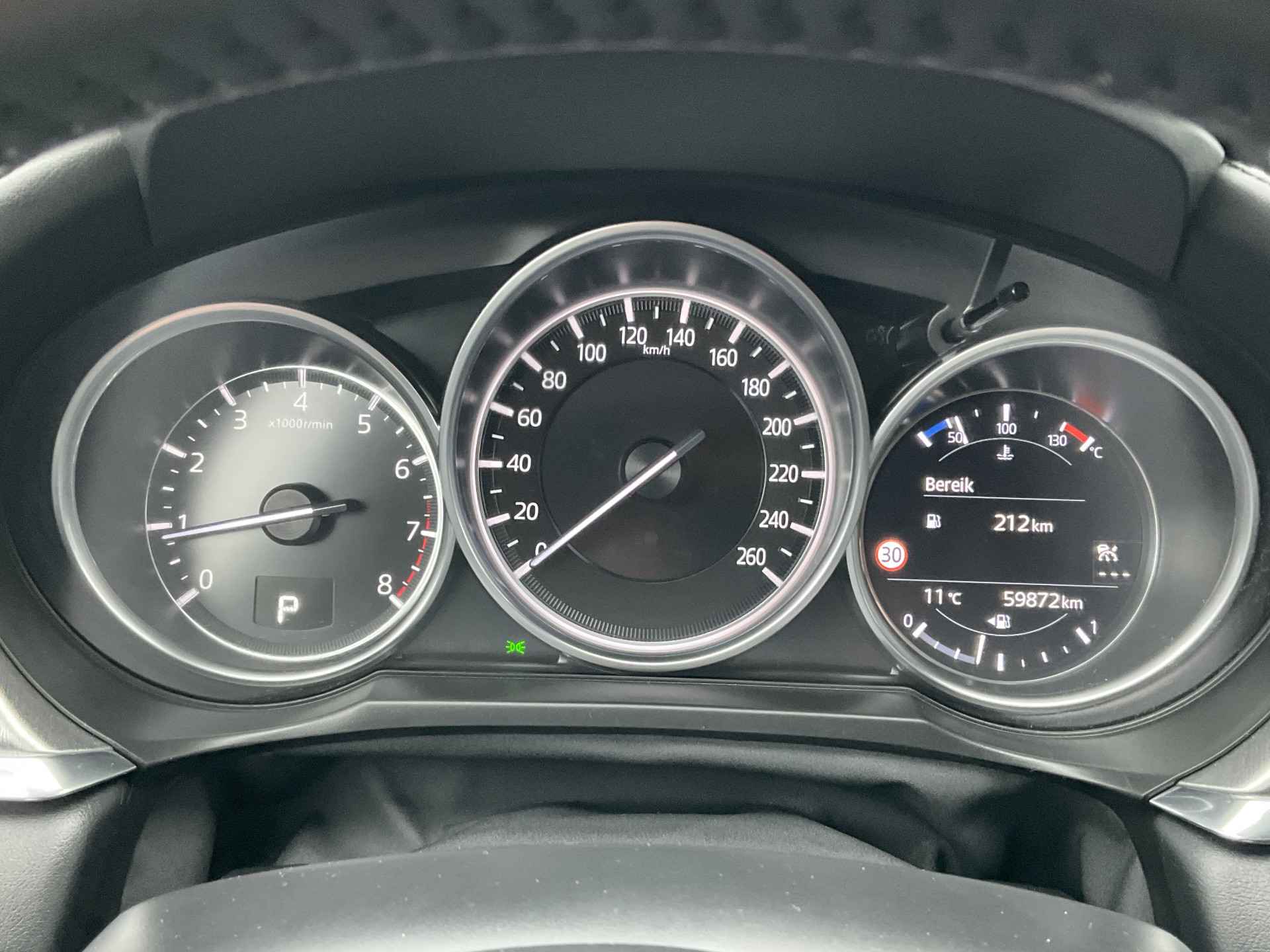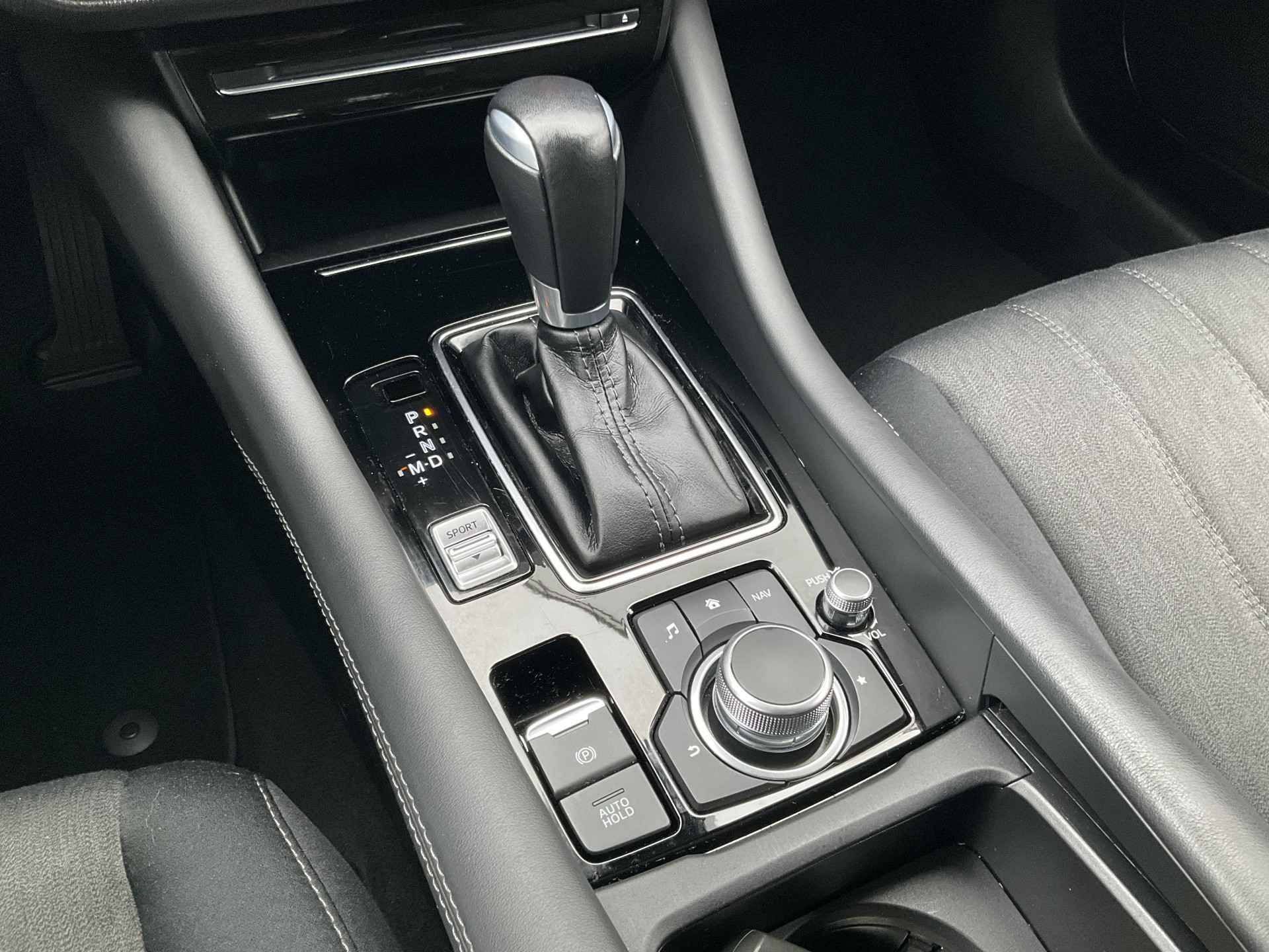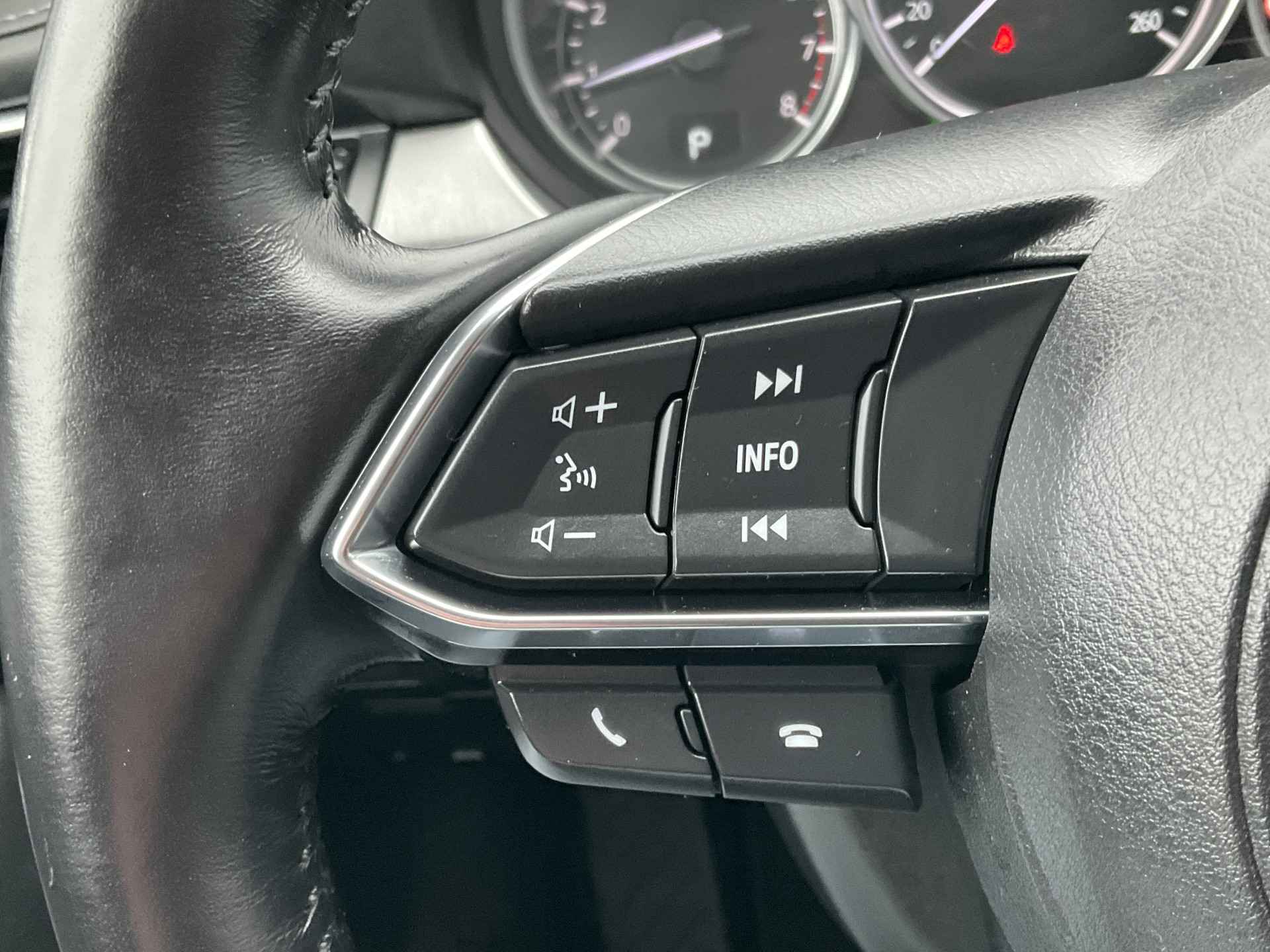 Met de 360 graden camera, verzorgd door vier camera's, wordt rijden in drukke steden of het navigeren in nauwe ruimtes een koud kunstje. Adaptive cruise control houdt de ingestelde snelheid vast en houdt afstand tot het voertuig voor u. De auto is voorzien van een trekhaak en is een uitstekende caravantrekker. Dankzij het audiosysteem met bluetooth connectivity beluistert u muziek alsof u er live bij bent. De achteropkomend verkeer waarschuwing bewaakt de afstand tot achterliggers en geeft een signaal als er te weinig ruimte is. Met dashboard met spraakbediening, full map navigatiesysteem, automatische airconditioning, regensensor, automatisch dimmende binnenspiegel en lederen stuur is deze Mazda helemaal compleet.