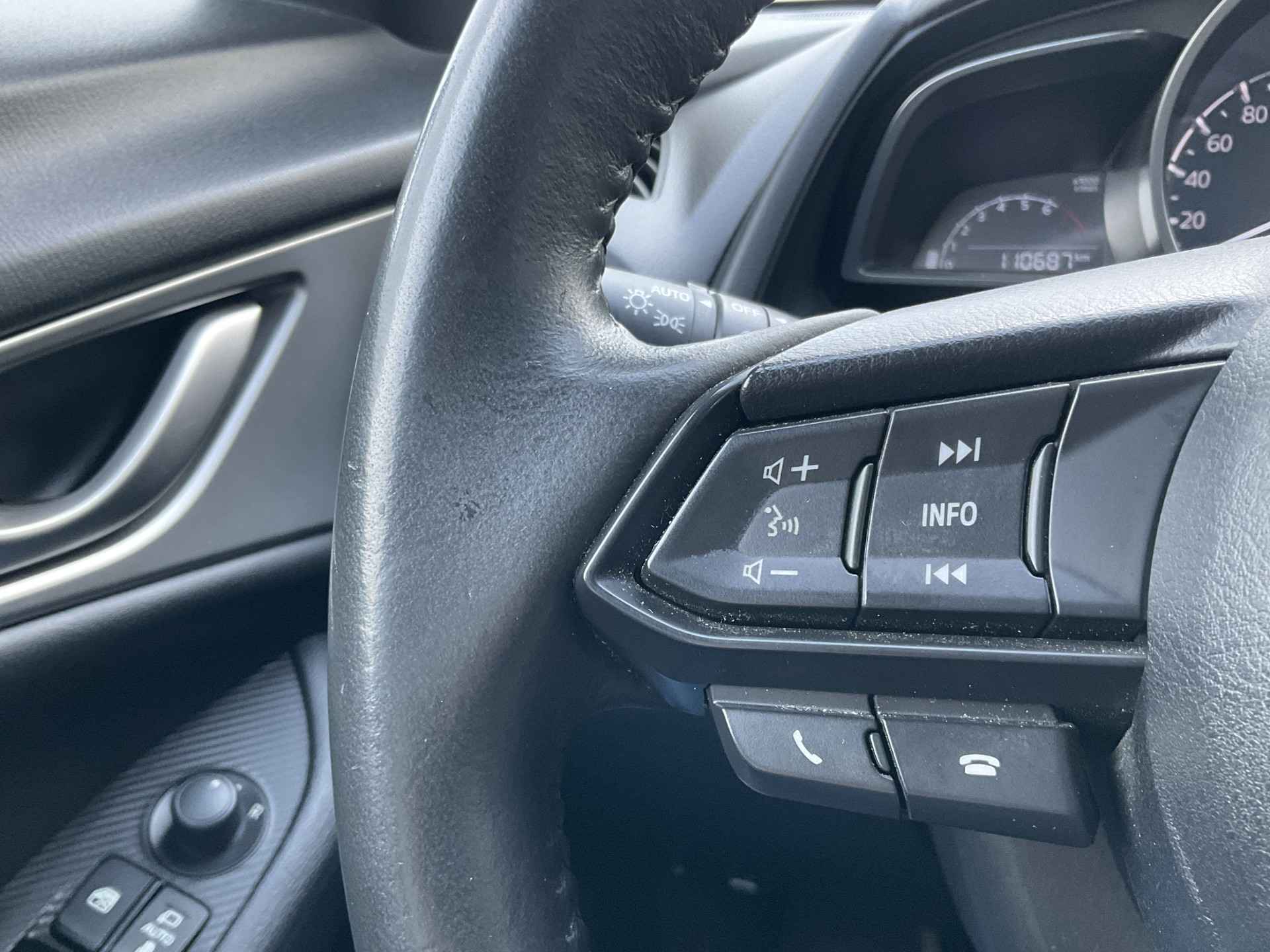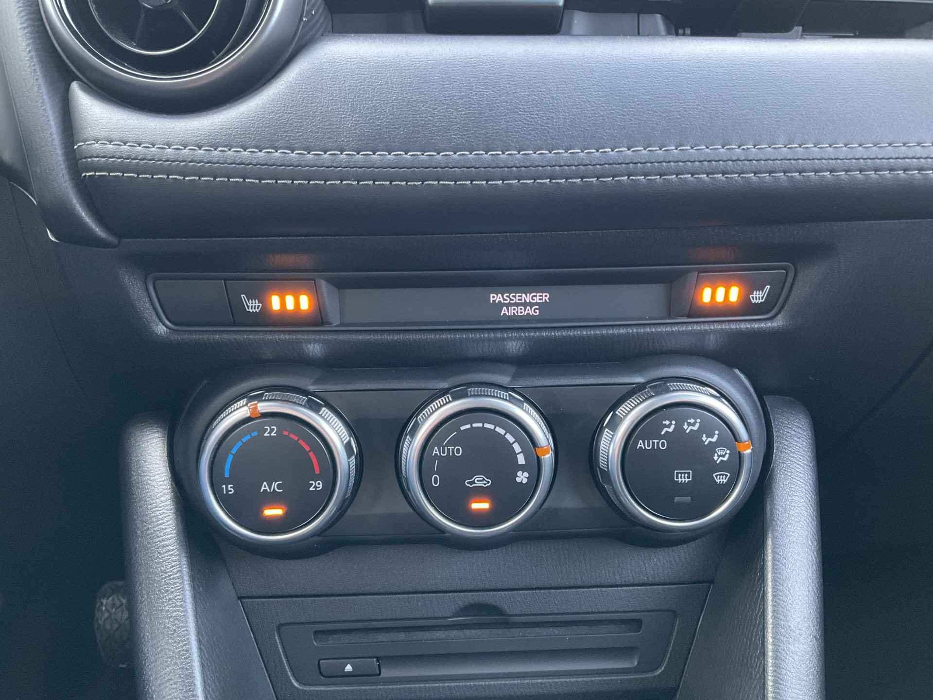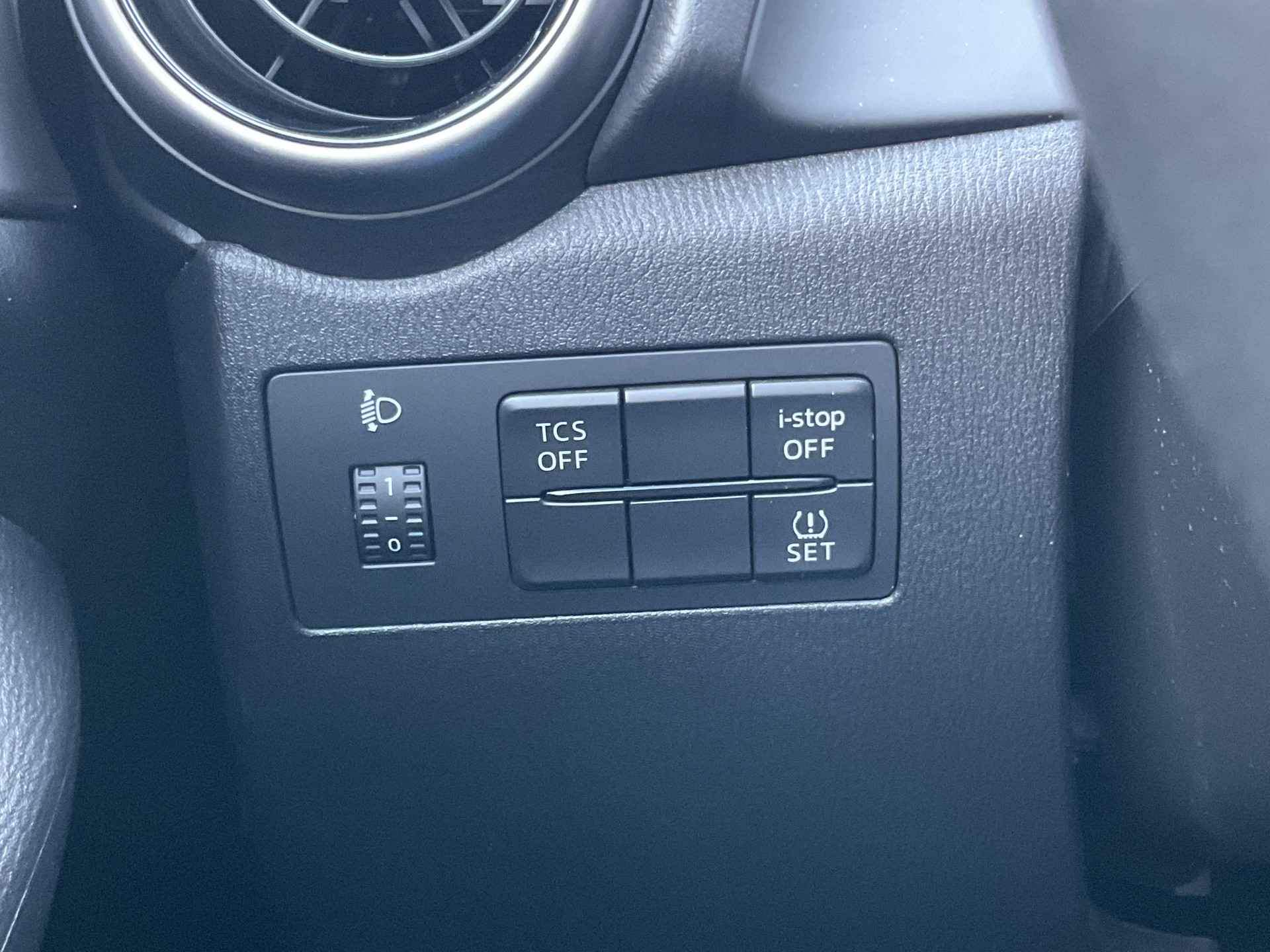 De sensoren van de achteropkomend verkeer waarschuwing registreren wat er gebeurt in de dode hoeken en achter u. U krijgt meteen een waarschuwing als u een achterligger over het hoofd ziet. De electronic climate control zorgt onder alle omstandigheden voor een prettige temperatuur. Parkeersensoren ondersteunen u tijdens het in- en uitparkeren. De elektronische systemen in deze Mazda helpen u actief om comfortabeler te rijden. Een automatisch inschakelbare verlichting en een regensensor houden de omstandigheden onderweg in de gaten. Cruise control verlaagt de brandstofkosten en verhoogt het rijcomfort. Met DAB ontvangst, automatisch dimmende binnenspiegel, centrale deurvergrendeling met afstandsbediening, boordcomputer en verstelbaar stuur is deze auto helemaal compleet.