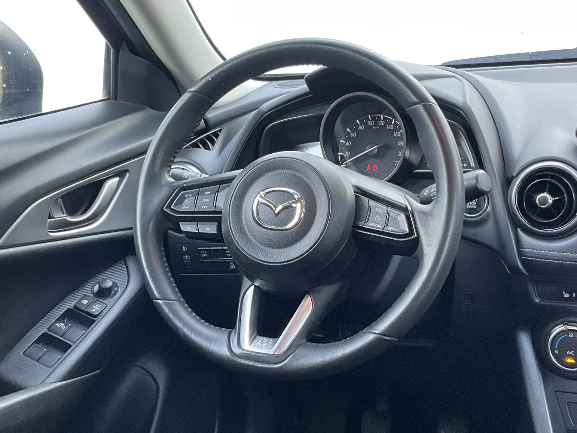 Ontspannen en zorgeloos autorijden, dat doet u met deze Mazda CX-3. Een krachtige benzinemotor zorgt voor de aandrijving van deze SUV. 's Winters komen de verwarmbare voorstoelen heerlijk van pas. Verder is de Mazda uitgerust met: 18 inch lichtmetalen velgen, dakspoiler, donker getint glas achter en in delen neerklapbare achterbank.