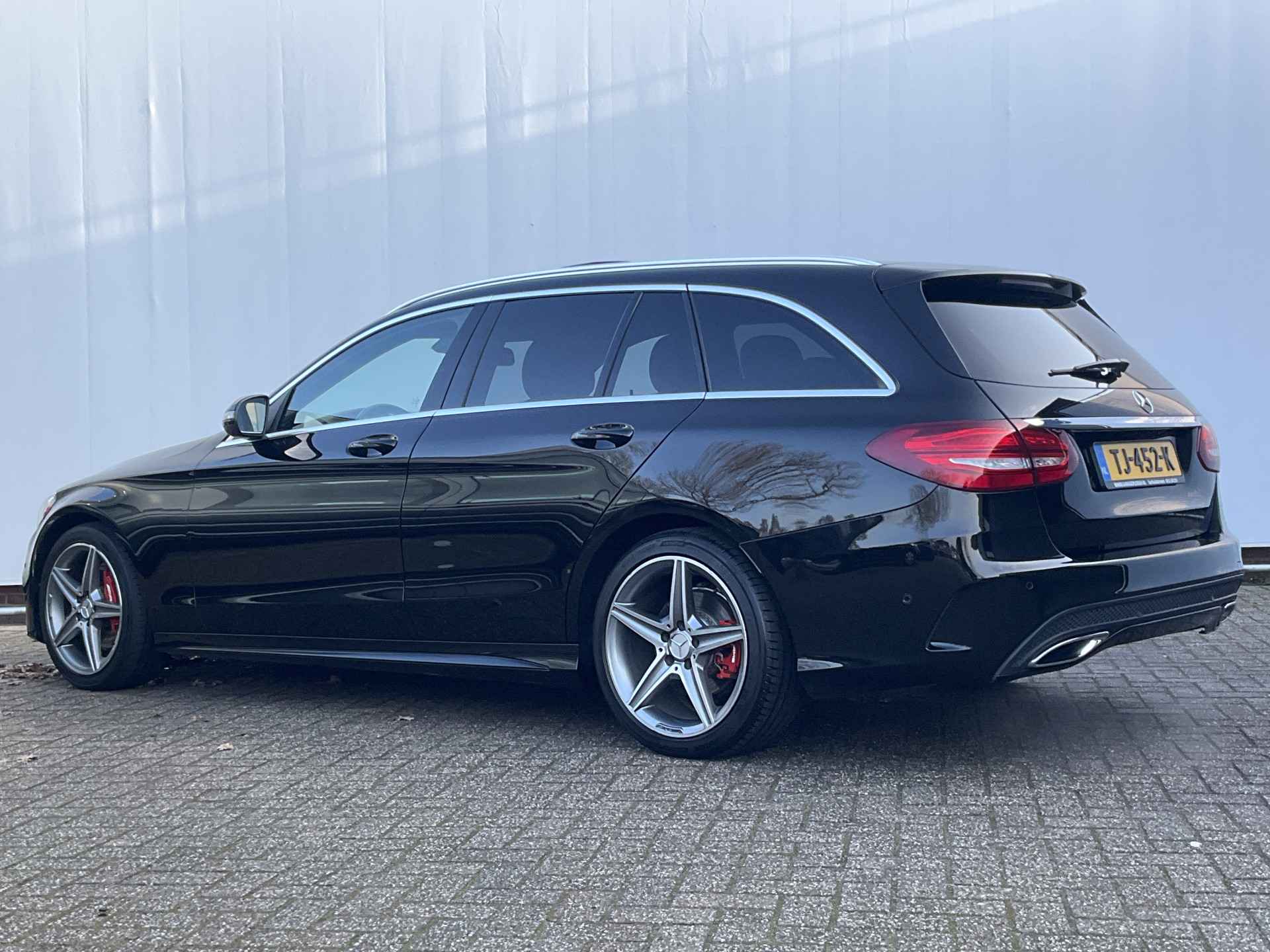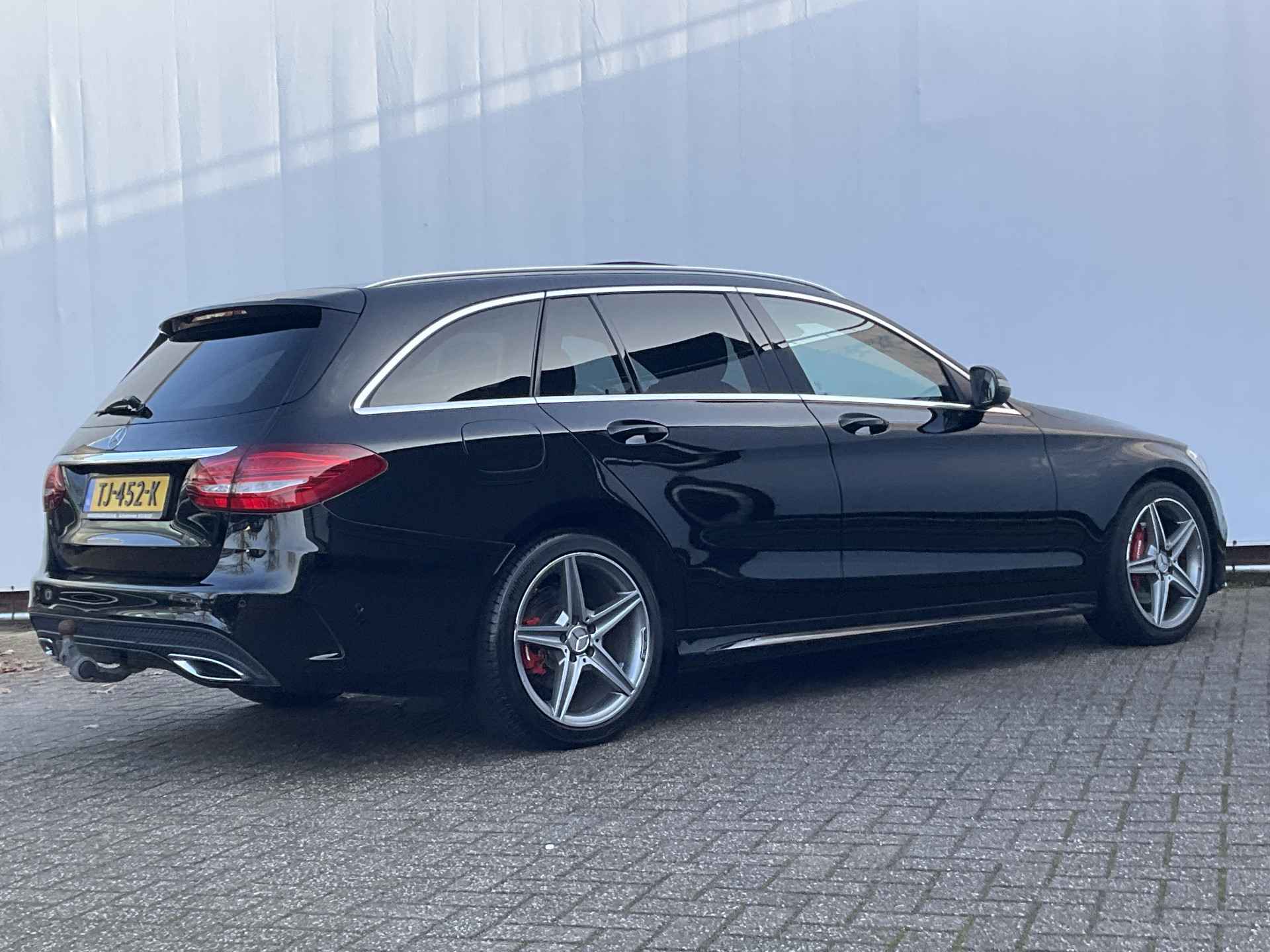 Het premiumgevoel dat deze Mercedes-Benz C-klasse Estate u geeft, is het gevolg van ver doorgevoerde kwaliteit in ieder facet. De uitgekiende techniek, de gedistingeerde vormgeving, het hoge afwerkingsniveau, het benadrukt allemaal het hoge niveau van deze auto. Een beetje meer aandacht en een stoere uitstraling? Daar zorgt de AMG Line Exterieur voor. Een viercilinder dieselmotor en een automatische transmissie zorgen voor de uitstekende prestaties van deze auto. Fraai hoor, zo'n lederen interieur. En door de gemakkelijk elektrisch bedienbare achterklep bent u snel overtuigd van deze auto. Tijdens de koude maanden is stoelverwarming een voorziening die u niet wilt missen. Tot de voorzieningen van deze auto behoren 18 inch lichtmetalen velgen, LED koplampen, AMG Line Exterieur, sportonderstel, warmtewerend glas en in delen neerklapbare achterbank.