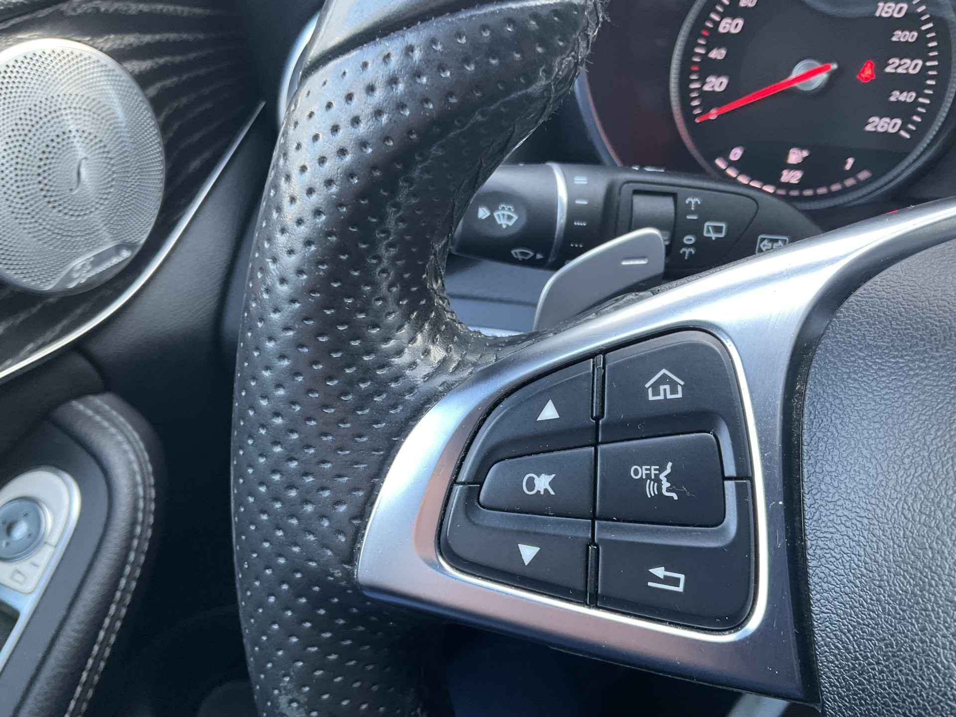 Geen nekkramp of spiegelwerk meer bij het achteruitrijden: de achteruitrijcamera kijkt en ziet alles! Via uw smartphone en Connected Services checkt u eenvoudig de belangrijke functies van de auto, overal en altijd. U kunt tijdens de rit uw ogen steeds op de weg houden, want het audio-installatiesysteem en het navigatiesysteem met harde schijf kunt u bedienen vanaf het stuur of met spraak. De kans op een kop-staart botsing wordt sterk gereduceerd door het systeem van achteropkomend verkeer waarschuwing. Automatische airconditioning regelt volautomatisch de temperatuur. U kiest de gewenste temperatuur en het systeem doet de rest. Met schakelpaddles aan het stuur, regensensor, cruise control, automatisch dimmende buitenspiegels, centrale deurvergrendeling met afstandsbediening en bagage afdekhoes is deze Mercedes-Benz helemaal compleet.