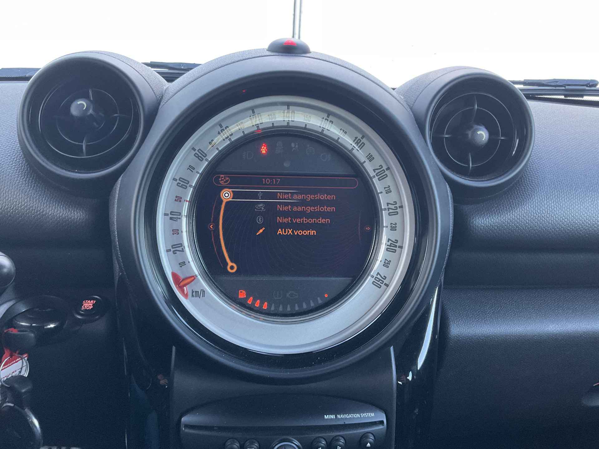 Met de ingebouwde spraakbediening kunt u de belangrijkste voertuigsystemen bedienen met stemcommando's. Nooit meer de weg zoeken en ontspannen arriveren bij uw reisdoel. Met het full map navigatiesysteem zit u veilig en ontspannen in de auto. Soms heeft u meer parkeerruimte dan u denkt. Maar soms ook niet. De parkeersensoren vertellen precies hoeveel. De cruise control houdt de snelheid constant. Dat is relaxt reizen! Ja, airconditioning is er natuurlijk ook in deze auto. Deze MINI is voorzien van buitentemperatuurmeter en centrale deurvergrendeling met afstandsbediening.