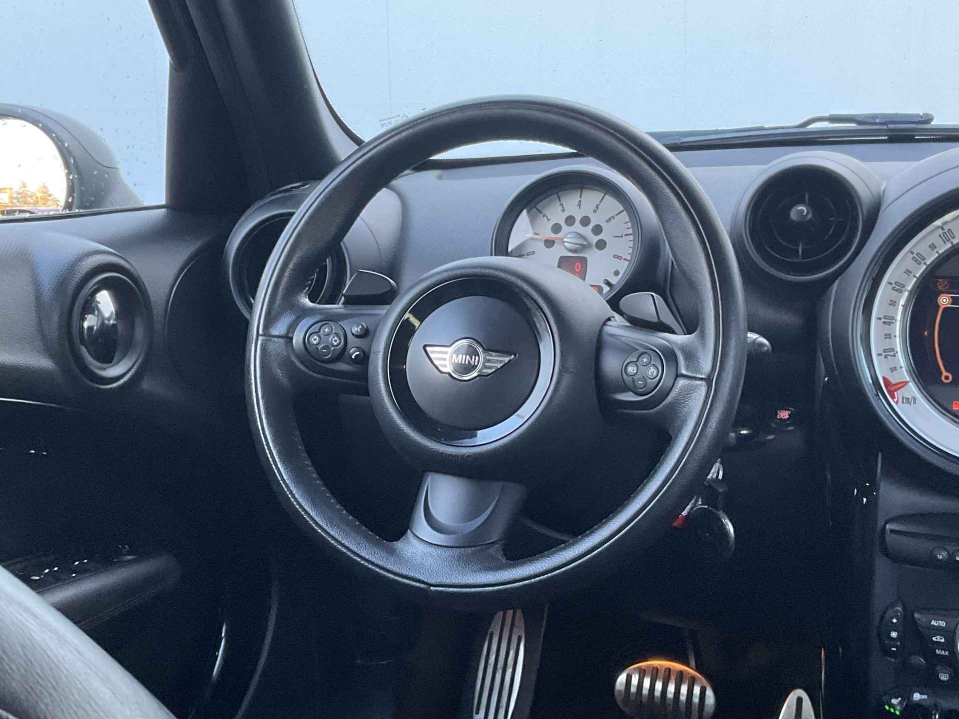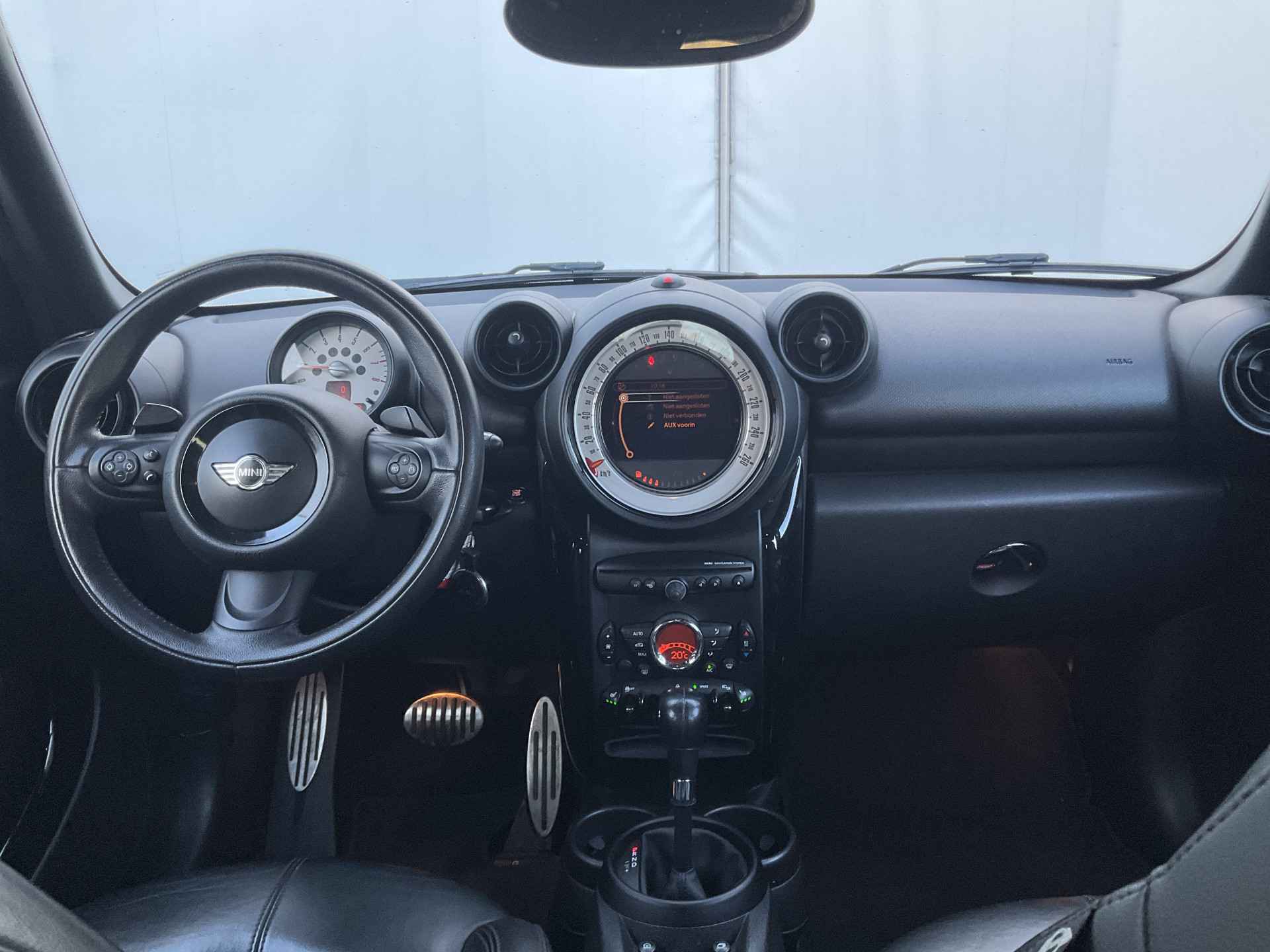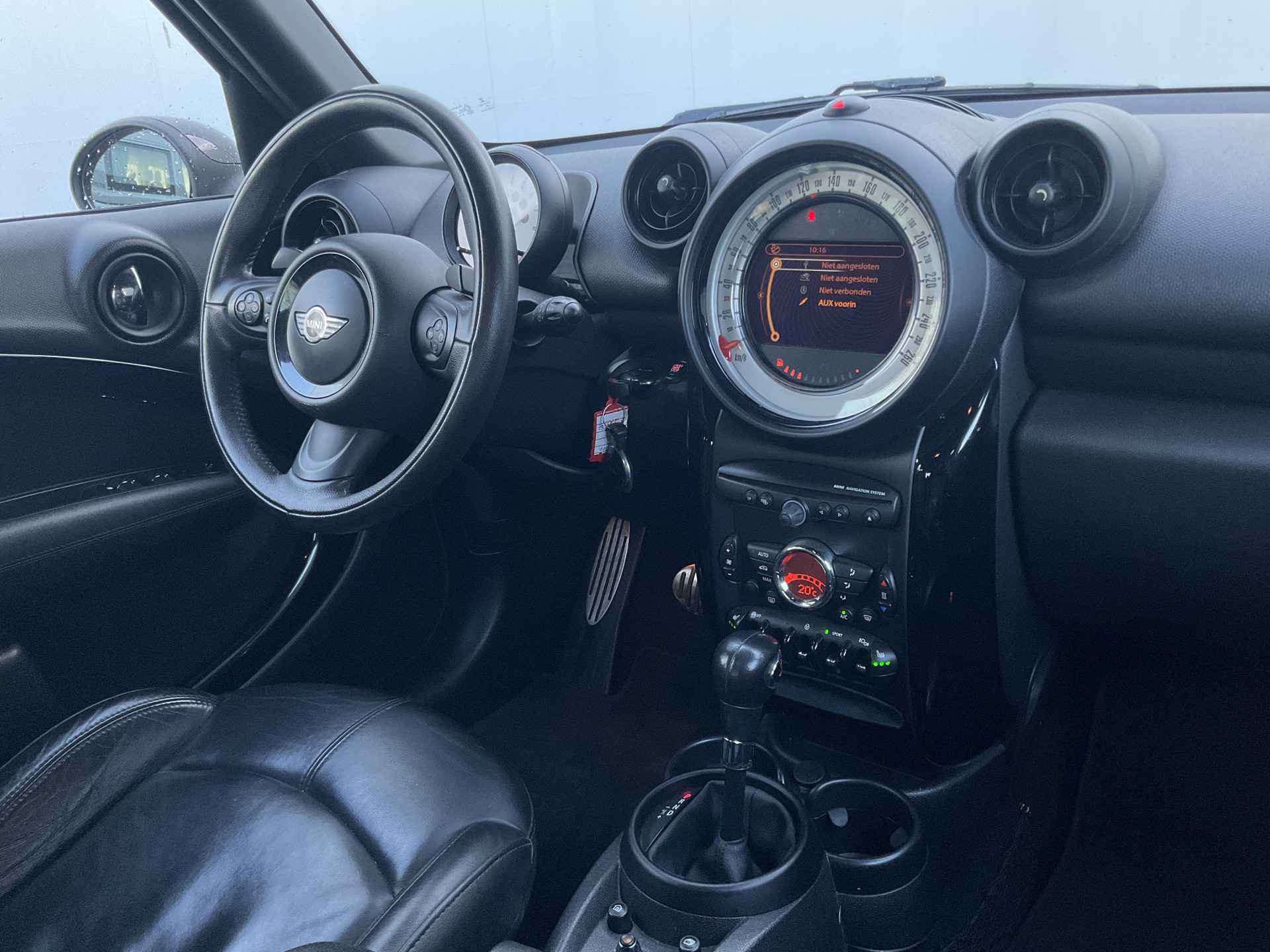 U ziet het al aan de buitenkant en u voelt het zodra u de krachtige motor start, deze sportieve MINI Countryman is gemaakt om prestaties te leveren. We hebben het hier over een auto uit 2013, hij heeft 183359 kilometer gelopen. Een viercilinder benzinemotor en een automatische transmissie zorgen voor de uitstekende prestaties van deze auto. De hoogwaardige, lederen bekleding benadrukt de kwaliteit van deze MINI. Tijdens de koude maanden is stoelverwarming een voorziening die u niet wilt missen. Bij de rijke uitrusting horen ook 17 inch lichtmetalen velgen en dakspoiler.