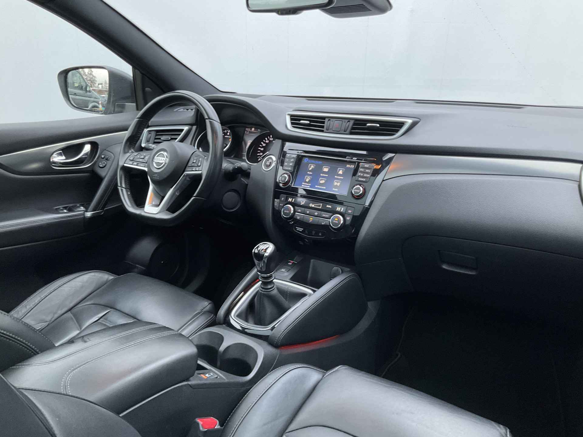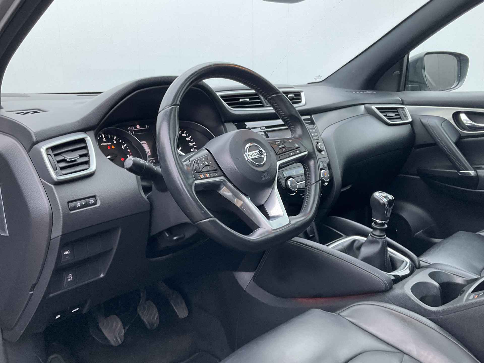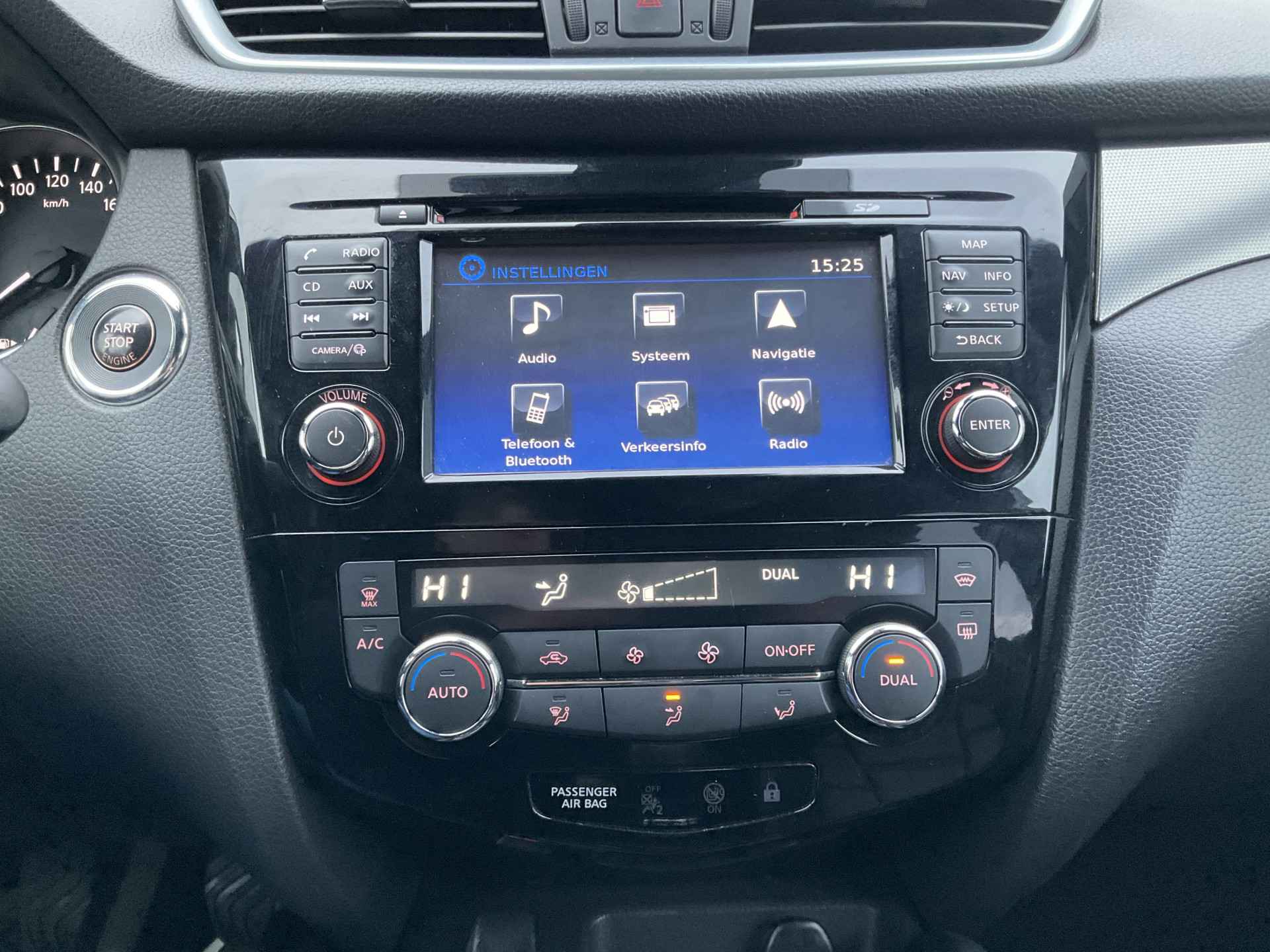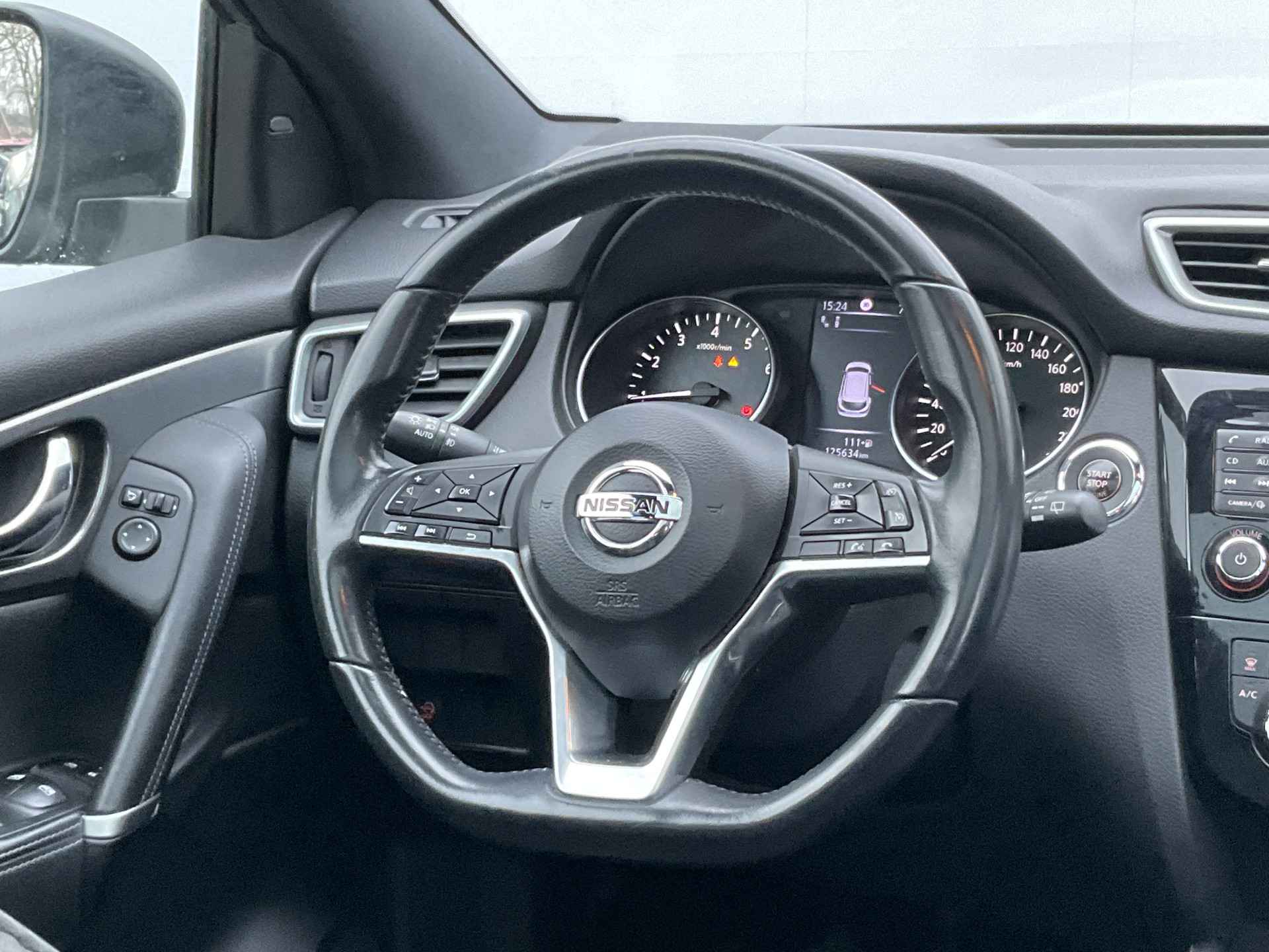 Pragmatisch en veilig als deze auto is, beschikt hij over diverse veiligheidssystemen. De camera van de verkeersborddetectie herkent verschillende soorten verkeersborden en toont deze op het dashboard. Deze Nissan Qashqai is ook behulpzaam als het gaat om een rechte koers. Het Lane-keeping systeem signaleert en corrigeert als u onbedoeld de rijstrooklijnen dreigt te overschrijden. Het laatste wat u wilt is dat u achter het stuur indommelt. Om dat te voorkomen is deze auto uitgerust met vermoeidheidsherkenning. De auto is ook uitgerust met dodehoekdetectie, hill hold functie, brake assist en bandenspanningcontrolesysteem.