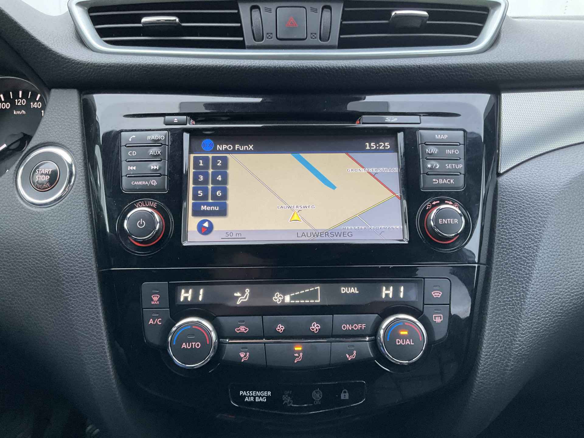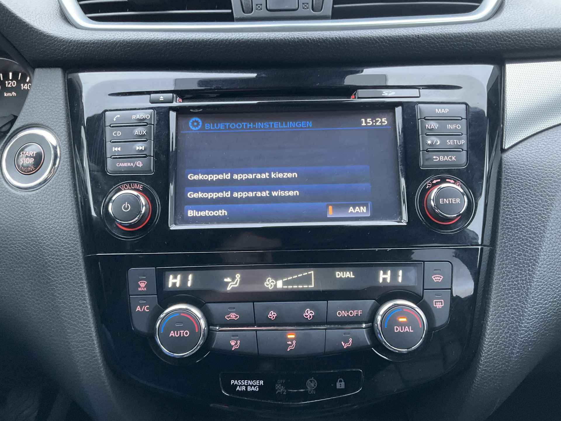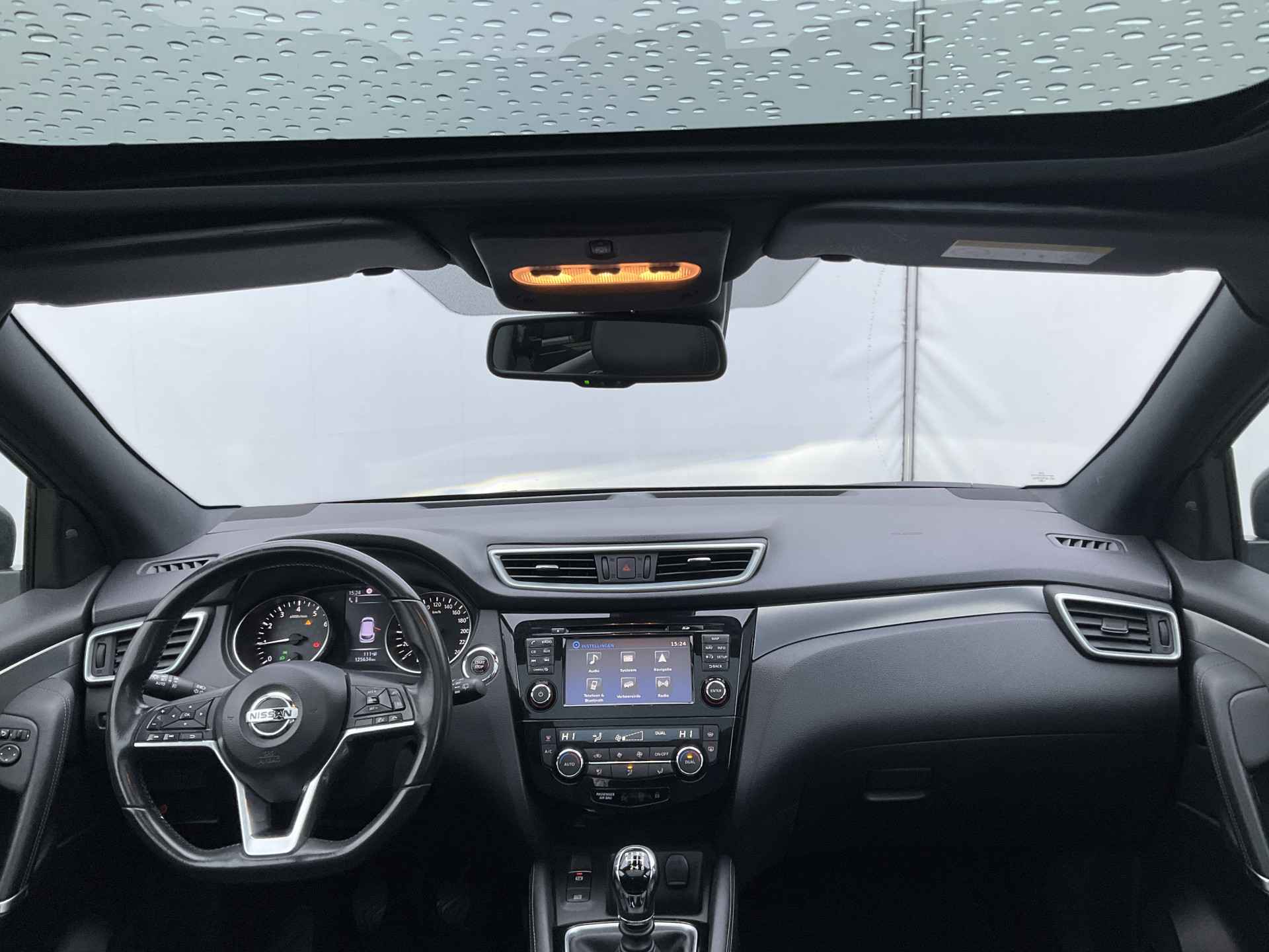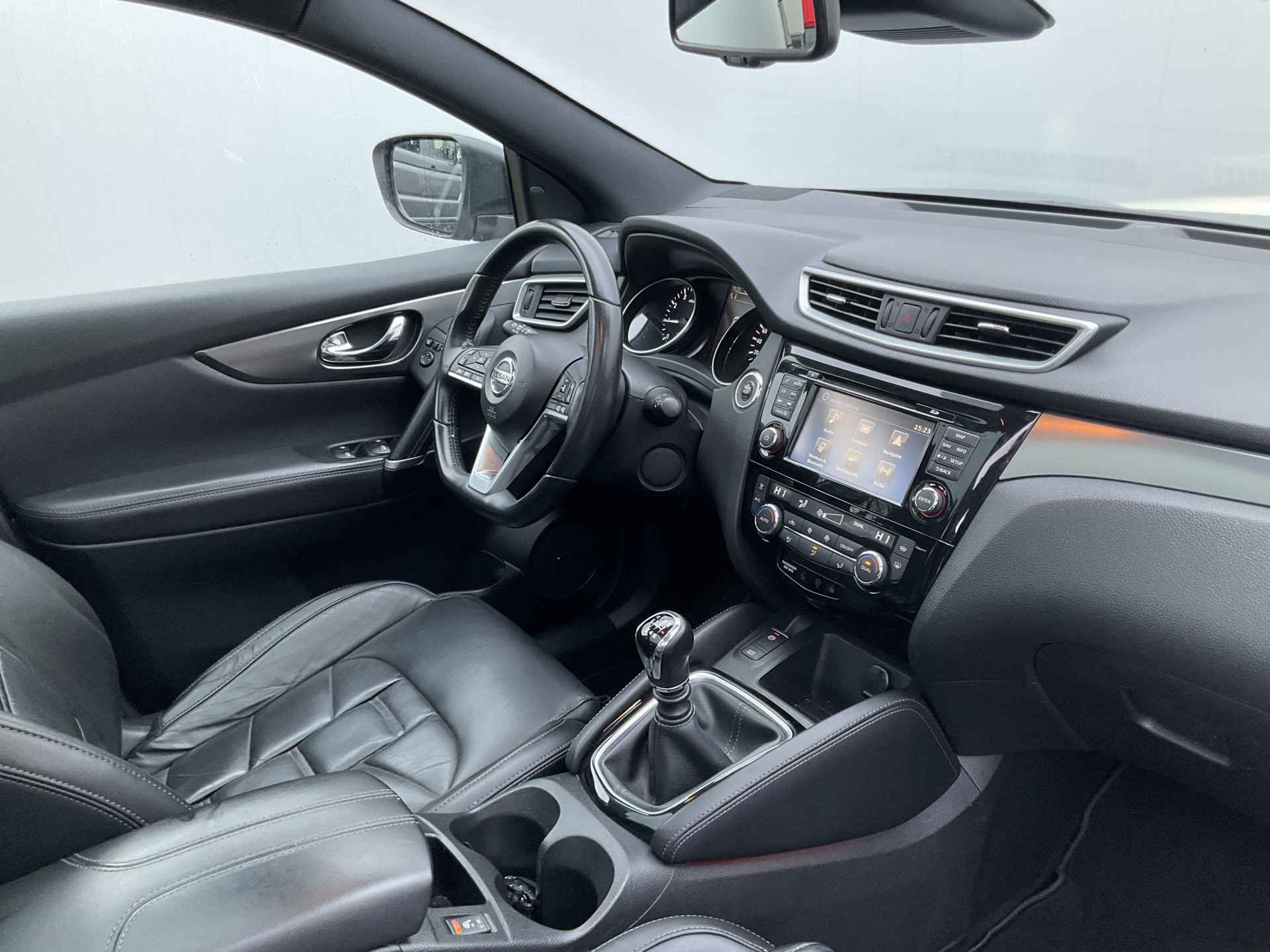 Pragmatisch en veilig als deze auto is, beschikt hij over diverse veiligheidssystemen. De camera van de verkeersborddetectie herkent verschillende soorten verkeersborden en toont deze op het dashboard. Deze Nissan Qashqai is ook behulpzaam als het gaat om een rechte koers. Het Lane-keeping systeem signaleert en corrigeert als u onbedoeld de rijstrooklijnen dreigt te overschrijden. Het laatste wat u wilt is dat u achter het stuur indommelt. Om dat te voorkomen is deze auto uitgerust met vermoeidheidsherkenning. De auto is ook uitgerust met dodehoekdetectie, hill hold functie, brake assist en bandenspanningcontrolesysteem.