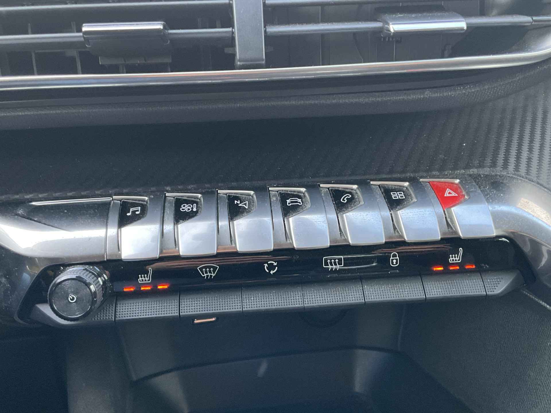 Zo'n lekkere jonge auto heeft natuurlijk leuke extra's, zoals remote services. Met een speciale app maakt u overal verbinding met de auto. Zo kunt u functies activeren en controleren. U bedient het audiosysteem via knoppen op het stuur. Zo kunt u steeds uw aandacht gericht houden op de weg. Tot de standaard uitrusting van deze auto hoort ook electronic climate control. Soms heeft u meer parkeerruimte dan u denkt. Maar soms ook niet. De parkeersensoren vertellen precies hoeveel. Het luxeniveau in deze Peugeot is niet alleen gericht op comfort, maar ook op uw veiligheid. Tal van sensoren helpen u om de omgeving in de gaten te houden. De automatisch inschakelbare verlichting zorgt dat automatisch de verlichting wordt ingeschakeld als het donker wordt, wat bijvoorbeeld in tunnels erg handig is. En de regensensor zet de ruitenwissers aan zonder dat u eraan hoeft te denken. De Peugeot is standaard voorzien van: cruise control, automatisch dimmende binnenspiegel, lederen stuur en centrale deurvergrendeling met afstandsbediening.