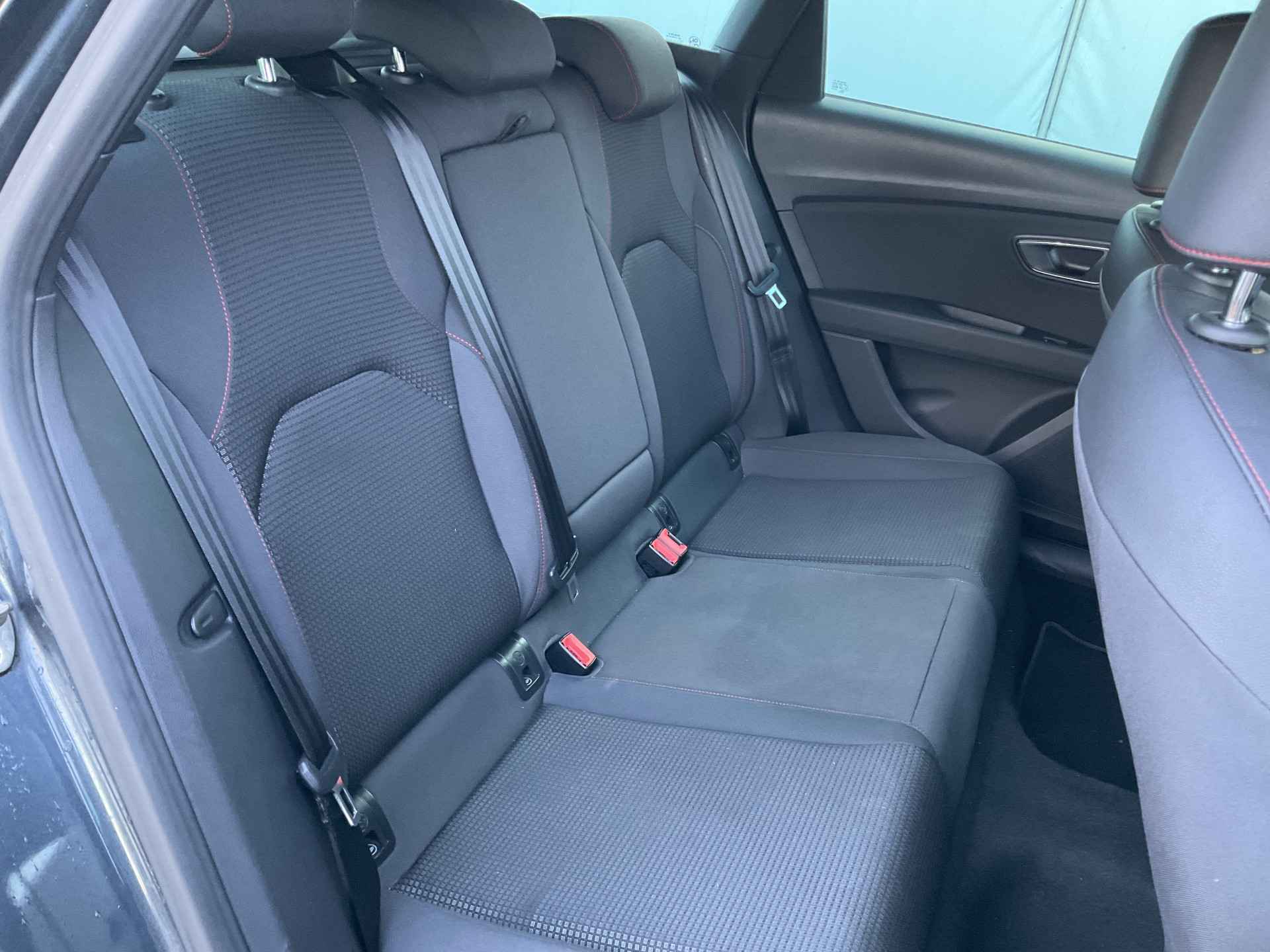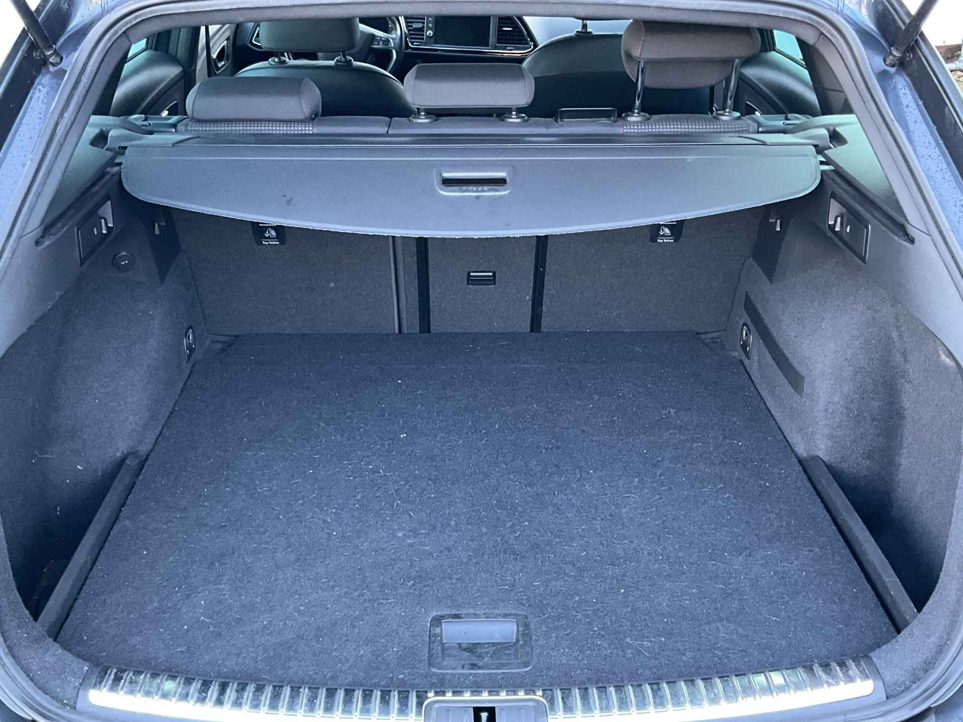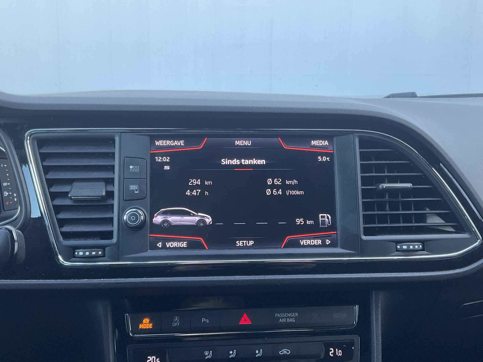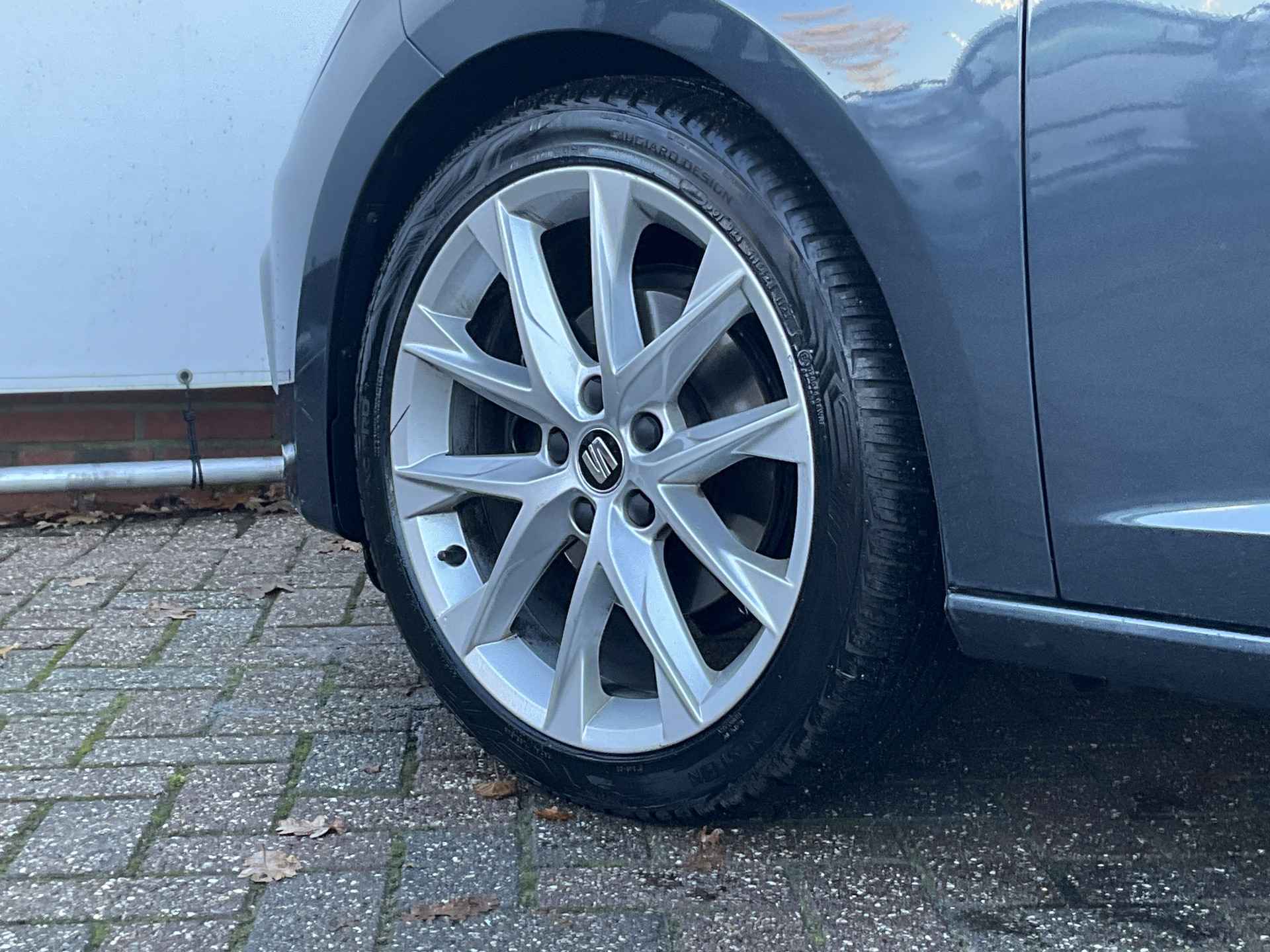 Kommaar-kommaar-kommaar, aldus de achteruitrijcamera. Iedere centimeter vrije ruimte komt haarscherp in beeld. Schadevrij inparkeren maar! Met adaptive cruise control houdt de auto zelfstandig afstand tot uw voorligger. Een veiligheidsverhogende optie waarmee u comfortabel onderweg bent. Onderweg kunt u veilig genieten van het audio-installatiesysteem met DAB-radio en het navigatiesysteem. Want in deze SEAT bedient u ze vanaf het stuurwiel of met uw stem. Smartphone in het rood? Geen punt, de draadloze telefoonlader zorgt voor een volle accu. Automatische airconditioning verwarmt of koelt het interieur met een druk op de knop. Met regensensor, sportstuurwiel, keyless entry, automatisch dimmende binnenspiegel, boordcomputer en lederen versnellingspook is deze SEAT helemaal compleet.