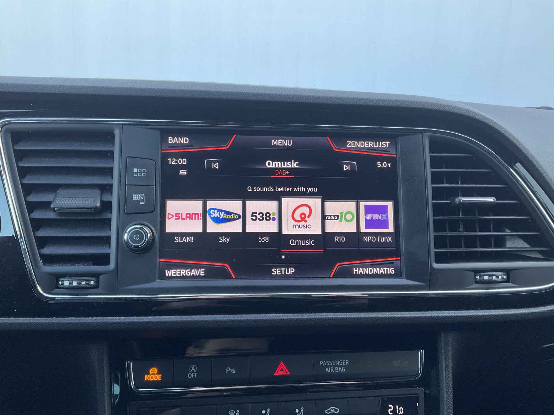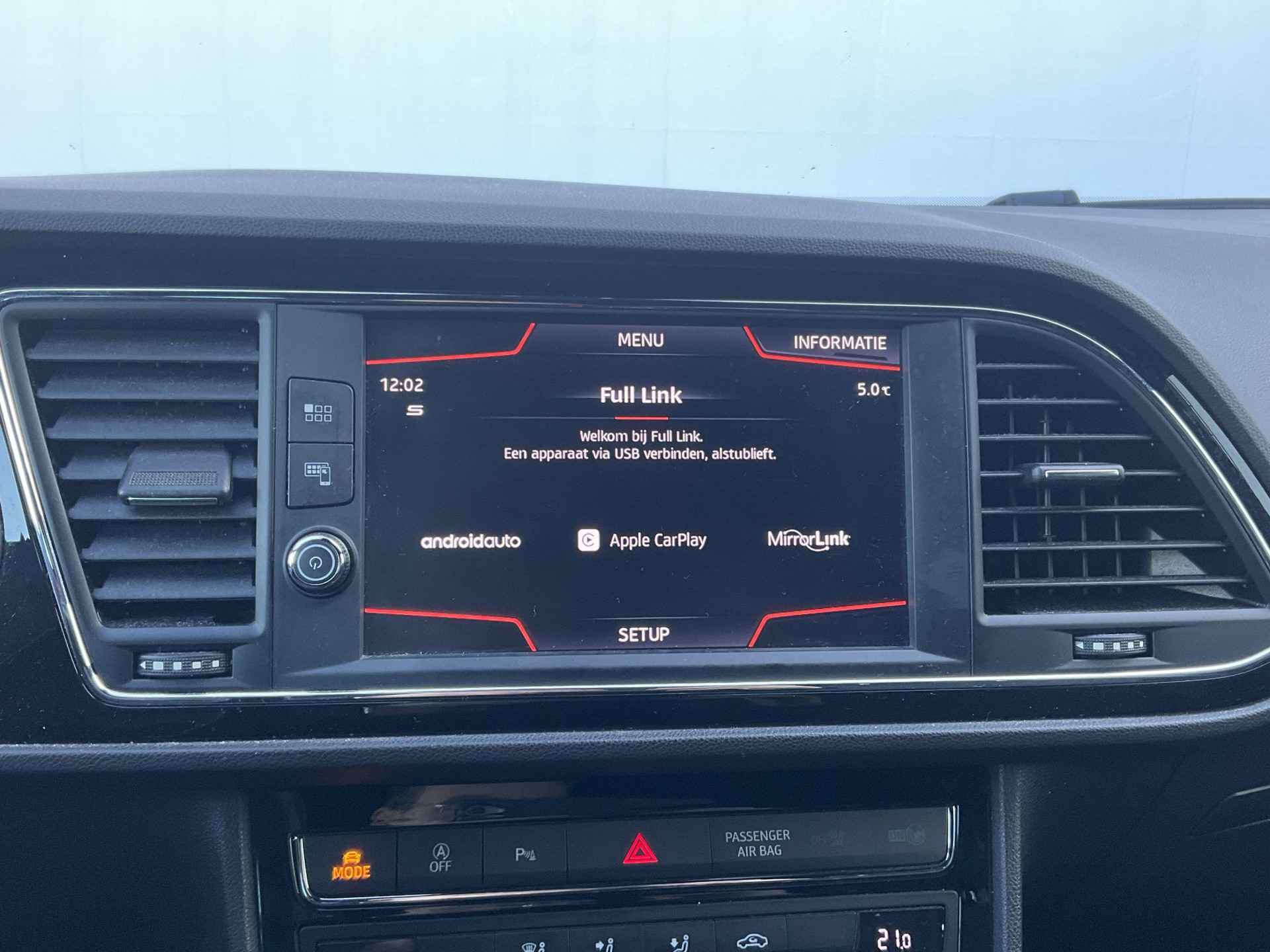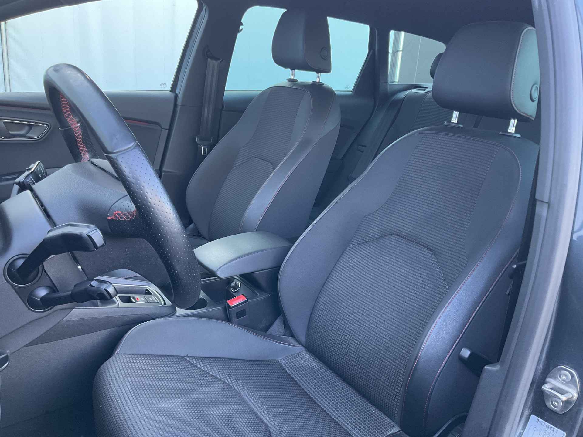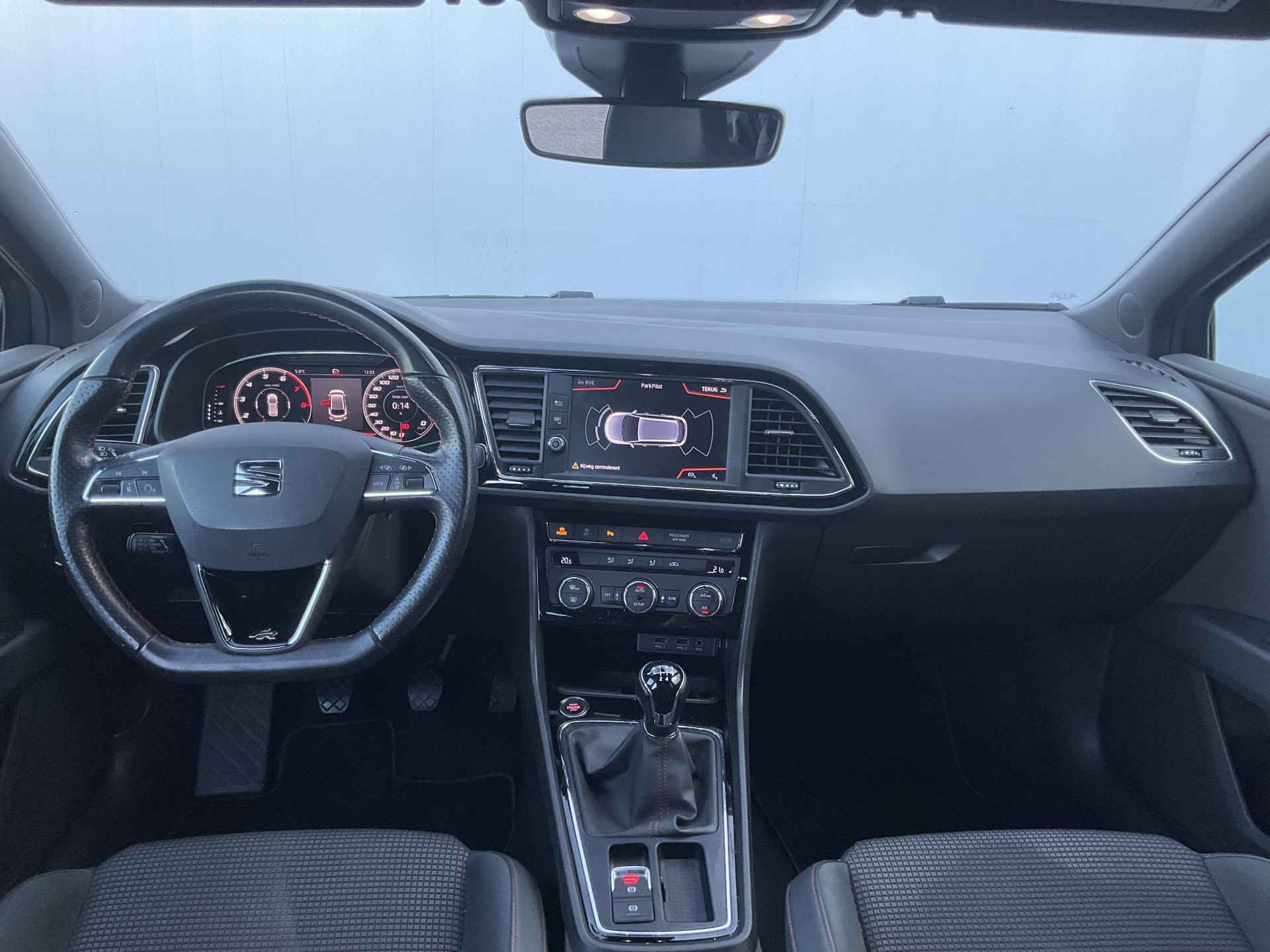 Kommaar-kommaar-kommaar, aldus de achteruitrijcamera. Iedere centimeter vrije ruimte komt haarscherp in beeld. Schadevrij inparkeren maar! Met adaptive cruise control houdt de auto zelfstandig afstand tot uw voorligger. Een veiligheidsverhogende optie waarmee u comfortabel onderweg bent. Onderweg kunt u veilig genieten van het audio-installatiesysteem met DAB-radio en het navigatiesysteem. Want in deze SEAT bedient u ze vanaf het stuurwiel of met uw stem. Smartphone in het rood? Geen punt, de draadloze telefoonlader zorgt voor een volle accu. Automatische airconditioning verwarmt of koelt het interieur met een druk op de knop. Met regensensor, sportstuurwiel, keyless entry, automatisch dimmende binnenspiegel, boordcomputer en lederen versnellingspook is deze SEAT helemaal compleet.