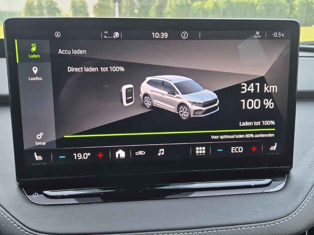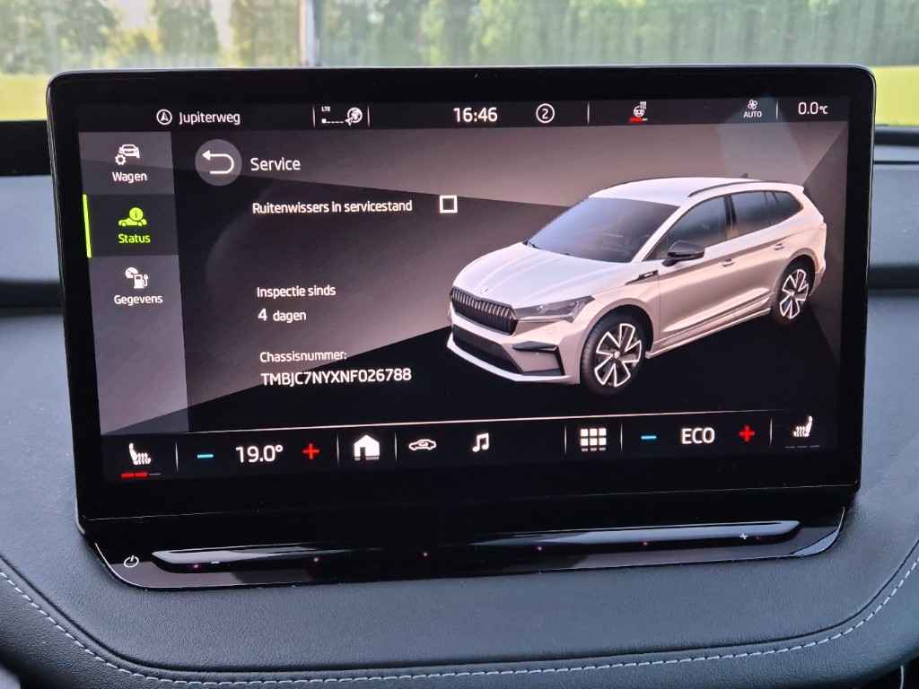 Zoals u mag verwachten van deze ŠKODA Enyaq iV is hij uitgerust met een reeks aan actieve veiligheidssystemen. Het Lane-keeping systeem doet precies wat nodig is: waarschuwen en corrigeren bij onbedoelde overschrijding van de rijstrooklijnen. Voor meer veiligheid detecteert deze auto het risico van een aanrijding tijdig via de forward collision warning. Op lange ritten voorkomt de vermoeidheidsassistent dat uw concentratie afneemt. U bent mede dankzij head-up display, dodehoekdetectie, autonoom remsysteem en bandenspanningcontrolesysteem steeds veilig onderweg.