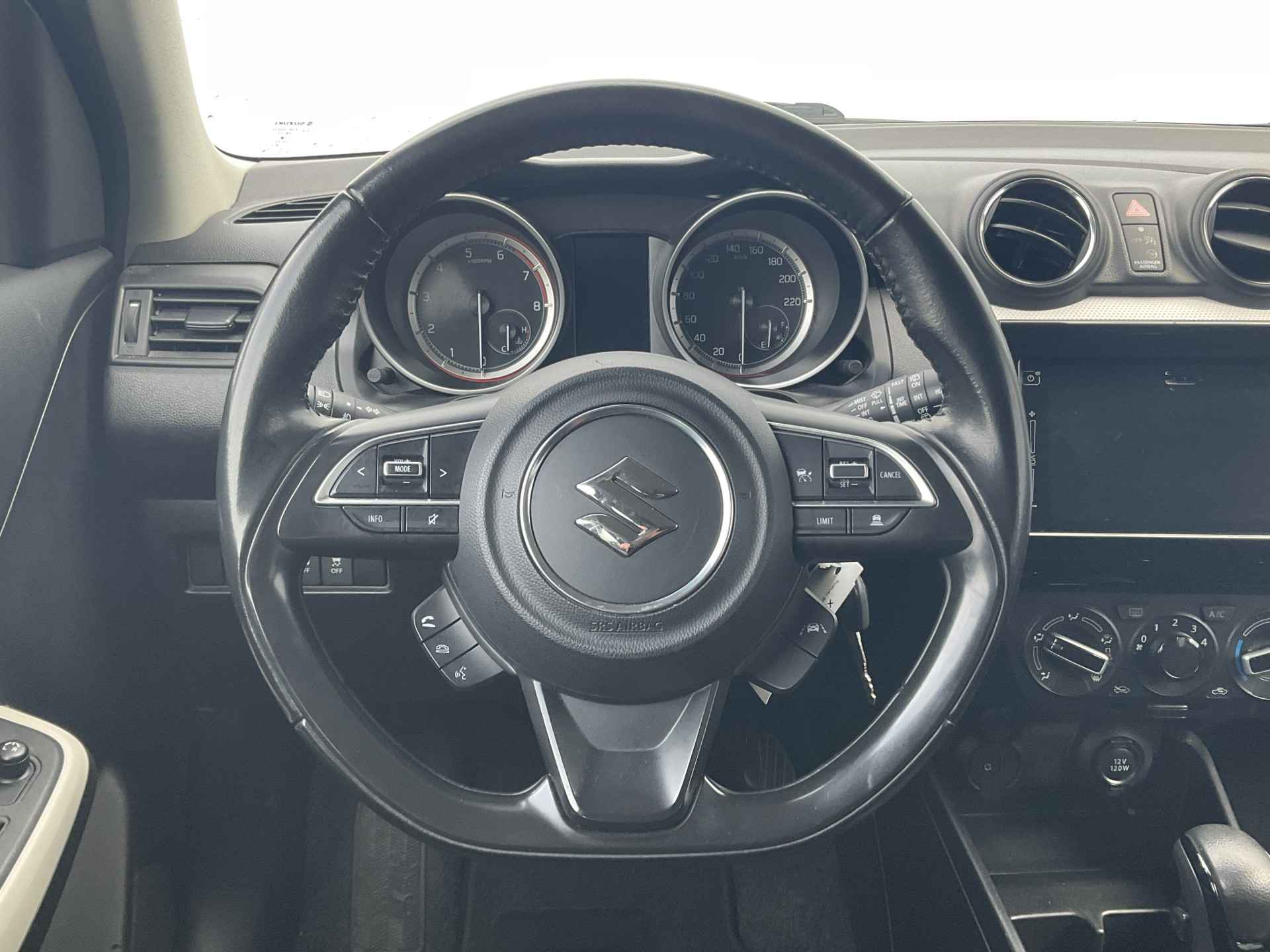 In het moderne verkeer hebt u achter het stuur van de Suzuki Swift altijd de controle. Deze auto komt uit 2020. De aandrijving van deze Suzuki wordt verzorgd door een viercilinder benzinemotor en een automatische transmissie. Een weldaad voor u en uw bijrijder: deze Suzuki Swift heeft verwarmbare voorstoelen. Bij de uitrusting van deze Suzuki horen onder meer 16 inch lichtmetalen velgen, LED koplampen, donker getint glas achter, in delen neerklapbare achterbank en LED-achterlichten.