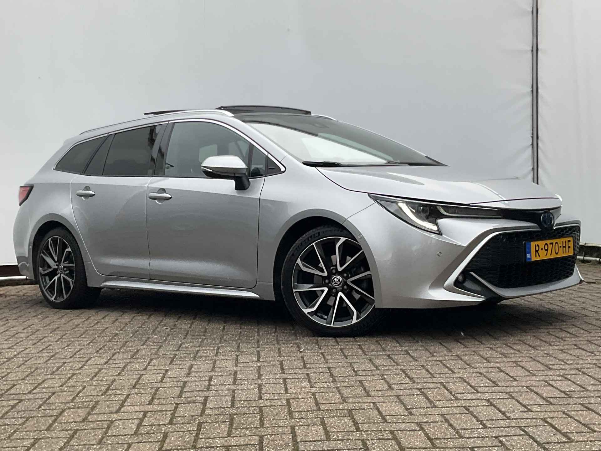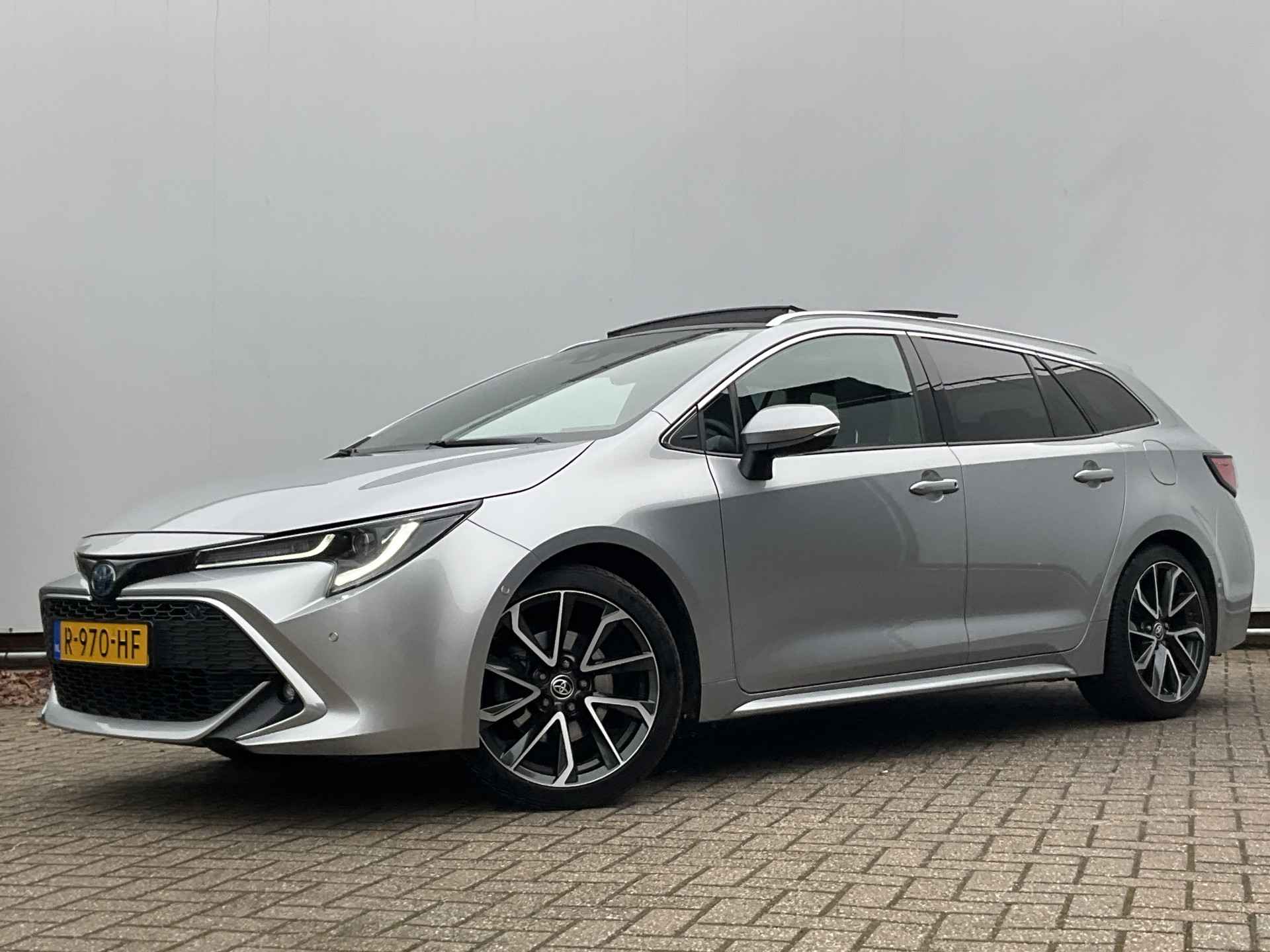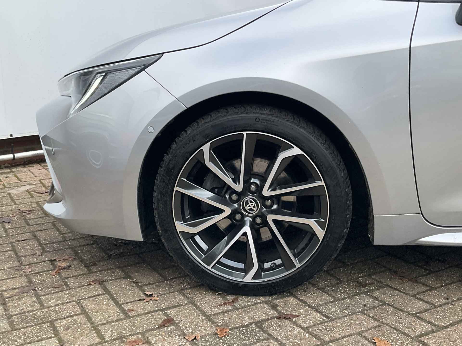 Uitmuntende prestaties, dynamische rijeigenschappen en bakken vol met rijplezier, deze Toyota Corolla Touring Sports levert het allemaal. De krachtige benzinemotor staat garant voor uitstekende prestaties. Een heerlijk zonnetje, of indrukwekkende wolkenpartijen? Bekijk ze onbelemmerd door het elektrisch bediende glazen panorama dak. Met één klik open en dicht, net als de elektrisch bedienbare achterklep. In de verwarmbare voorstoelen zitten is elke keer een welkom gevoel. De sportstoelen houden u en uw bijrijder goed op z'n plek tijdens het accelereren en bij het nemen van scherpe bochten. De uitmonstering van deze auto wordt gecompleteerd door onder meer 18 inch lichtmetalen velgen, Full LED koplampen, donker getint glas achter, in delen neerklapbare achterbank, LED-achterlichten en verstelbare lendensteunen.