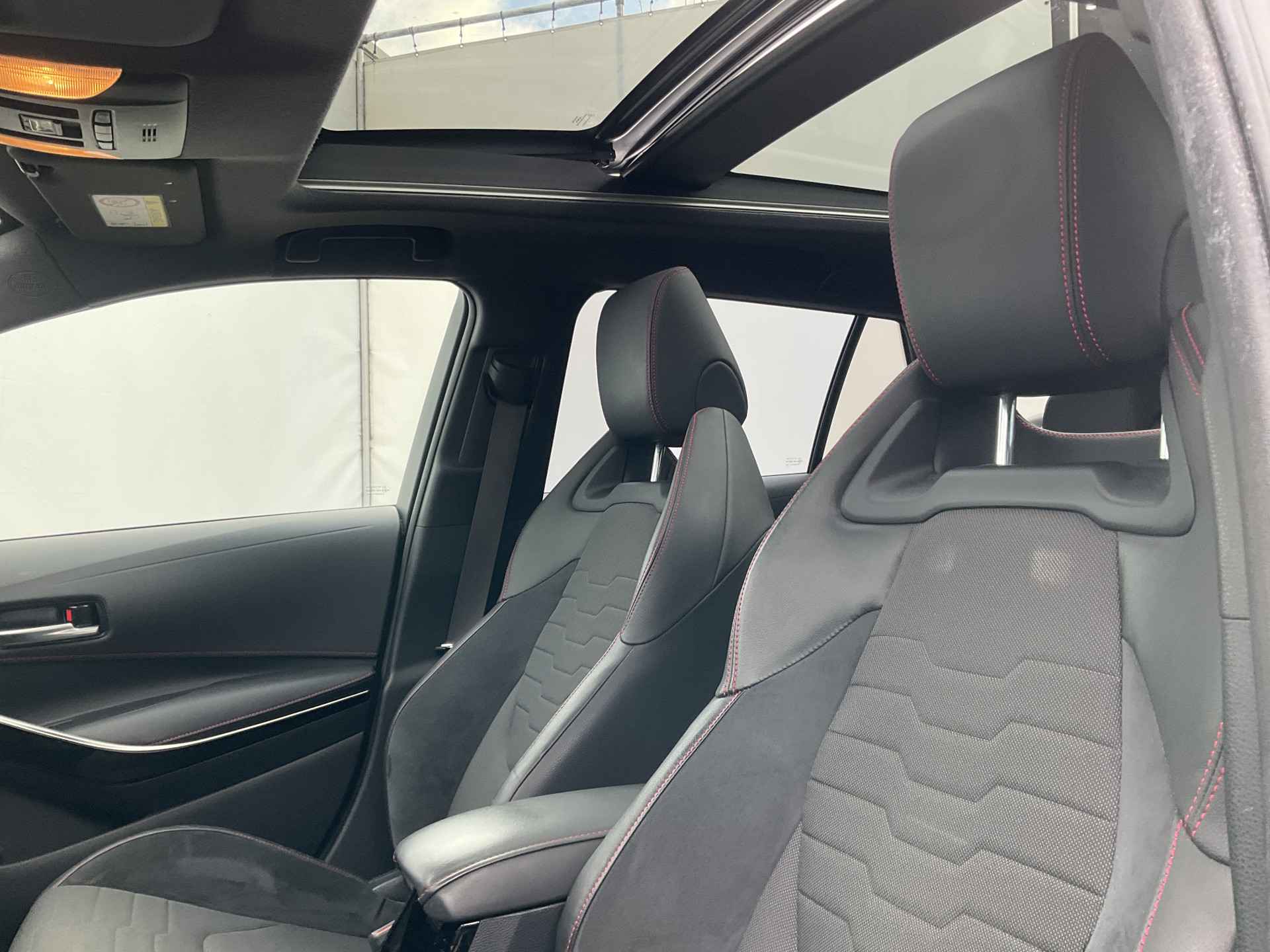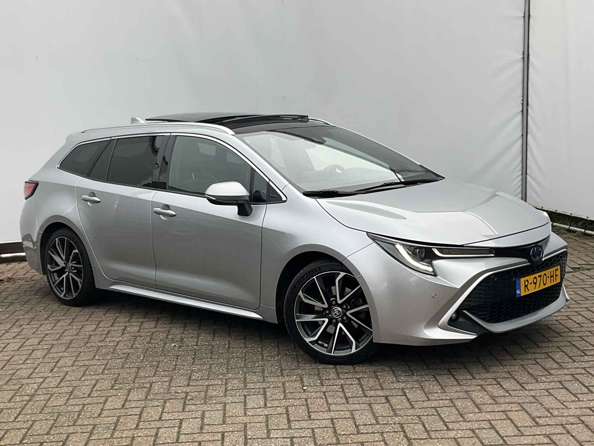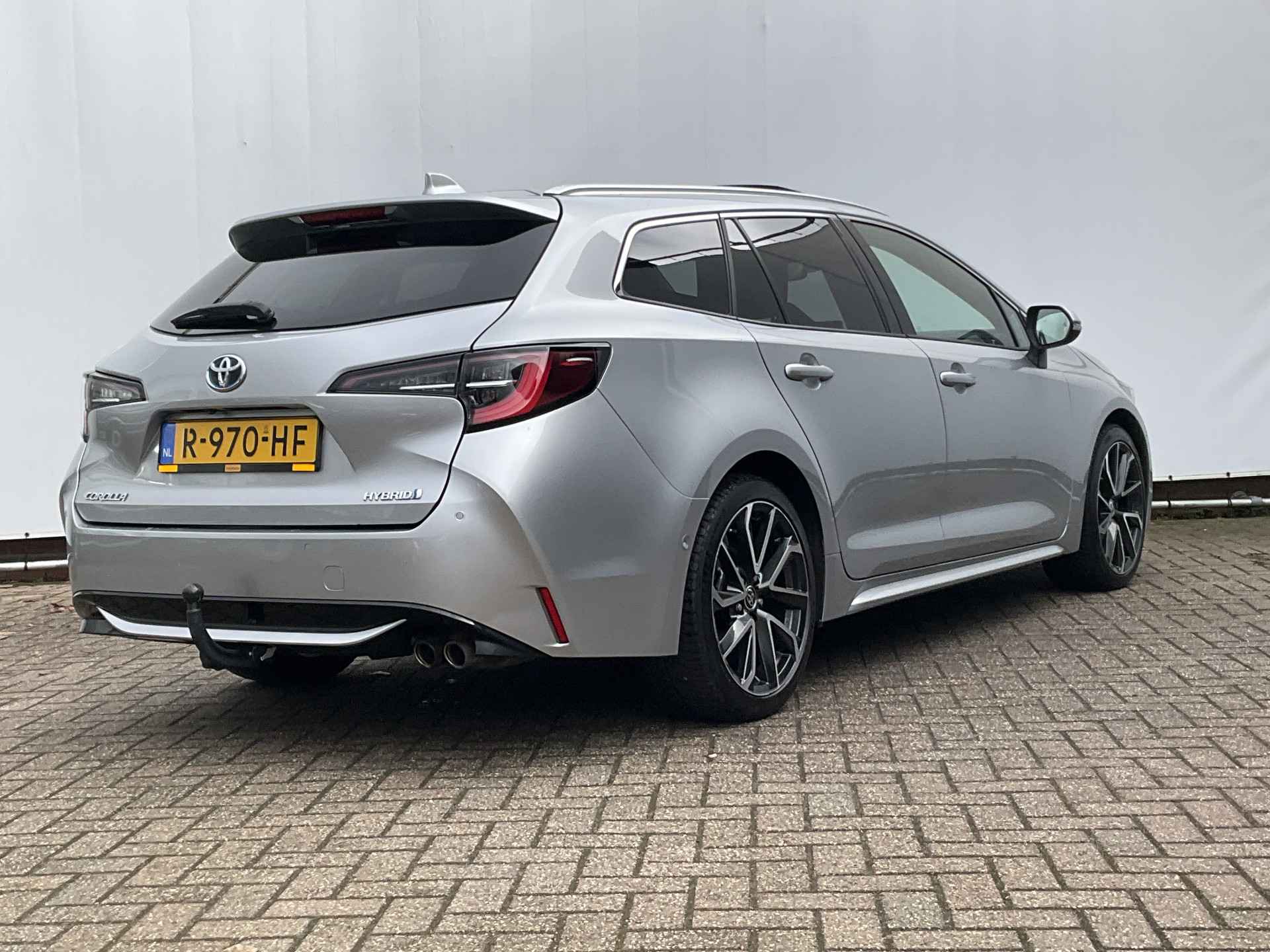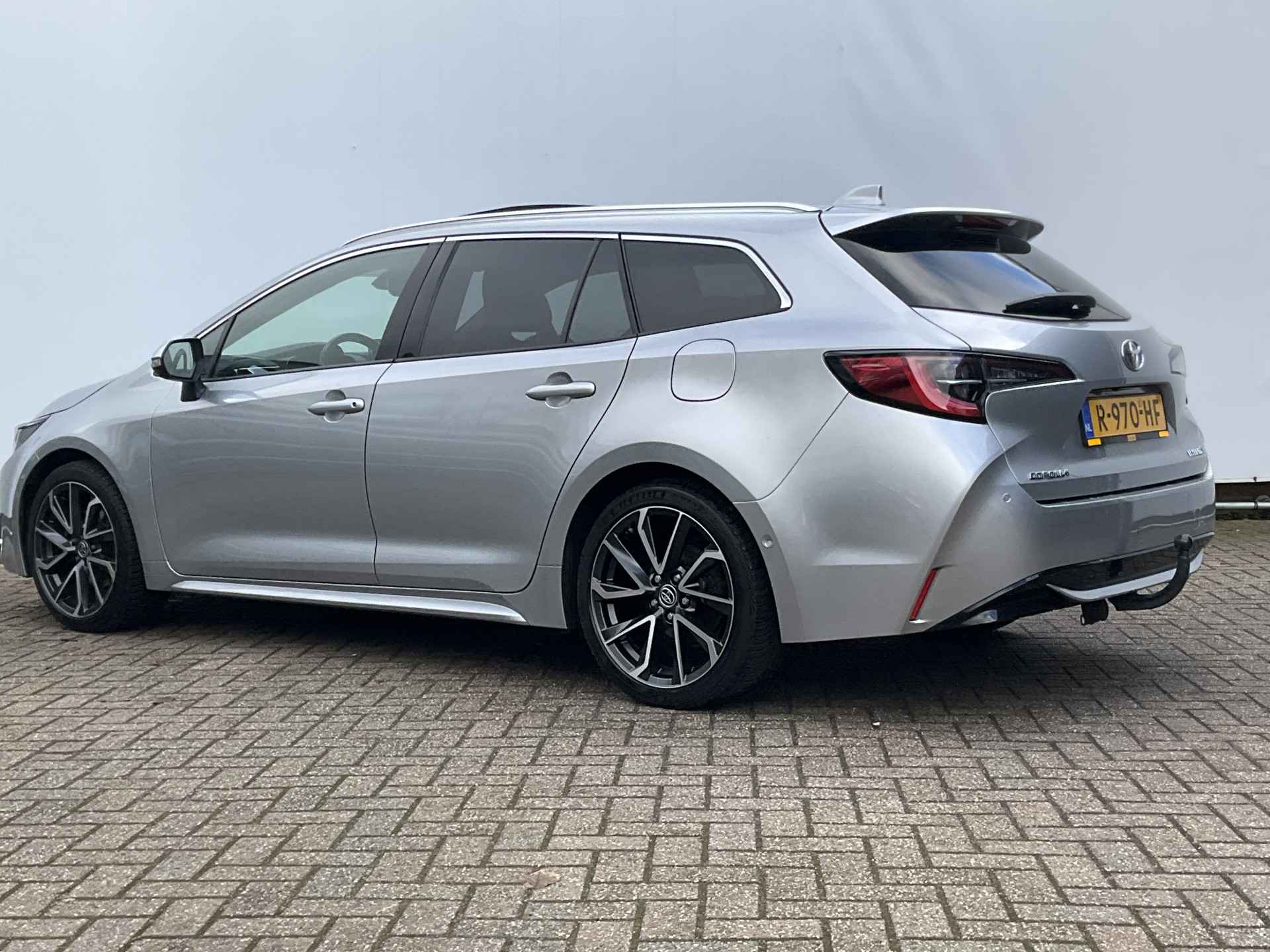 Uitmuntende prestaties, dynamische rijeigenschappen en bakken vol met rijplezier, deze Toyota Corolla Touring Sports levert het allemaal. De krachtige benzinemotor staat garant voor uitstekende prestaties. Een heerlijk zonnetje, of indrukwekkende wolkenpartijen? Bekijk ze onbelemmerd door het elektrisch bediende glazen panorama dak. Met één klik open en dicht, net als de elektrisch bedienbare achterklep. In de verwarmbare voorstoelen zitten is elke keer een welkom gevoel. De sportstoelen houden u en uw bijrijder goed op z'n plek tijdens het accelereren en bij het nemen van scherpe bochten. De uitmonstering van deze auto wordt gecompleteerd door onder meer 18 inch lichtmetalen velgen, Full LED koplampen, donker getint glas achter, in delen neerklapbare achterbank, LED-achterlichten en verstelbare lendensteunen.