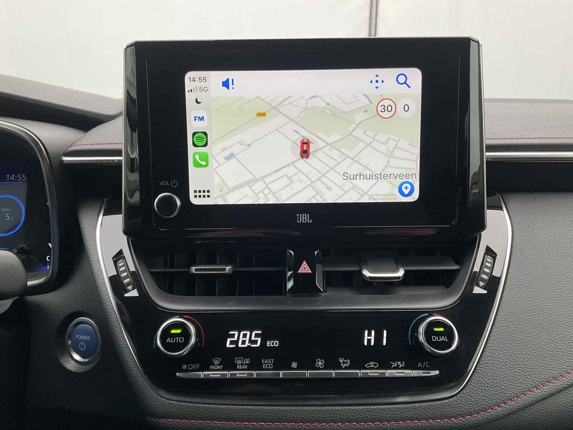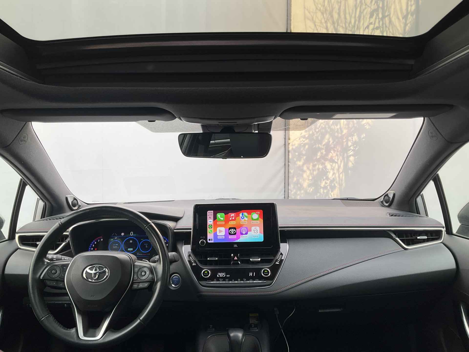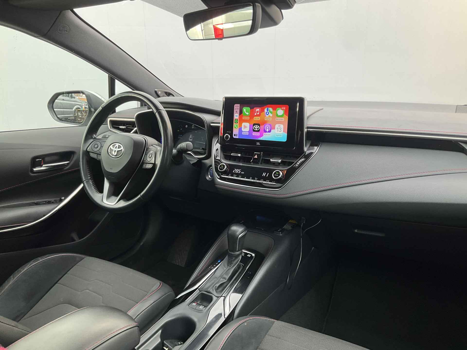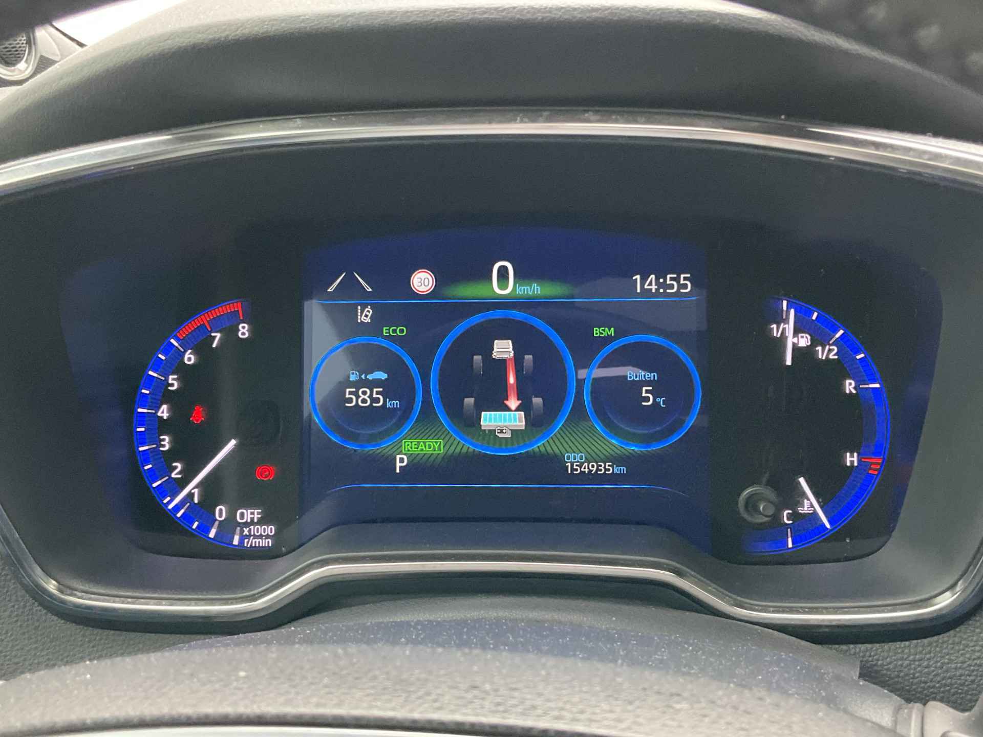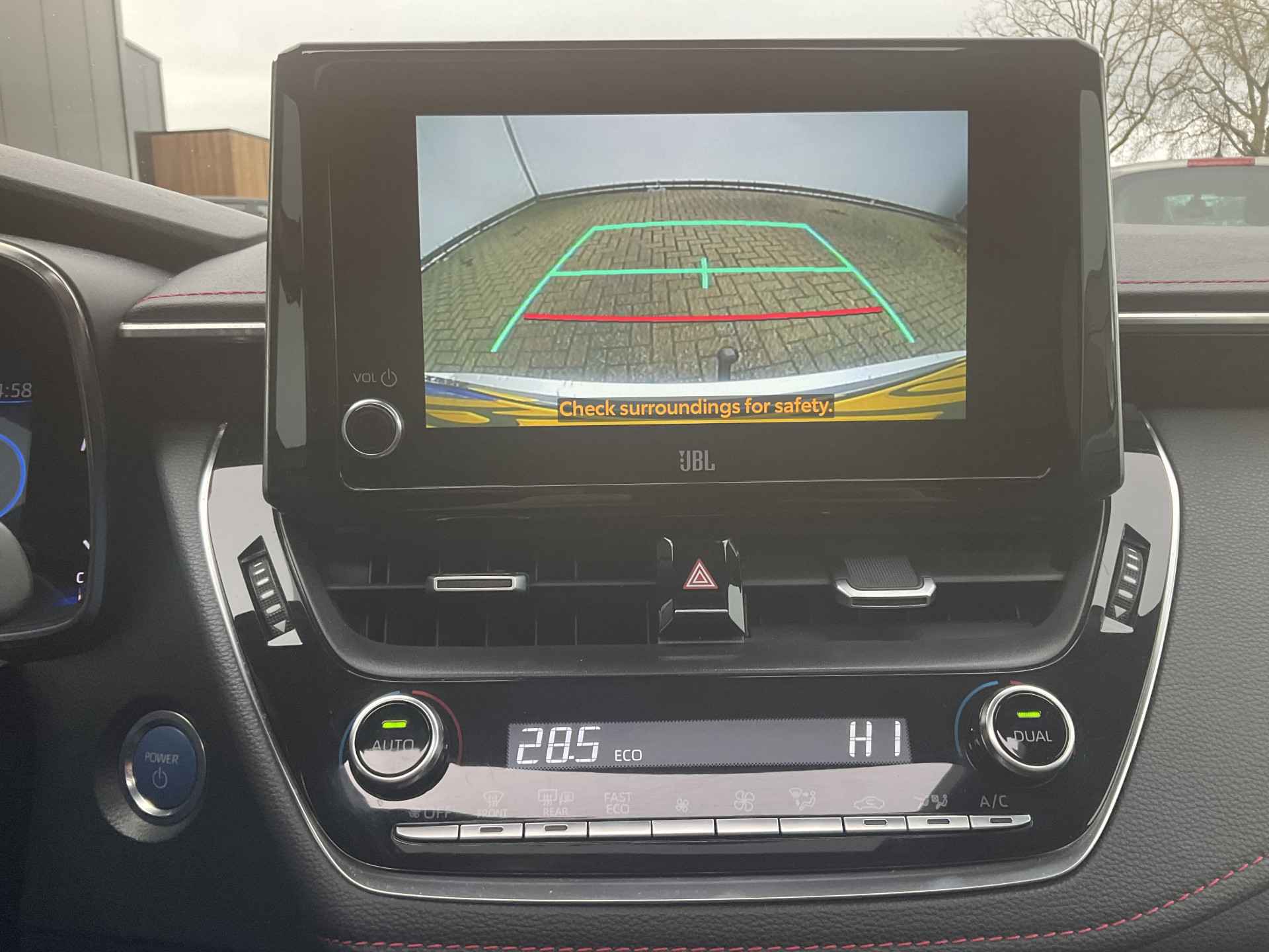Omdat goed geïnformeerd rijden tegenwoordig om veel meer draait dan alleen snelheid en brandstofpeil, laat het digitale dashboard alle functies zien die u nodig heeft. Twijfelen hoeveel ruimte u achter de auto heeft? Met de achteruitrijcamera weet u altijd hoeveel centimeter! Met adaptive cruise control houdt de auto zelfstandig afstand tot uw voorligger. Een veiligheidsverhogende optie waarmee u comfortabel onderweg bent. Dankzij Connected Services heeft u overal en altijd uw dashboard op zak. Alle belangrijke functies zijn te checken via de app. De hoorbare sensatie van het high performance audiosysteem is een ervaring op zich. U bent in deze Toyota ook voorzien van dashboard met spraakbediening, full map navigatiesysteem, achteropkomend verkeer waarschuwing, automatische airconditioning, schakelpaddles aan het stuur en draadloos opladen.