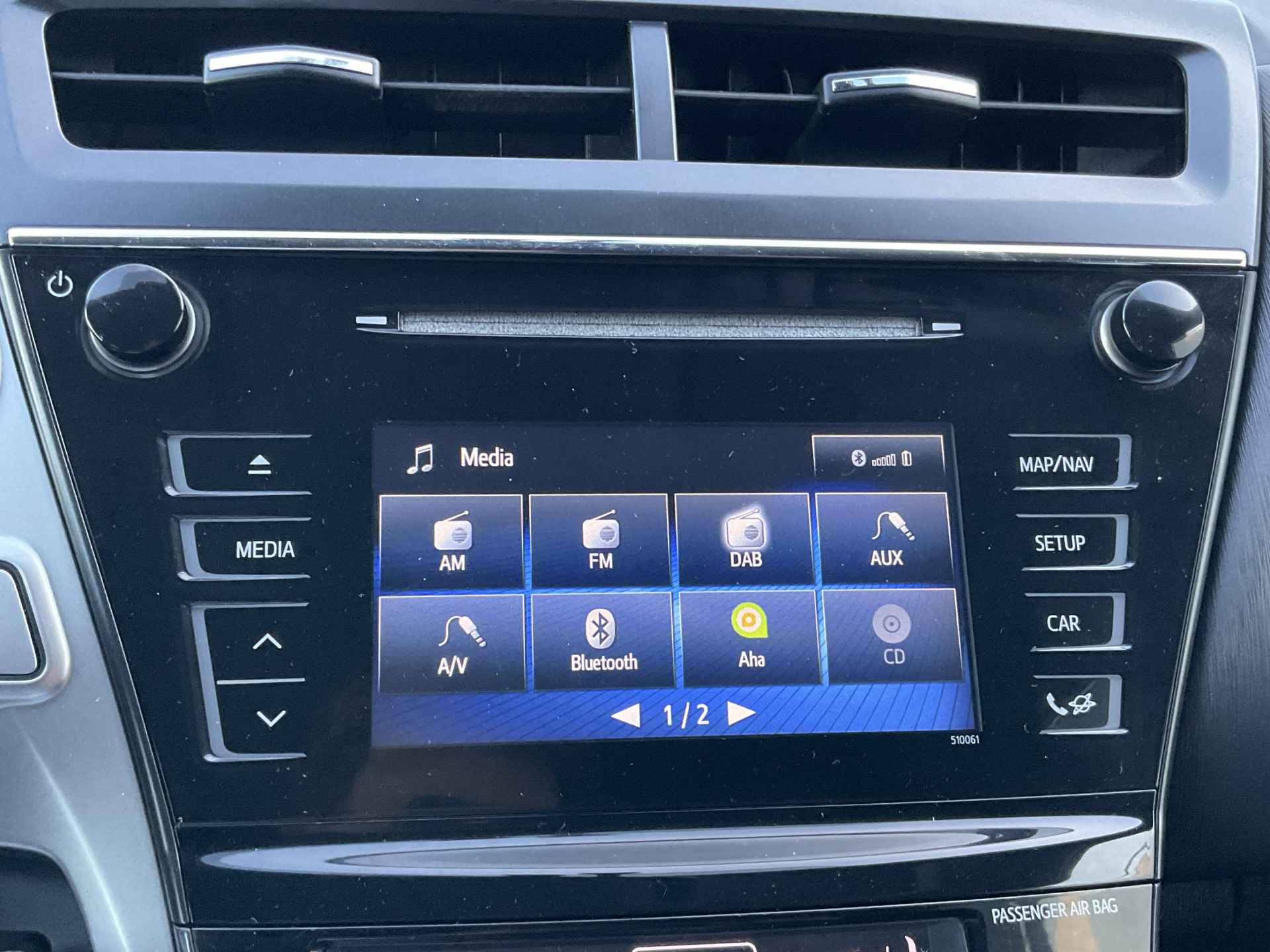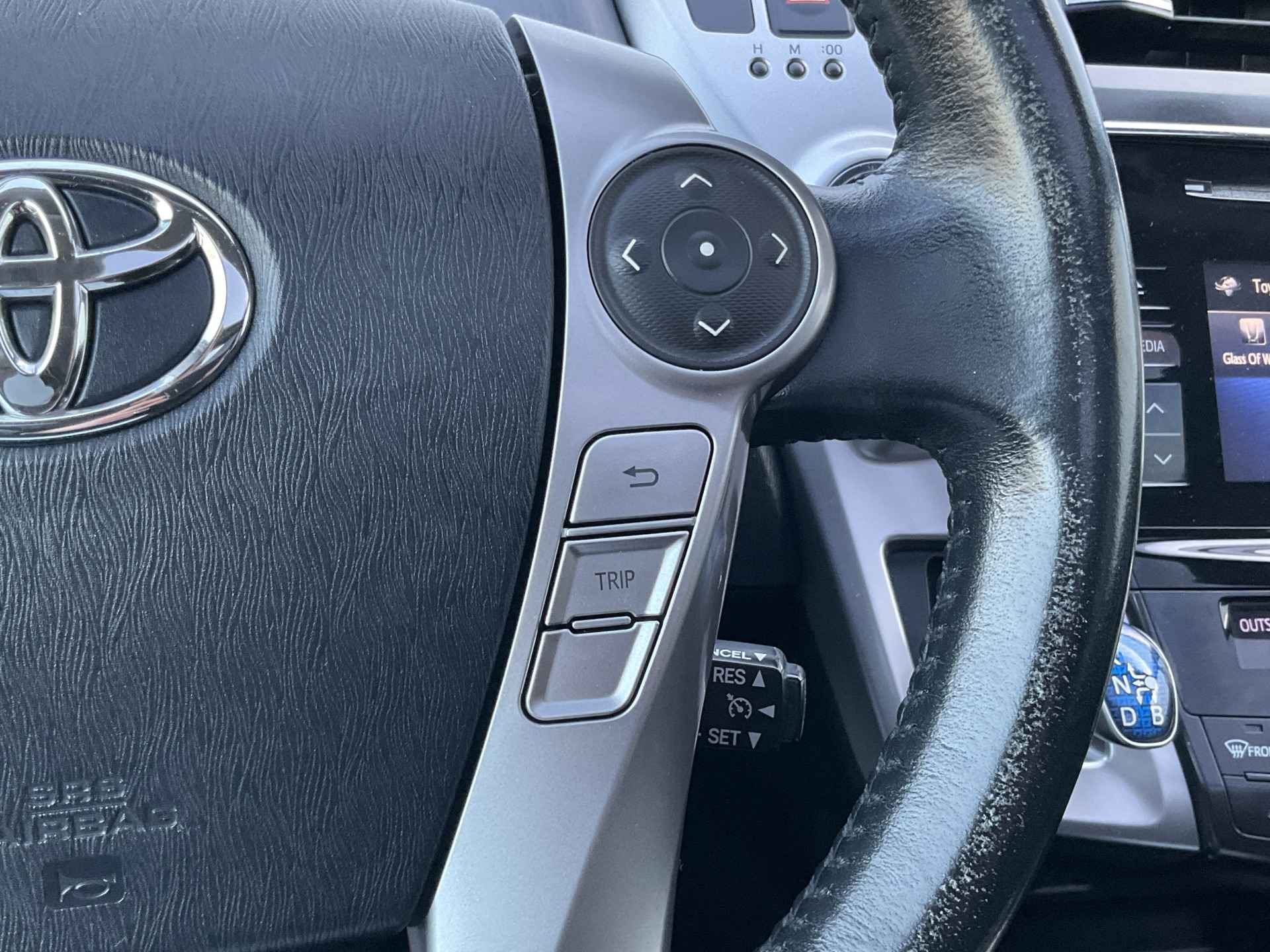Met adaptive cruise control houdt de auto zelfstandig afstand tot uw voorligger. Een veiligheidsverhogende optie waarmee u comfortabel onderweg bent. De electronic climate control zorgt voor een prettige binnentemperatuur. Even switchen naar de verkeersinformatie? Ook dat kan met één druk op de knop van de audiobediening op het stuur. De DAB-ontvanger zorgt voor een ruime keuze uit digitale radiozenders en een kristalheldere geluidsweergave. Geen sleutel of afstandsbediening meer nodig om deze Toyota Prius + te ontgrendelen. De sloten gaan vanzelf open als u dichtbij komt, via de sensor van de keyless entry. Deze Toyota is voorzien van bagage afdekhoes, boordcomputer en verstelbaar stuur.