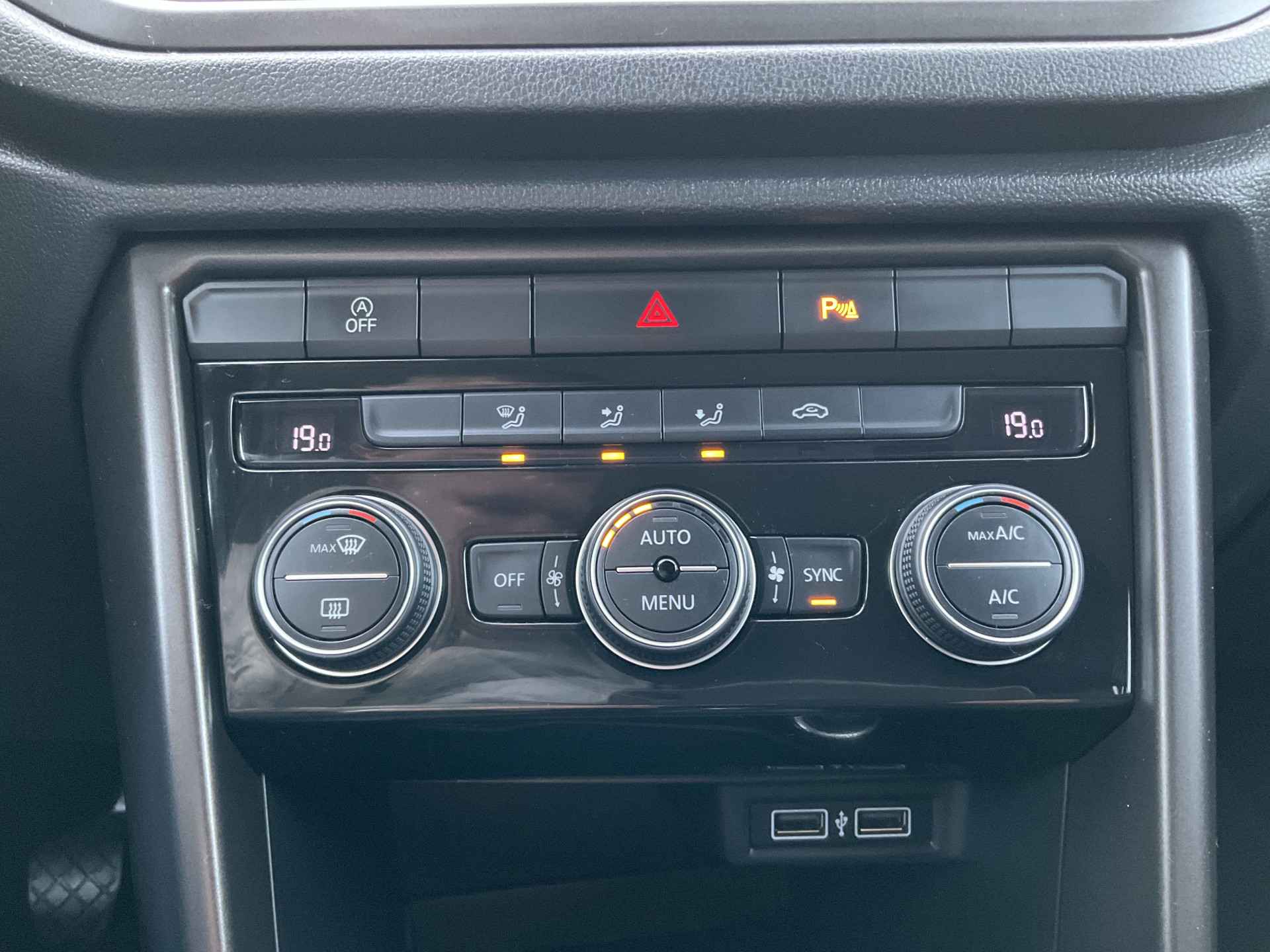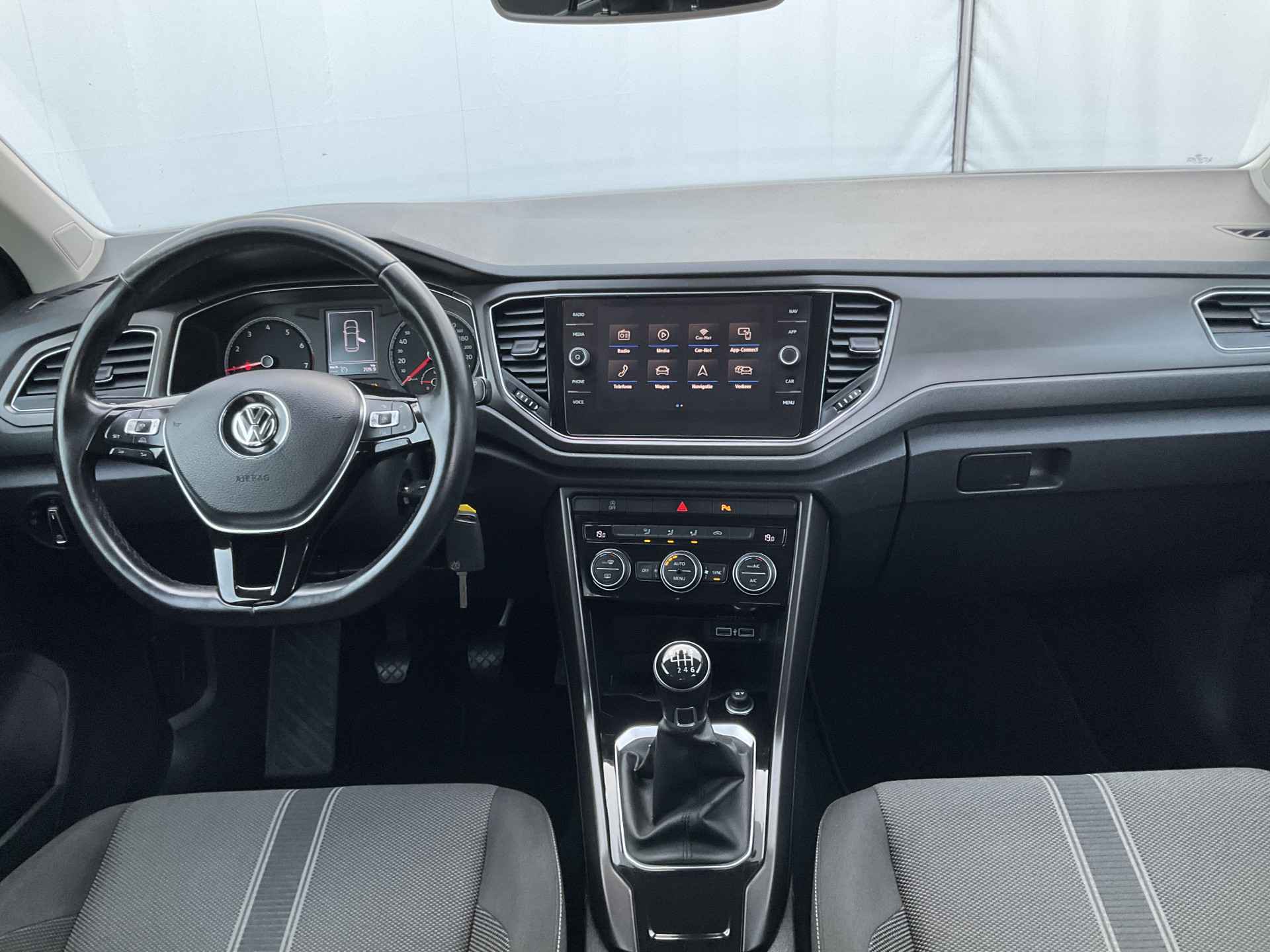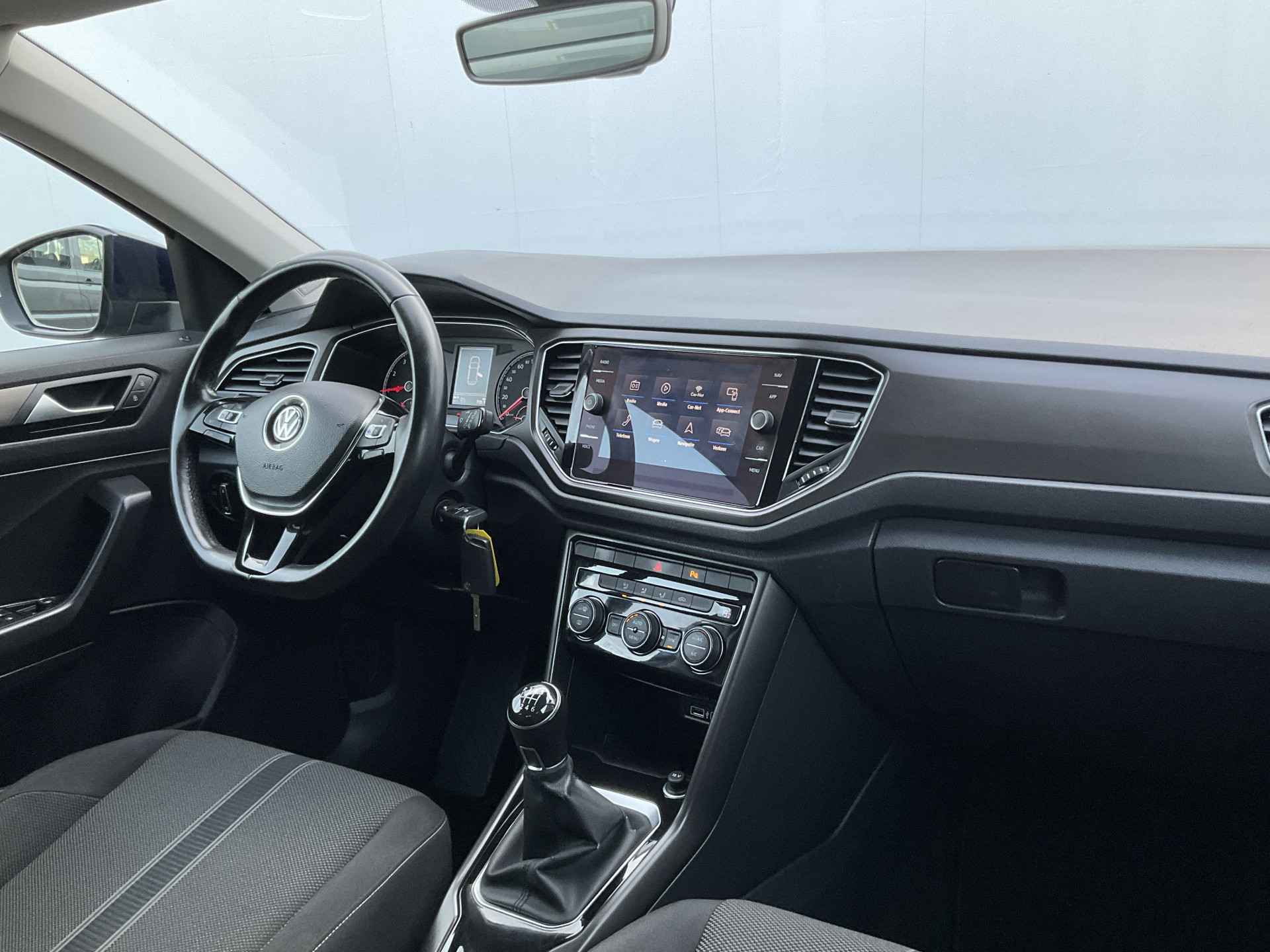 Adaptive cruise control houdt de ingestelde snelheid vast en houdt afstand tot het voertuig voor u. U bedient het audiosysteem via knoppen op het stuur. Zo kunt u steeds uw aandacht gericht houden op de weg. Een plekje vinden in de binnenstad is één, inparkeren is twee. Voor dat laatste heeft deze Volkswagen T-Roc prima parkeersensoren die u een handje helpen. Natuurlijk is een complete auto als deze ook voorzien van sensoren die de omgeving in de gaten houden. Deze Volkswagen heeft niet alleen een automatisch inschakelbare verlichting aan boord, maar ook een regensensor. Het hele jaar door zorgt airconditioning voor een prettige temperatuur. Extra opties op deze auto zijn: automatisch dimmende binnenspiegel, lederen stuur, centrale deurvergrendeling met afstandsbediening, boordcomputer en lederen versnellingspook.