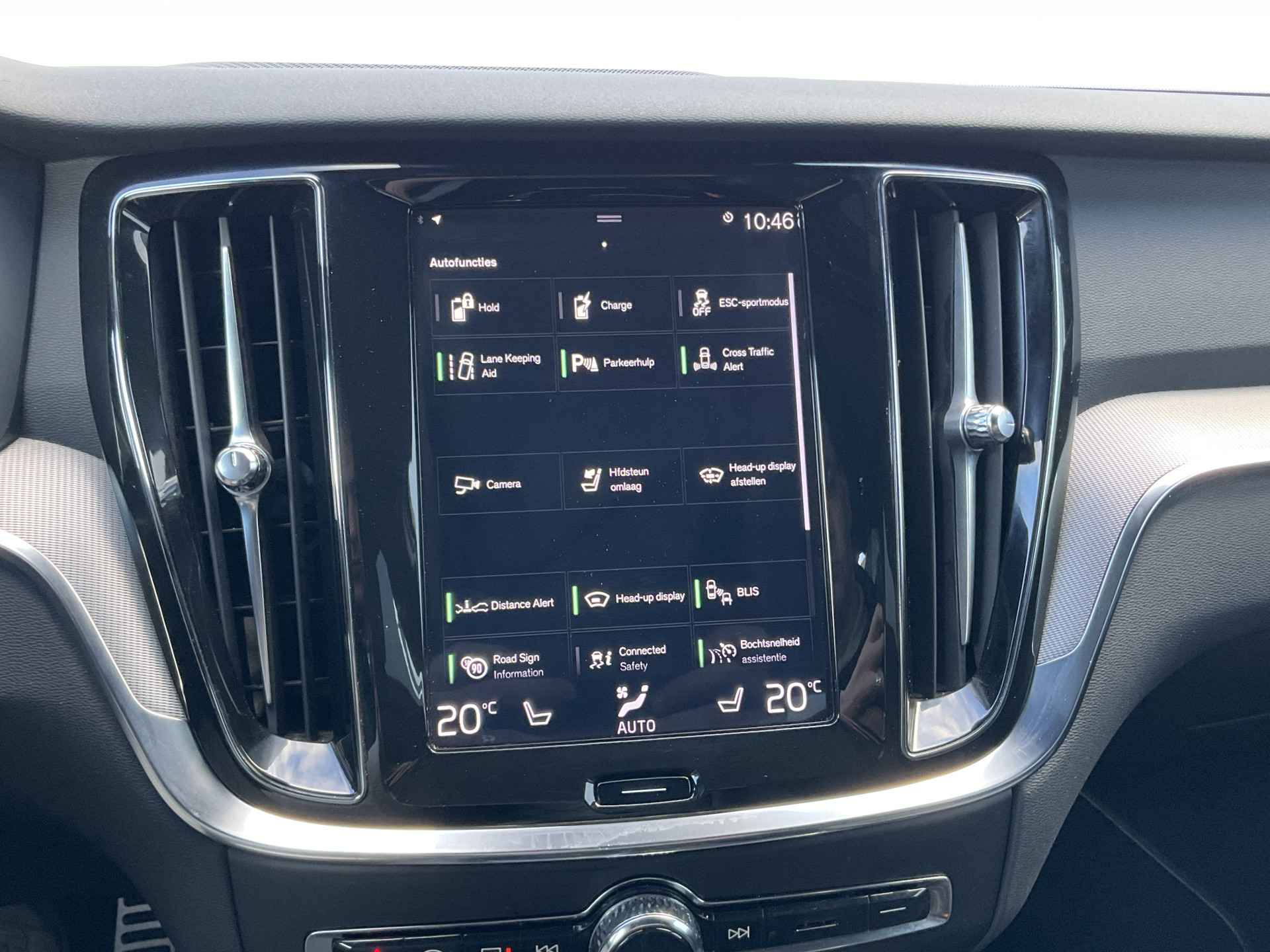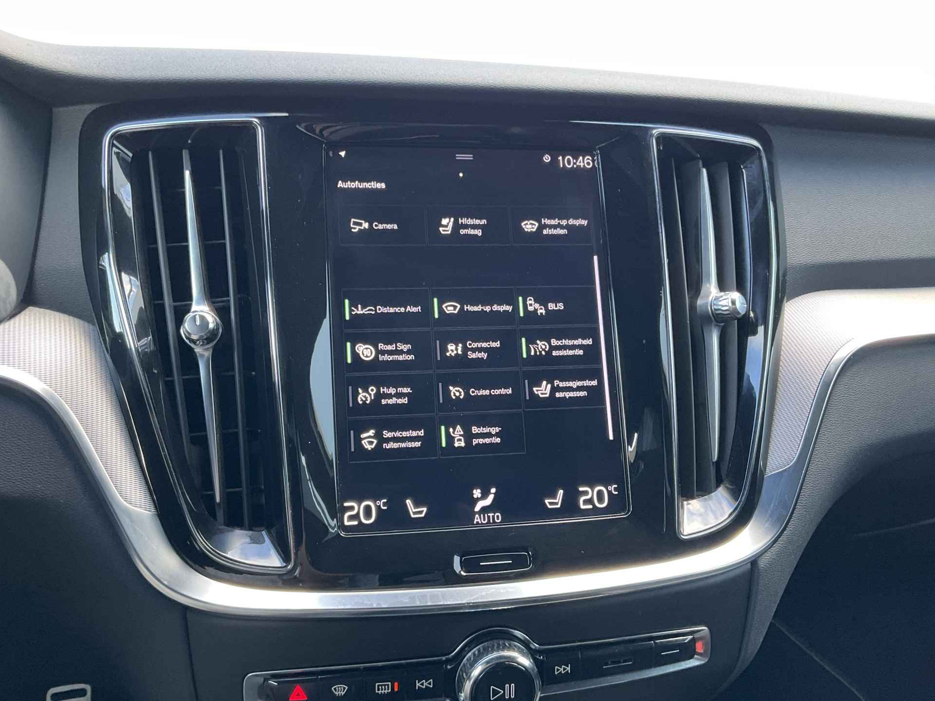 Pragmatisch en veilig als deze auto is, beschikt hij over diverse veiligheidssystemen. Bij de veiligheidssystemen van deze Volvo hoort ook de verkeersbord-detectie. Die leest tijdens het rijden als het ware met u mee en attendeert u op de significante verkeersborden langs en boven de weg. Het Lane-keeping systeem zorgt voor een automatisch constante positie binnen de rijstrook. Afdwalen is uitgesloten. De actieve dodehoekdetectie voorkomt dat u een voertuig over het hoofd ziet en waarschuwt tijdig. In deze Volvo vinden we verder een head-up display, forward collision warning system, hill hold functie, brake assist en vermoeidheidsherkenning.